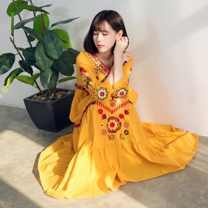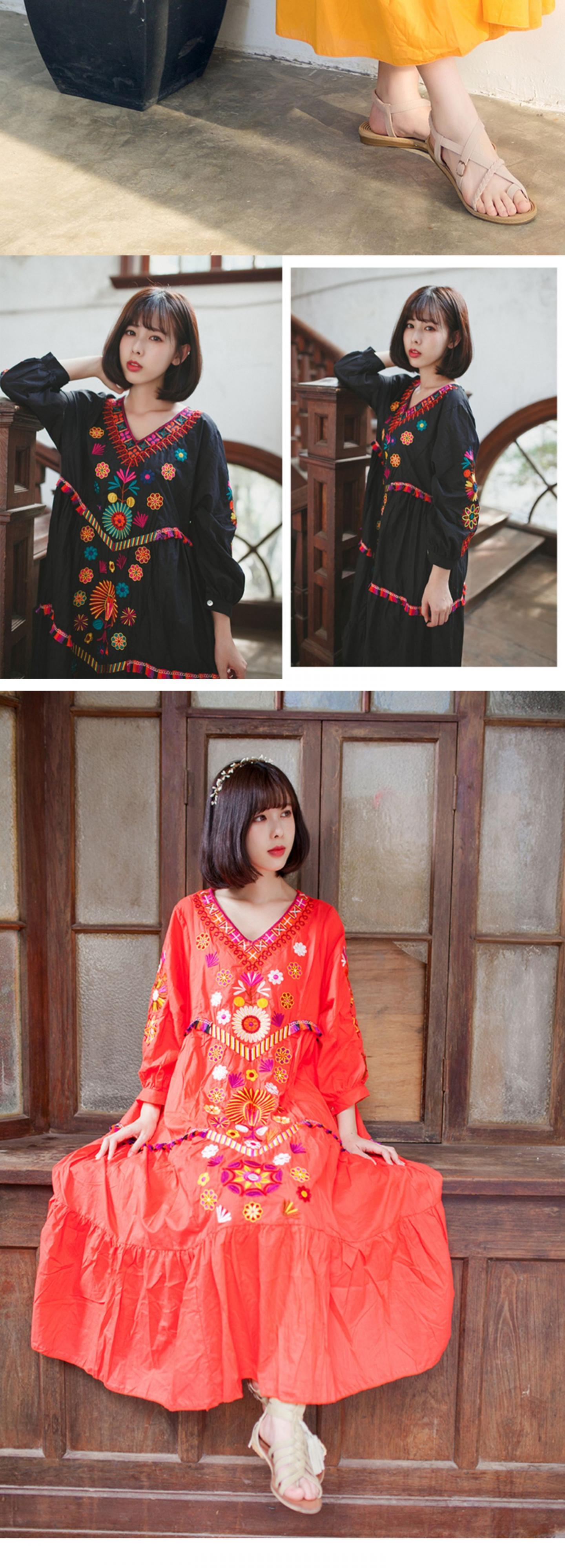 スカート サマー刺繍ボヘミアンドレス コットン 夏物 ビーチ 延命家ファッション8764002