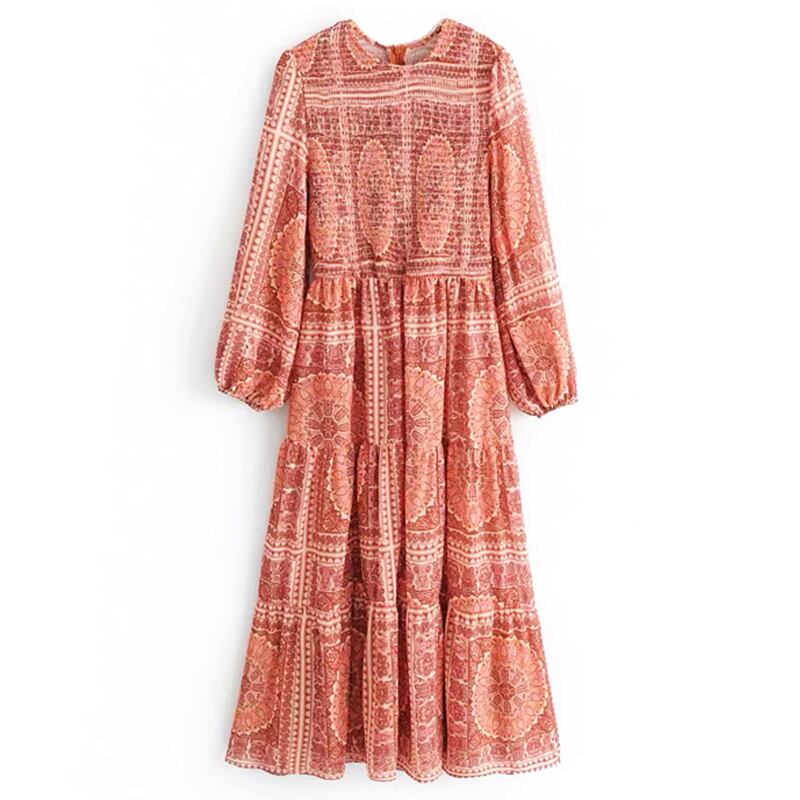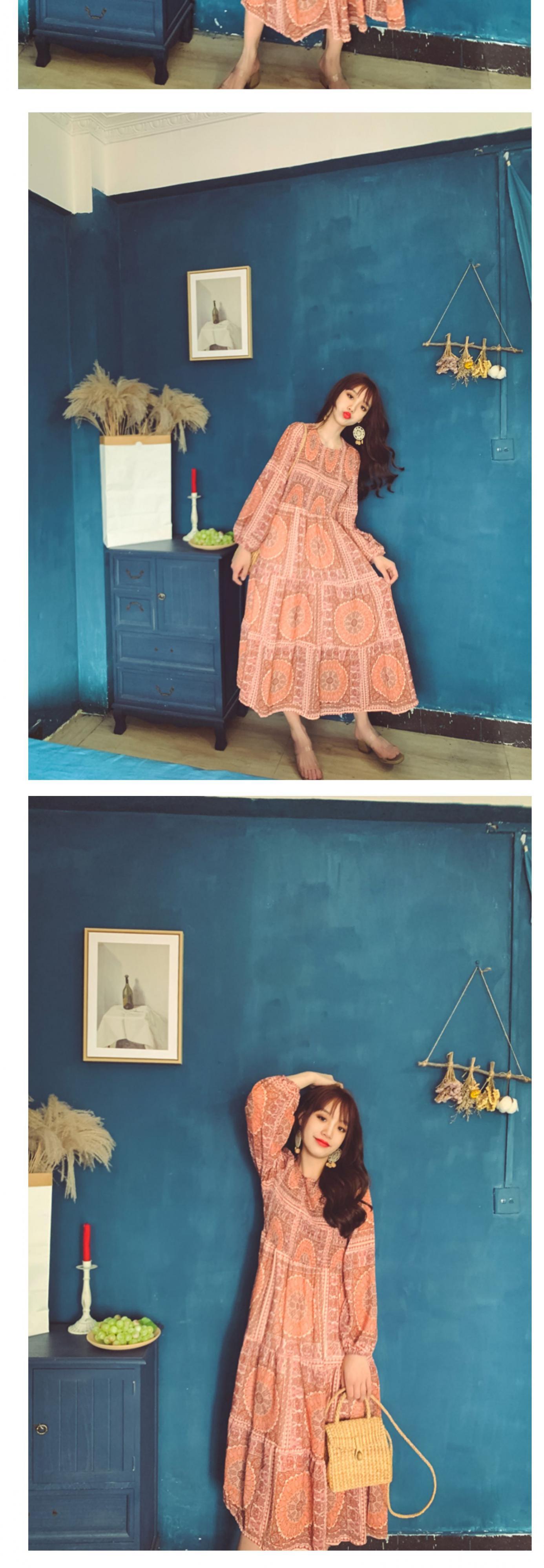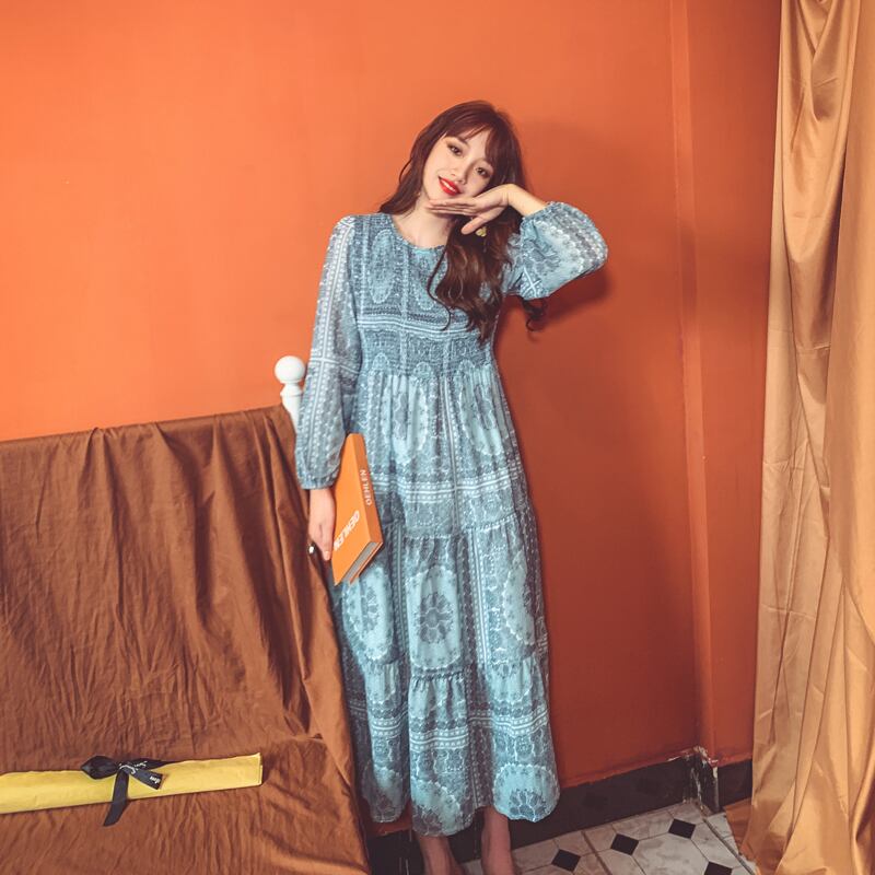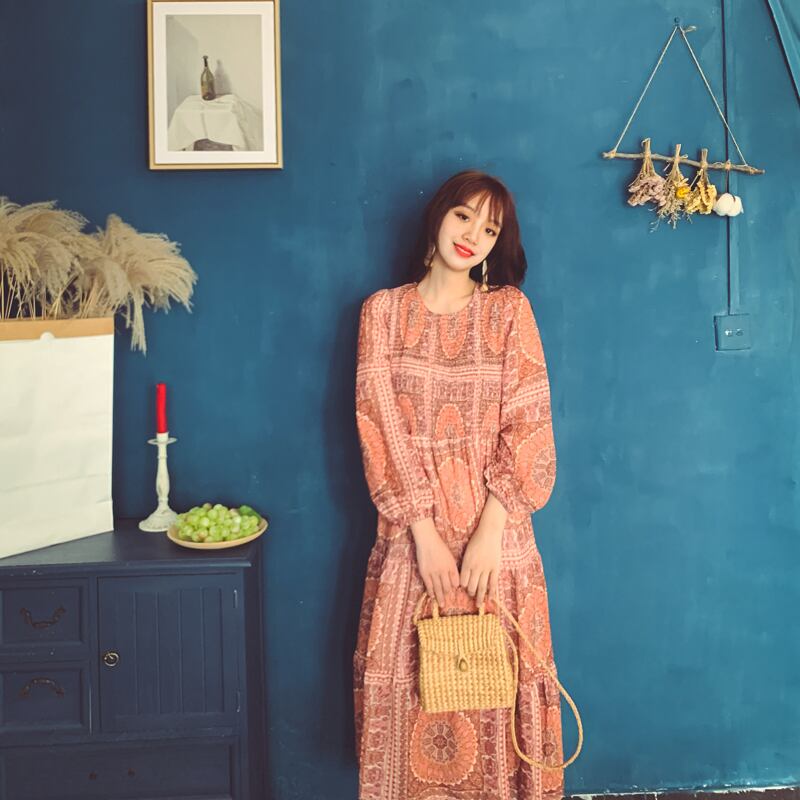 スカート サマースタンダードスタイルボヘミアンプリント柄ロング薄手ドレス レトロ 大人ガーリー スウィート キュート カジュアル エレガント 夏物 ビーチ 延命家ファッション7517548