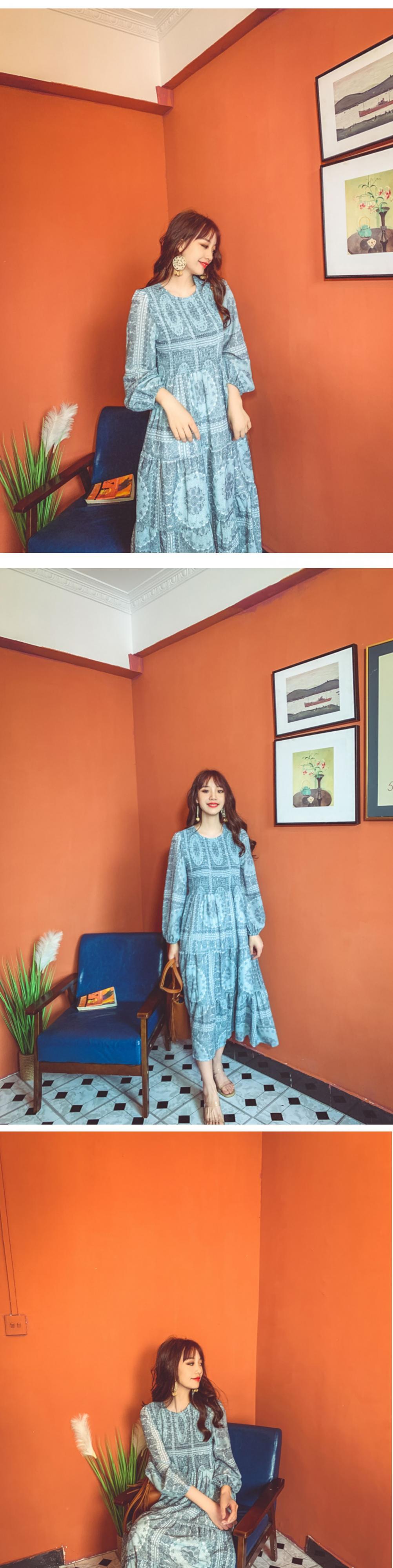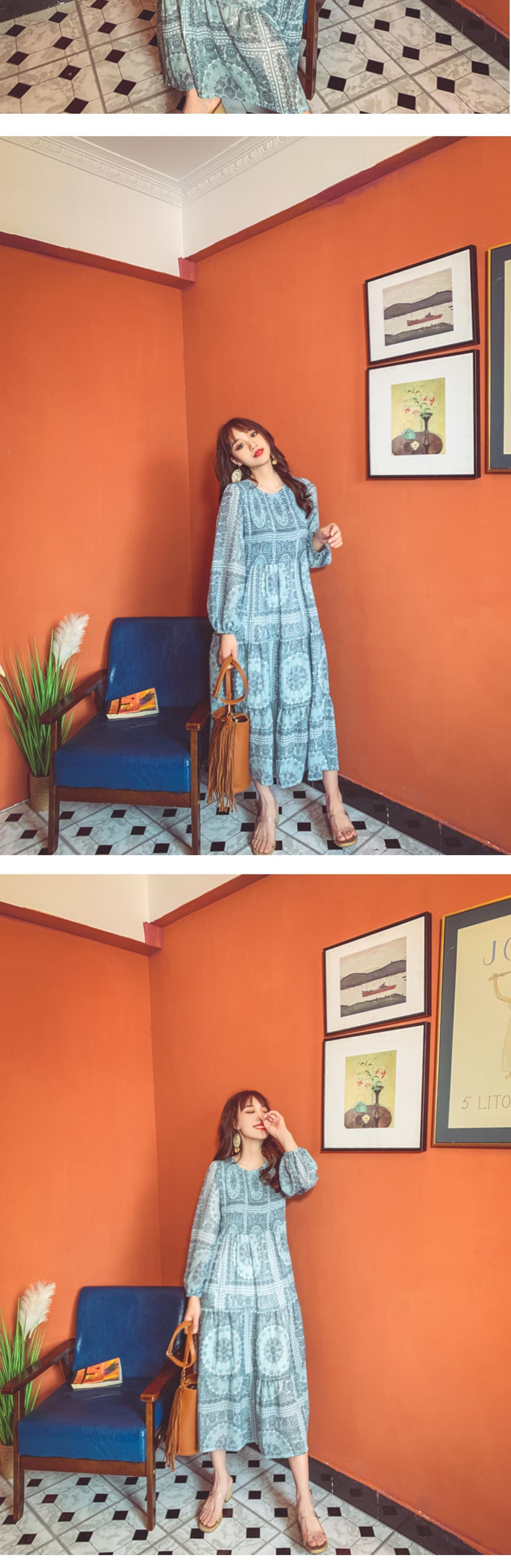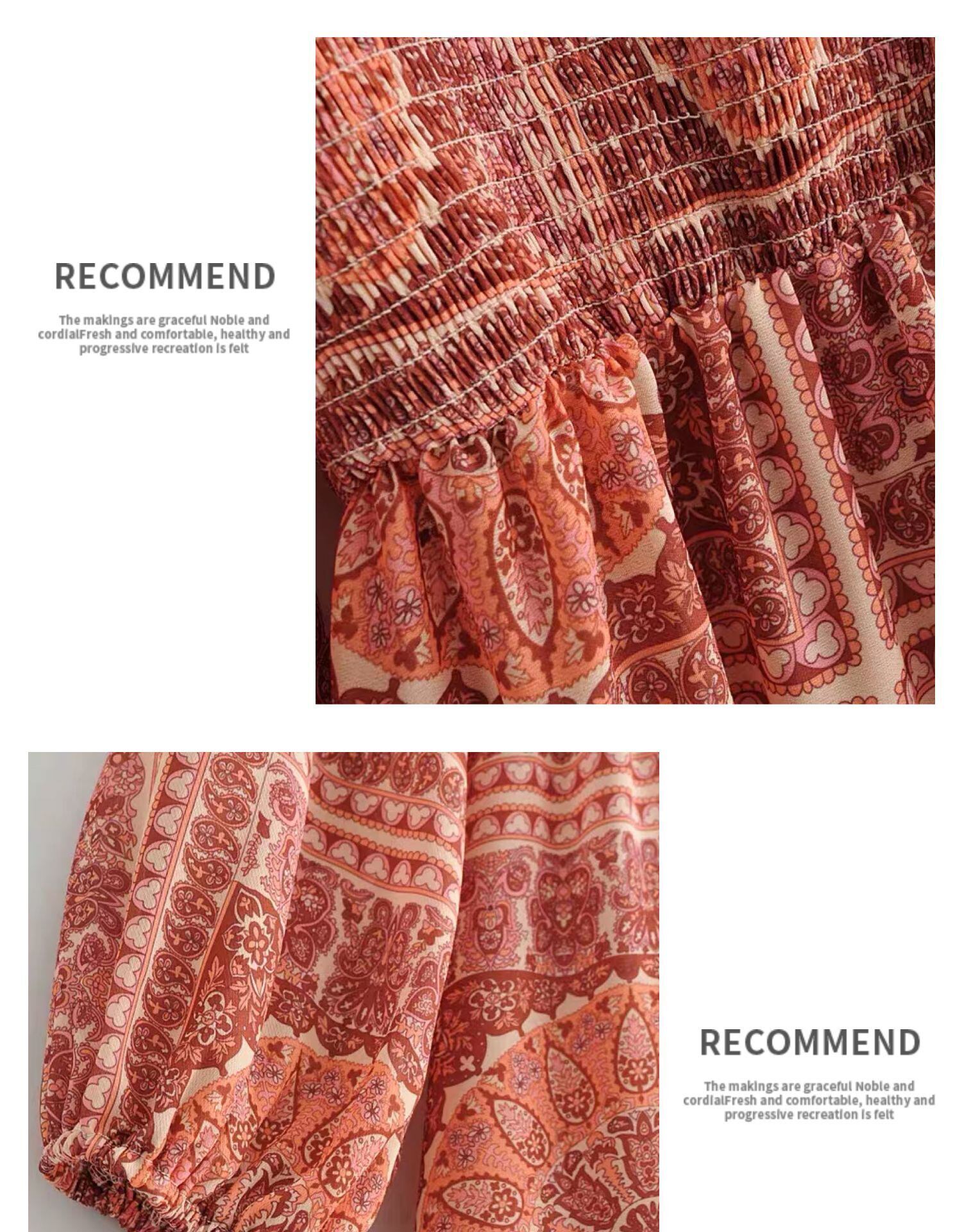 スカート サマースタンダードスタイルボヘミアンプリント柄ロング薄手ドレス レトロ 大人ガーリー スウィート キュート カジュアル エレガント 夏物 ビーチ 延命家ファッション7517548