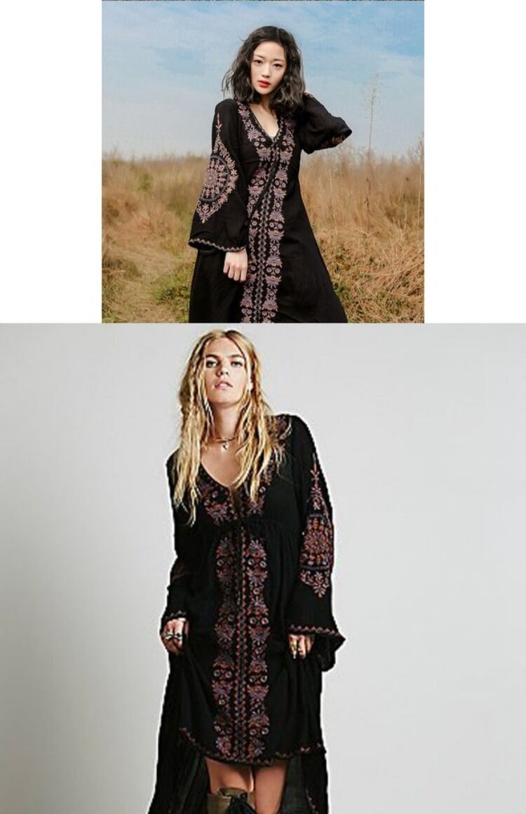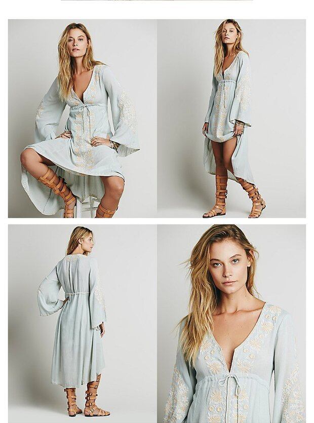 スカート サマーボヘミアンルーズウェストレースVネック刺繍ドレス レディース コットン 大きめサイズ 夏物 ビーチ 延命家ファッション3411221