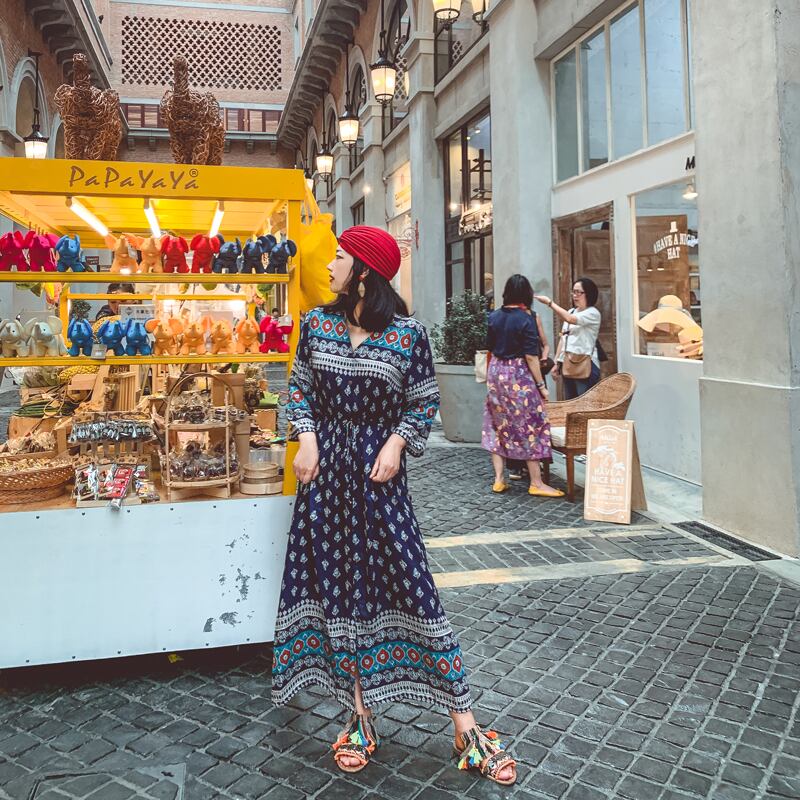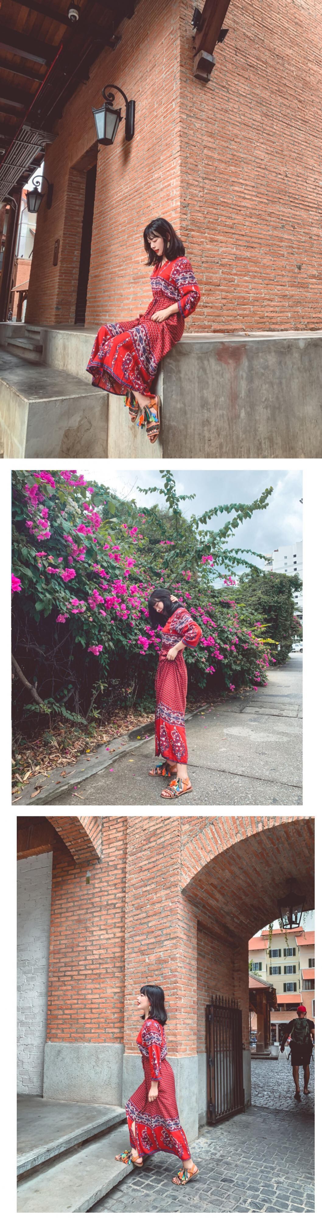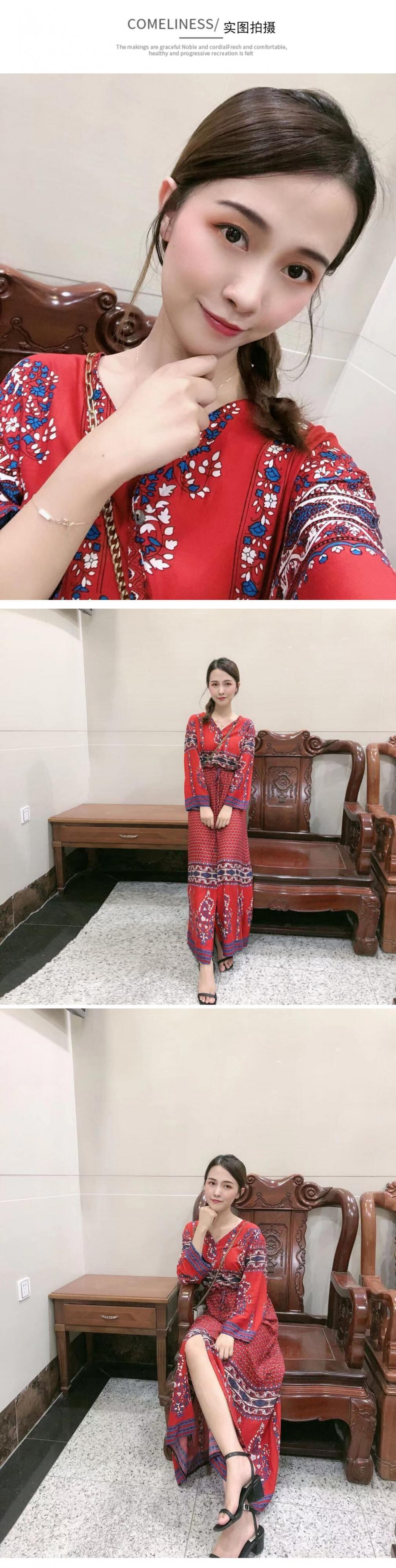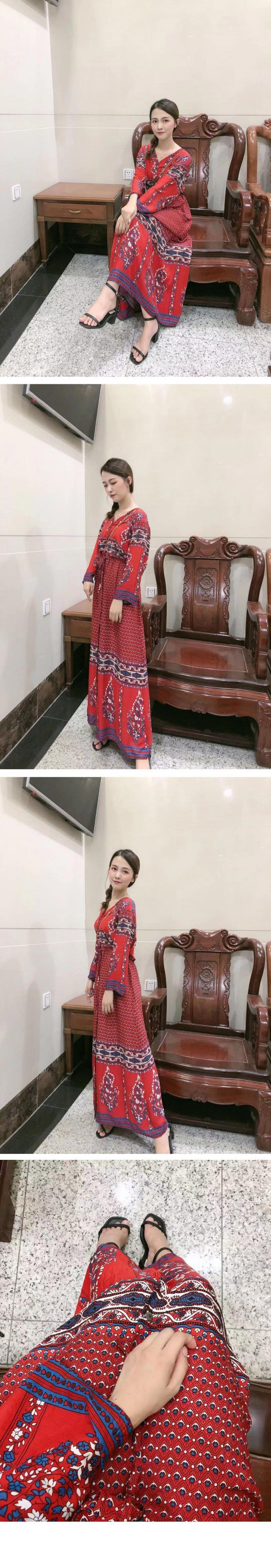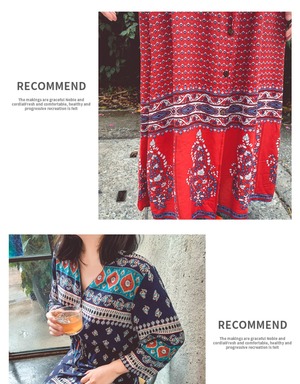 タイタイドブランドホリデーレトロロングスカートボヘミアンエスニックスタイルプリントボタンウエストシンホリデードレス 延命家ファッション8630806