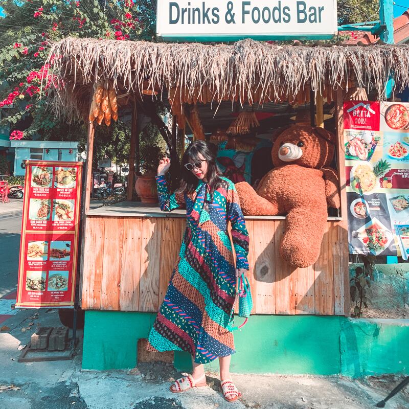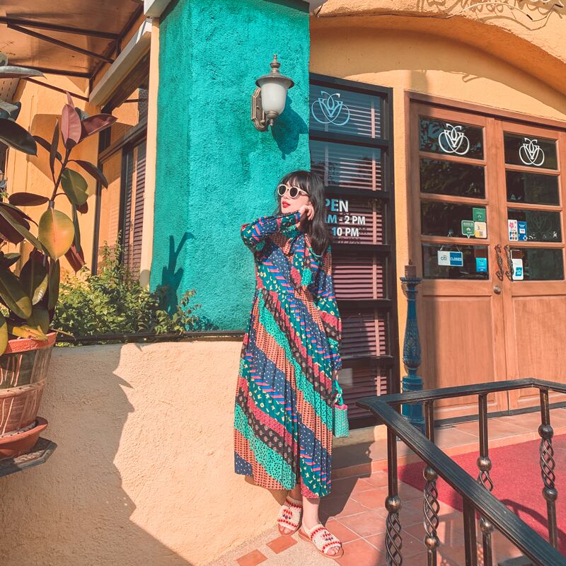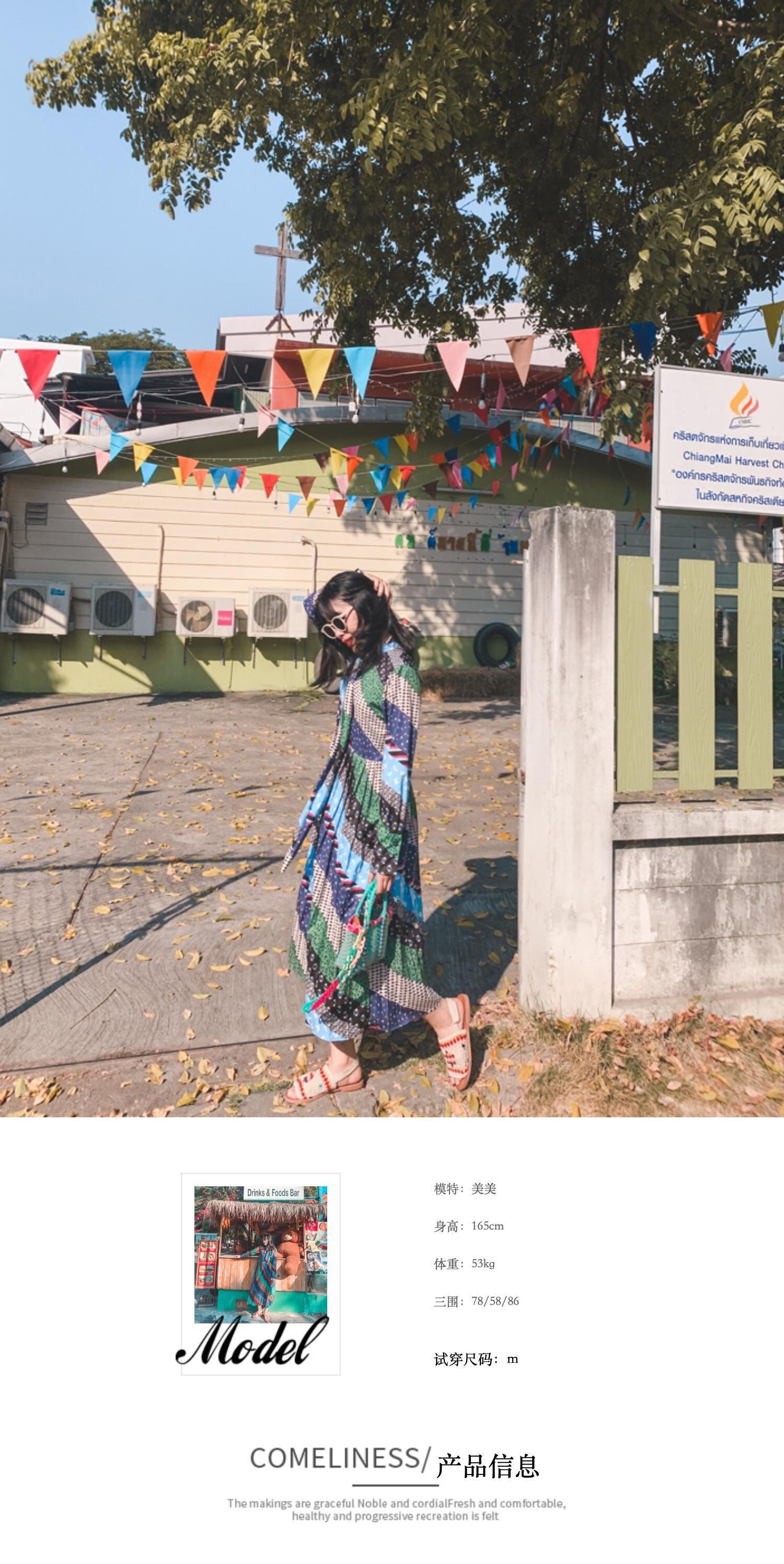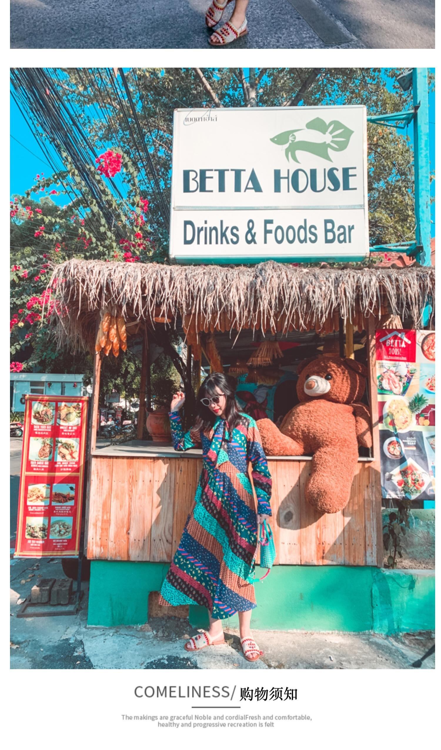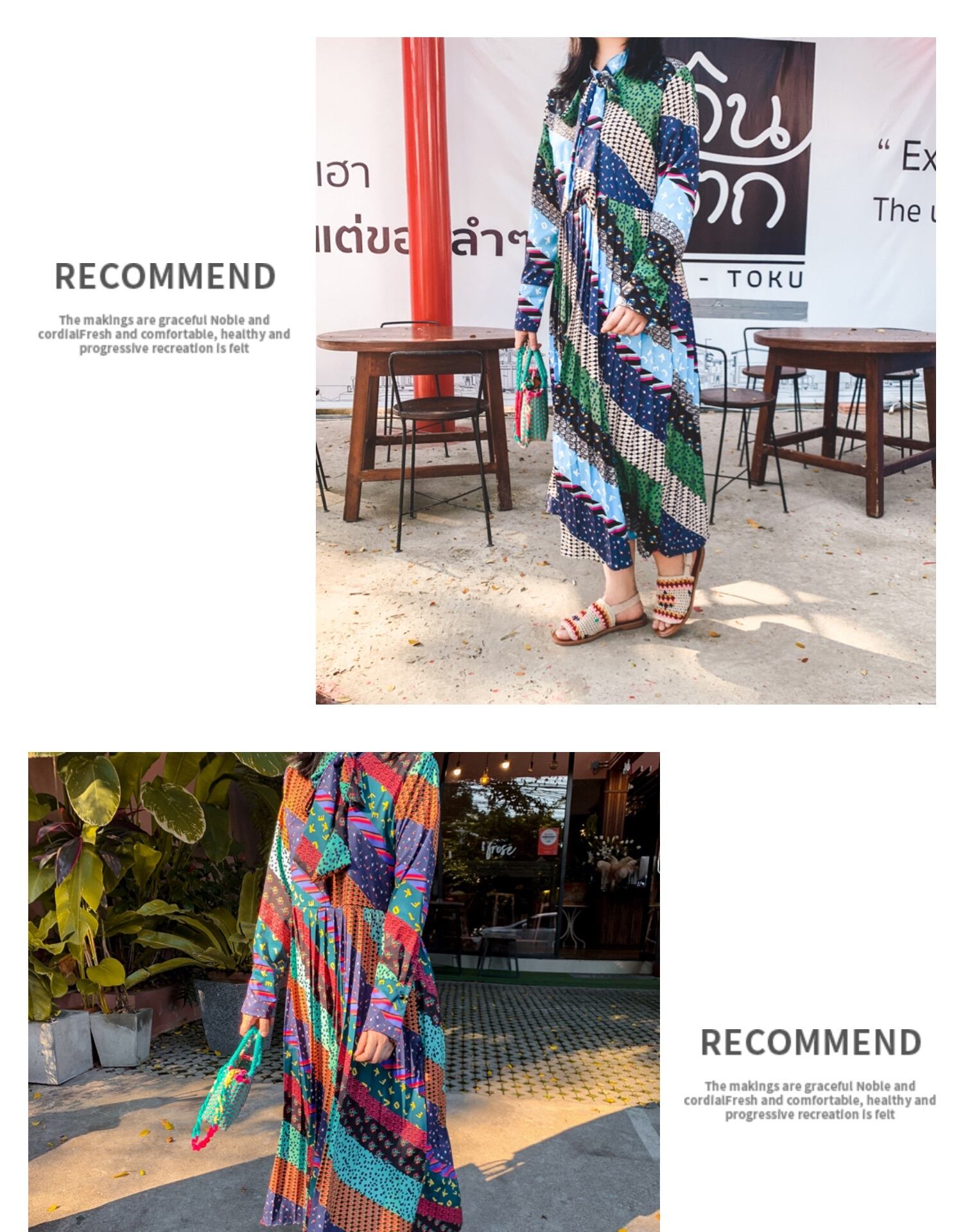 タイタイドブランドの夏の旅行pographyレトロビーチスカートエスニックプリントビッグボウコントラストカラープリーツロングドレス 延命家ファッション1419128