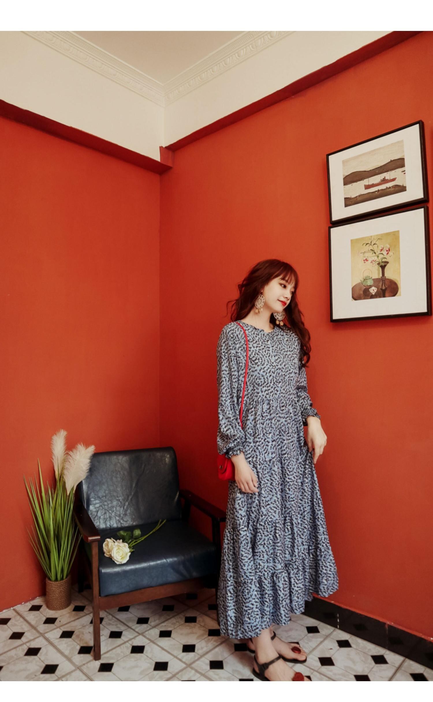 タイタイドブランドボヘミアンビーチスカートレトロプリントロングスカートエスニックホリデースタイルルーズスリムドレス 延命家ファッション3099074