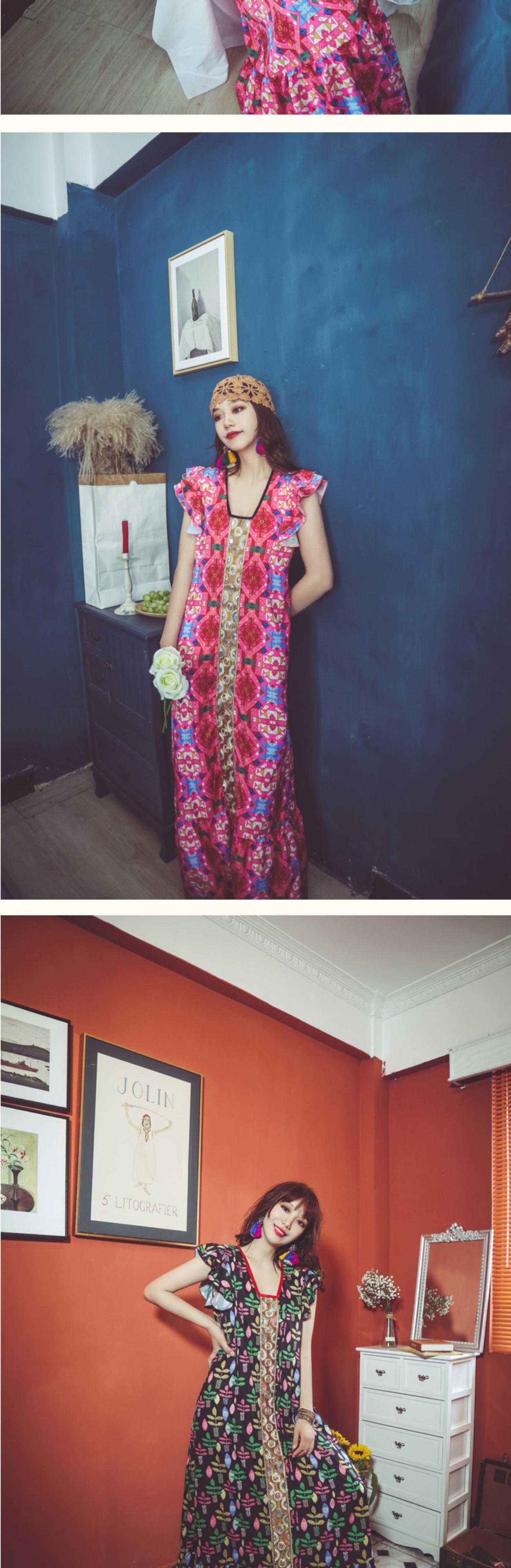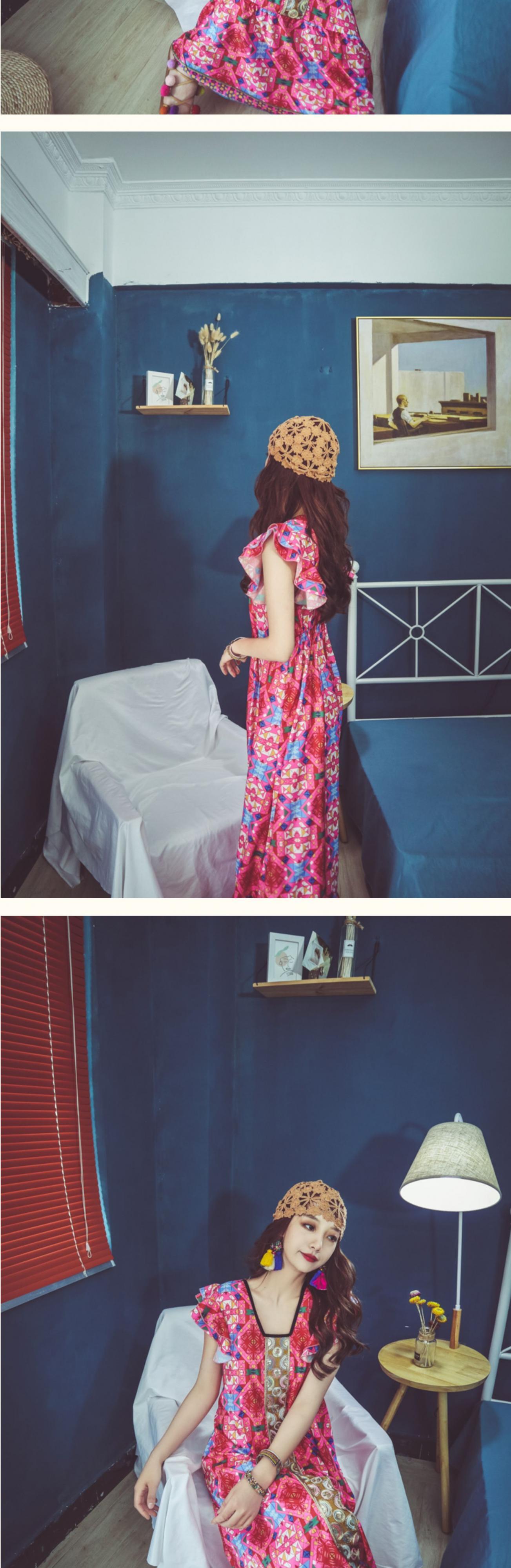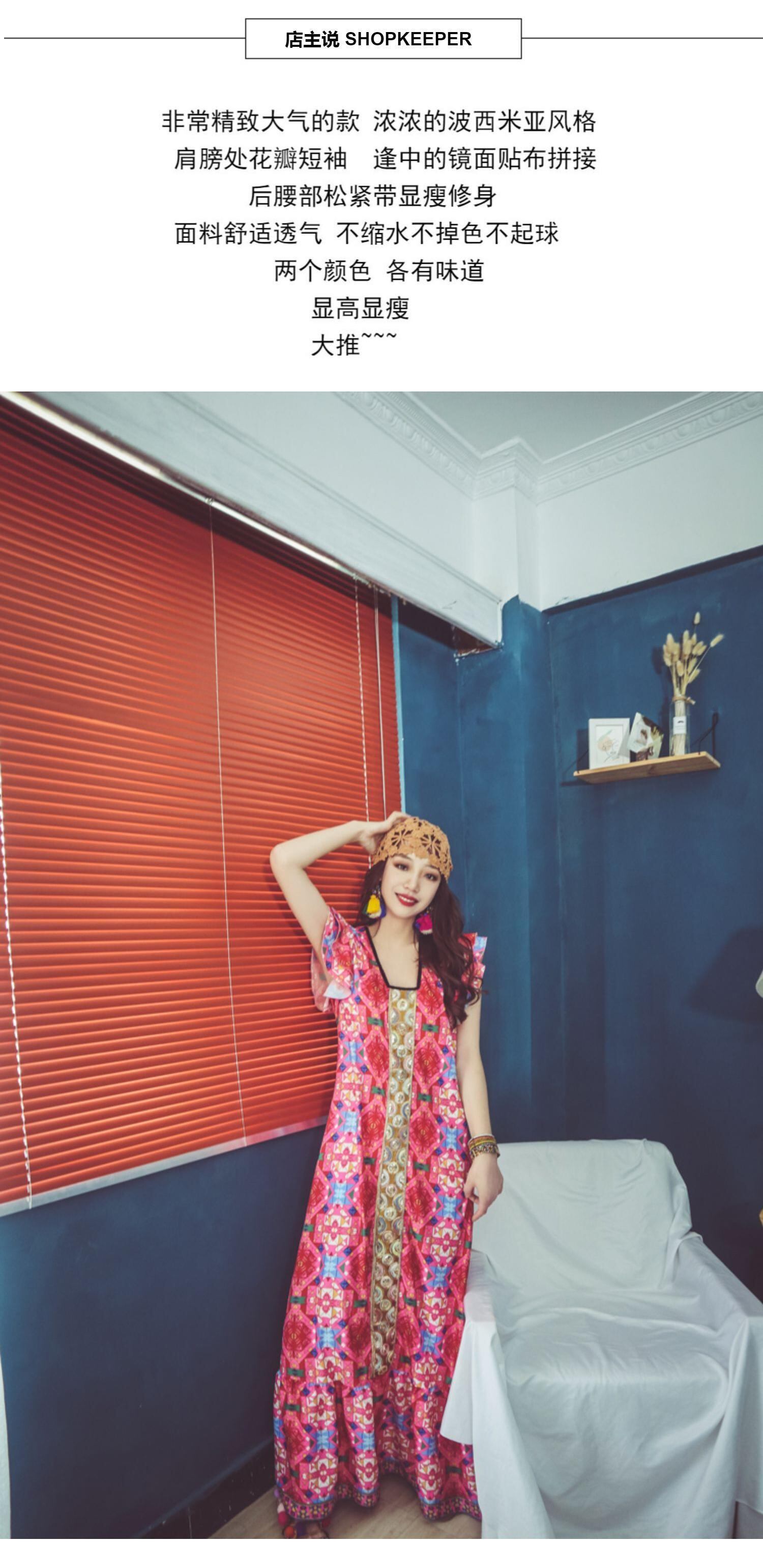タイの休暇Shao Yuelunネット赤印刷ホリデードレスボヘミアンエスニックスタイル花びらスリーブステッチロングスカート 延命家ファッション3380833