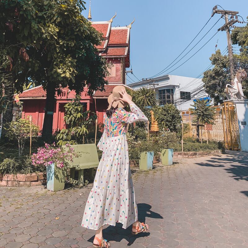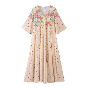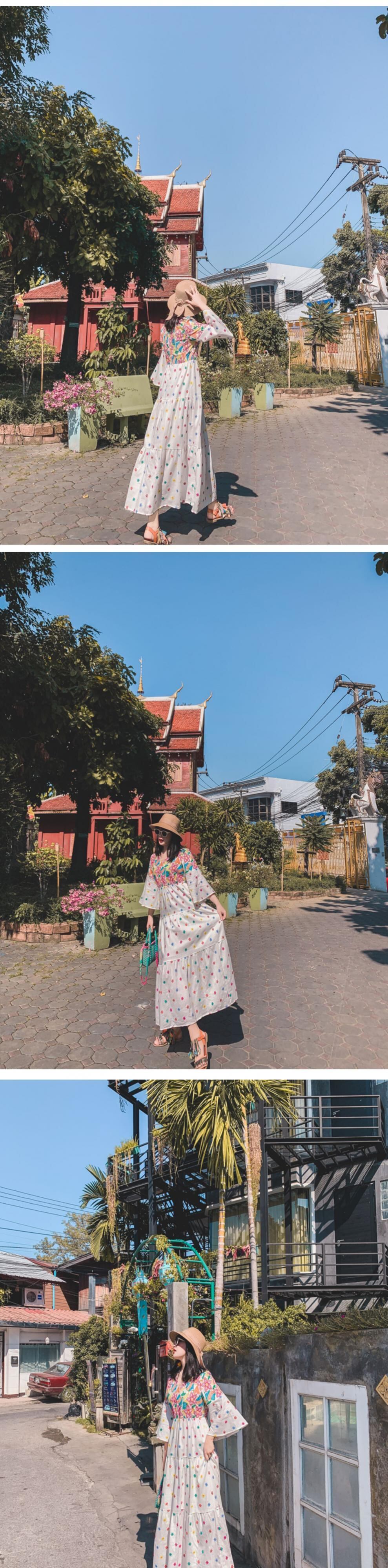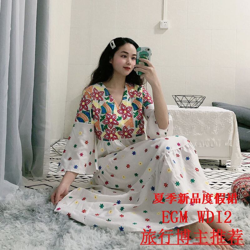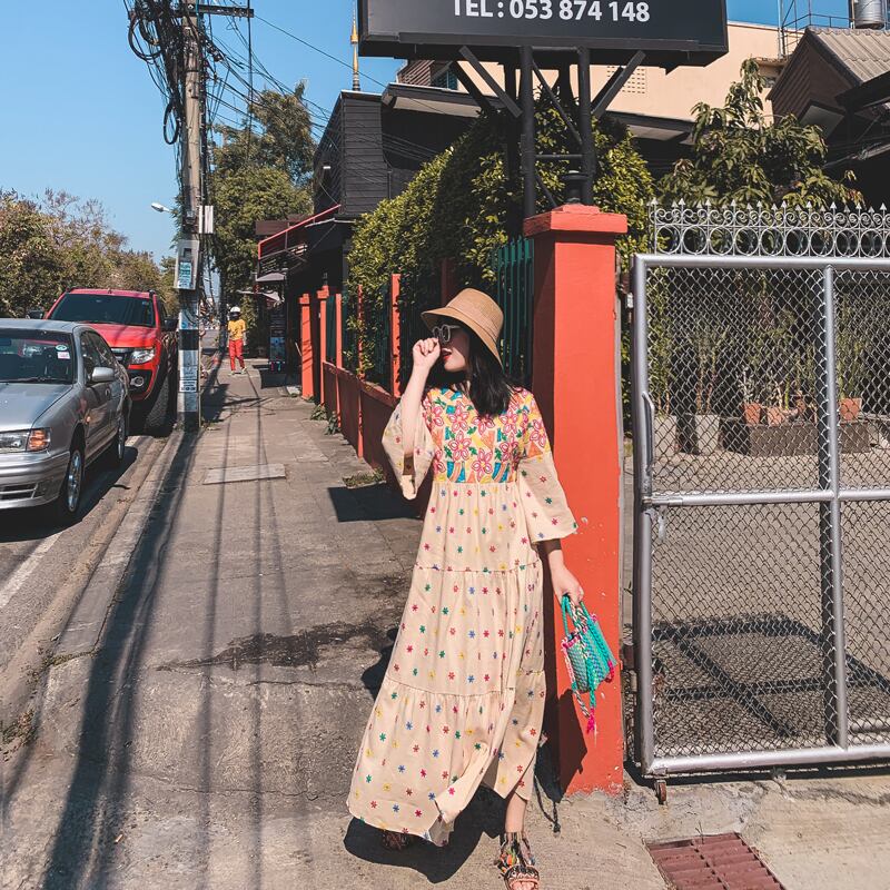 スタイルスカート エスニックロングFlowerデザイン 刺繍ドレス コットン ビーチ フラワーデザイン 延命家ファッション6909334