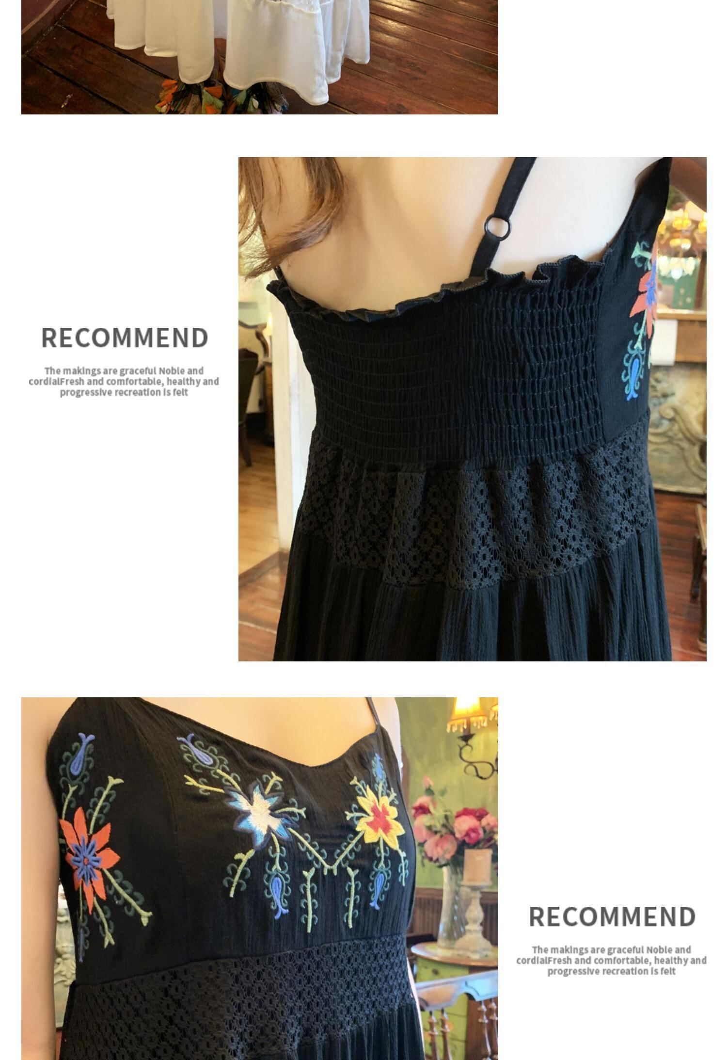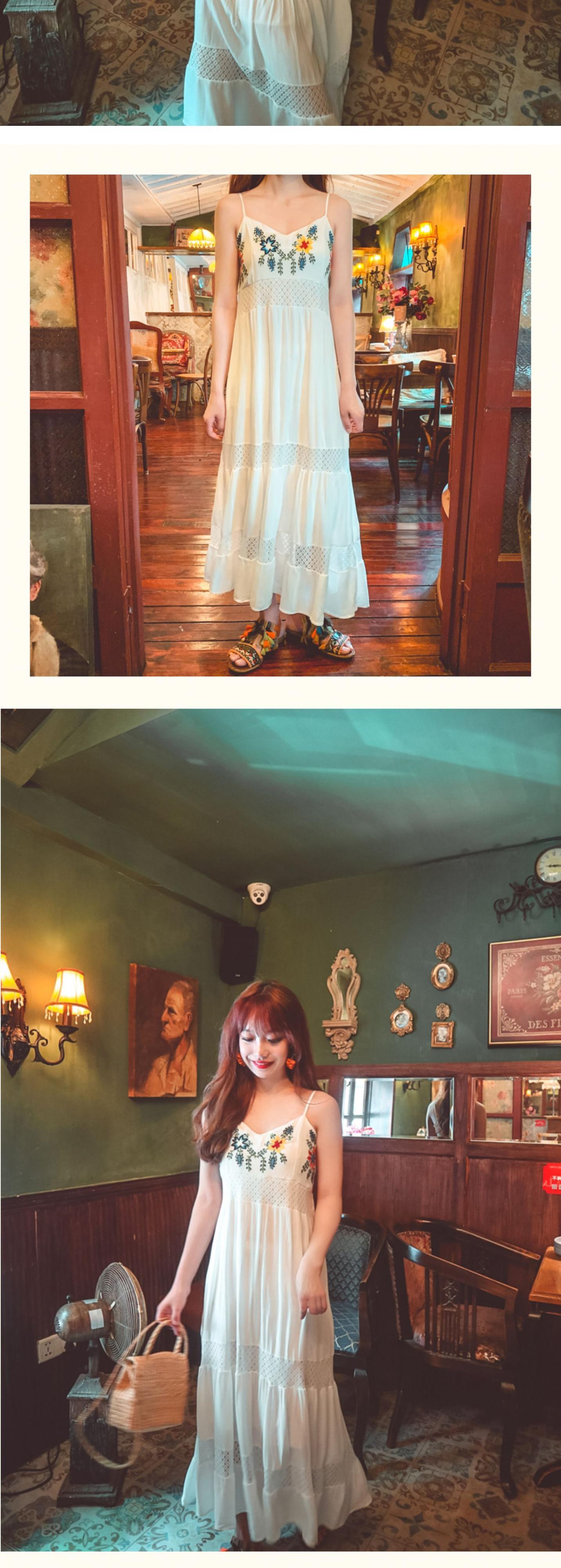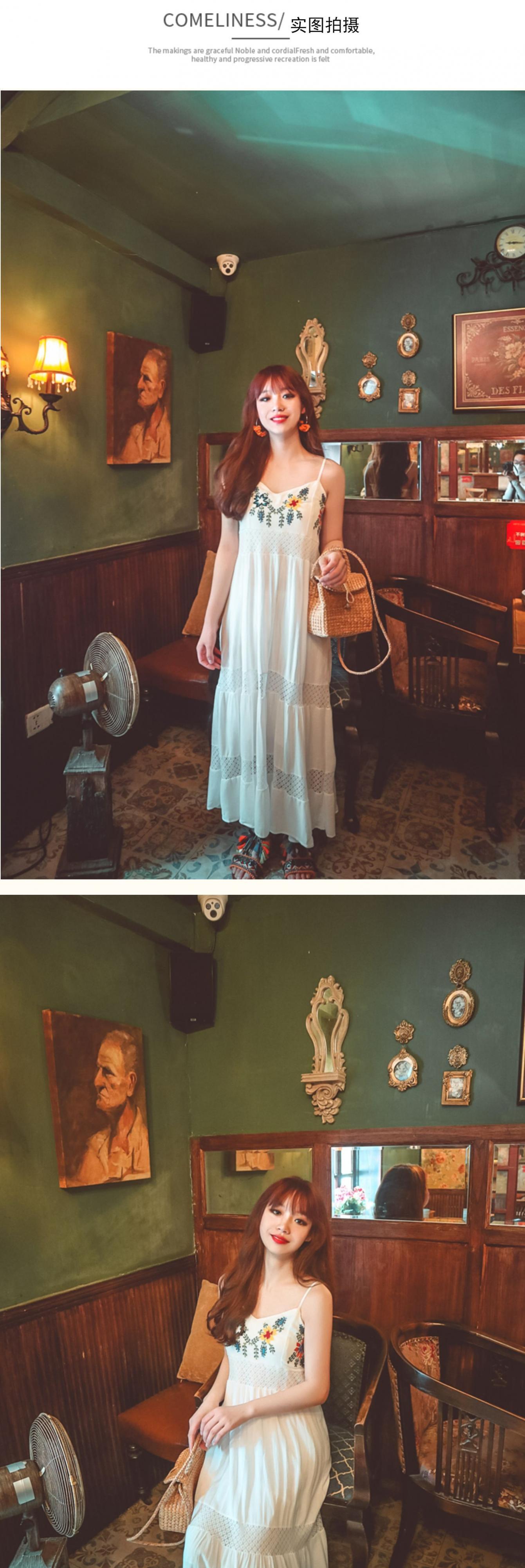 サマーホワイトロングスカート 刺繍エスニックドレス 夏物 延命家ファッション0683921