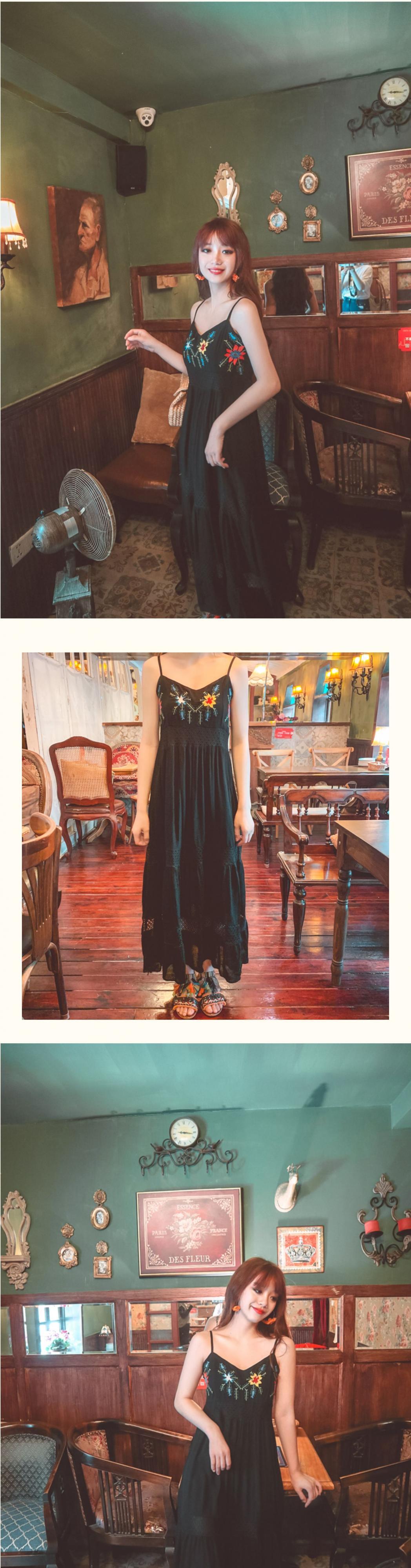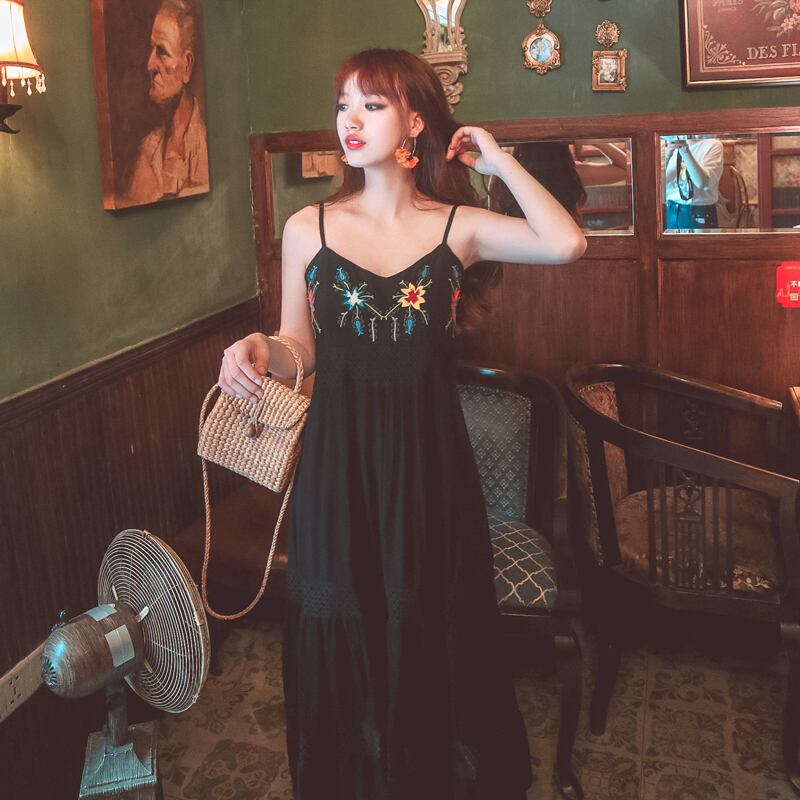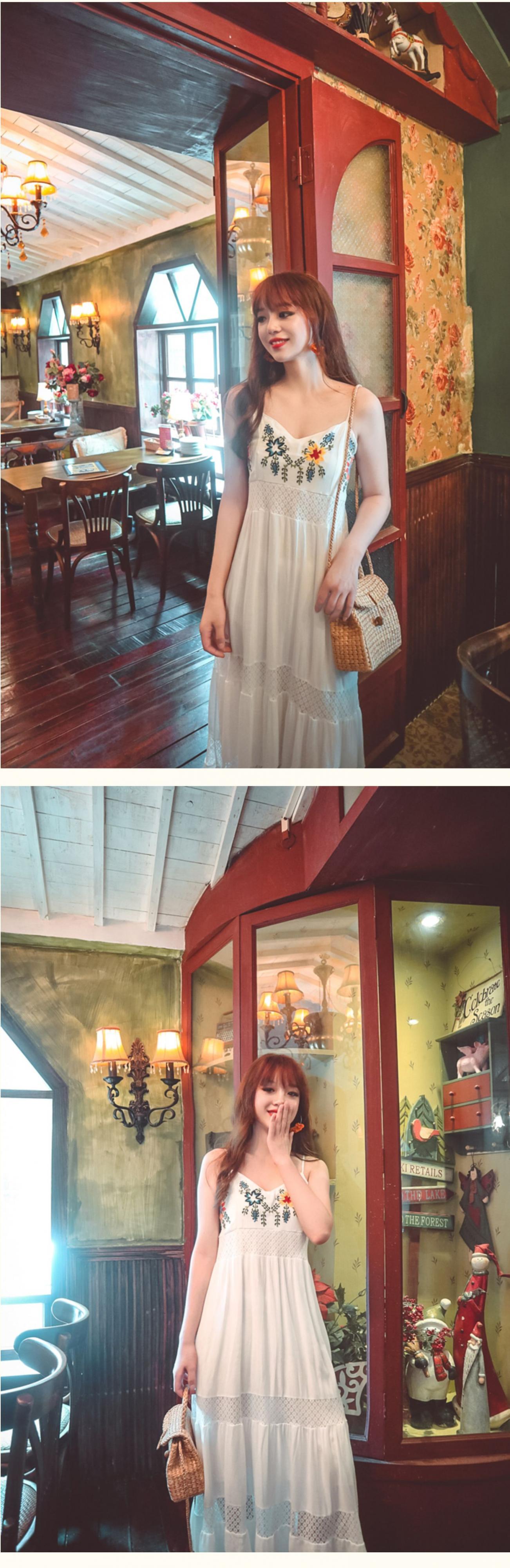 サマーホワイトロングスカート 刺繍エスニックドレス 夏物 延命家ファッション0683921