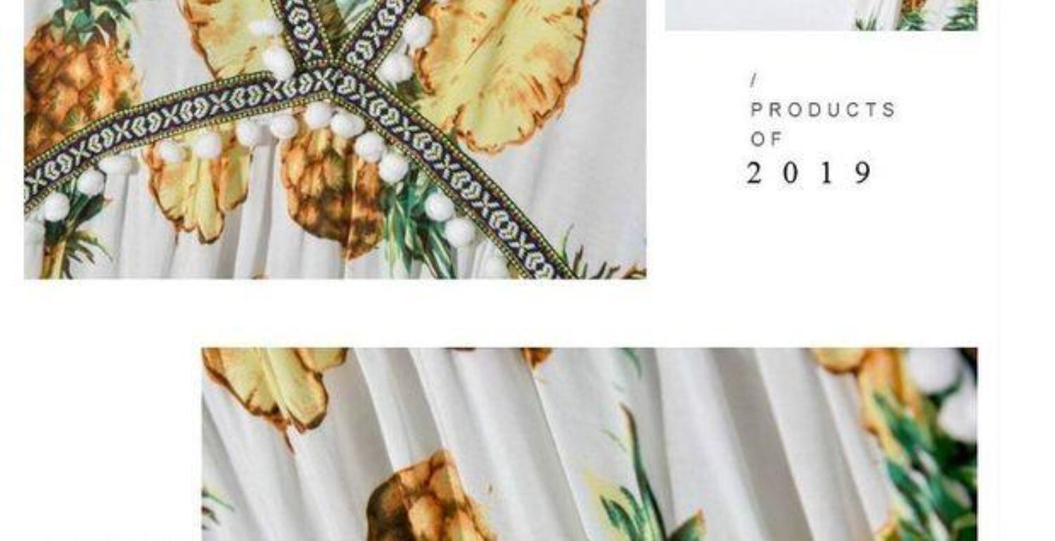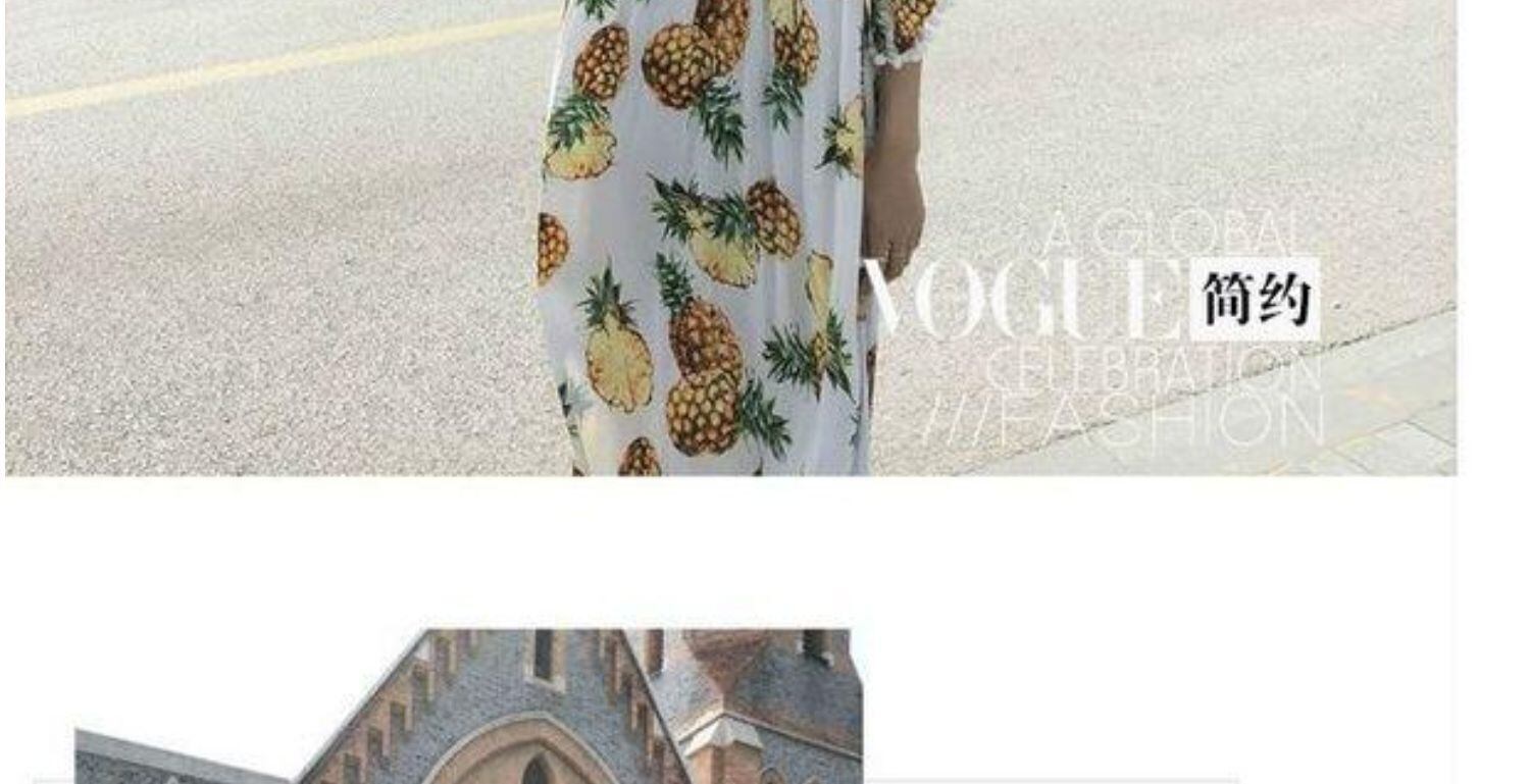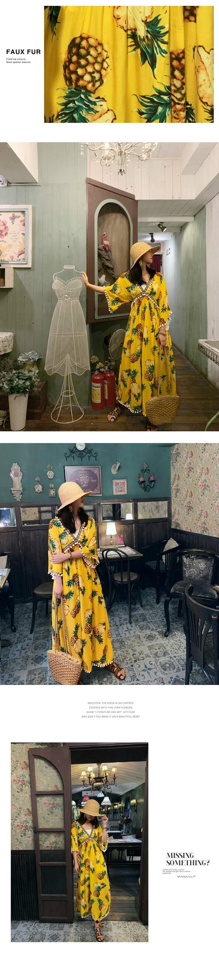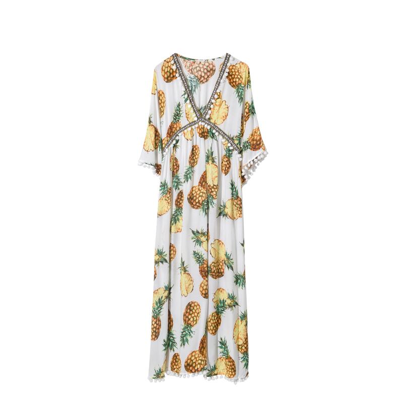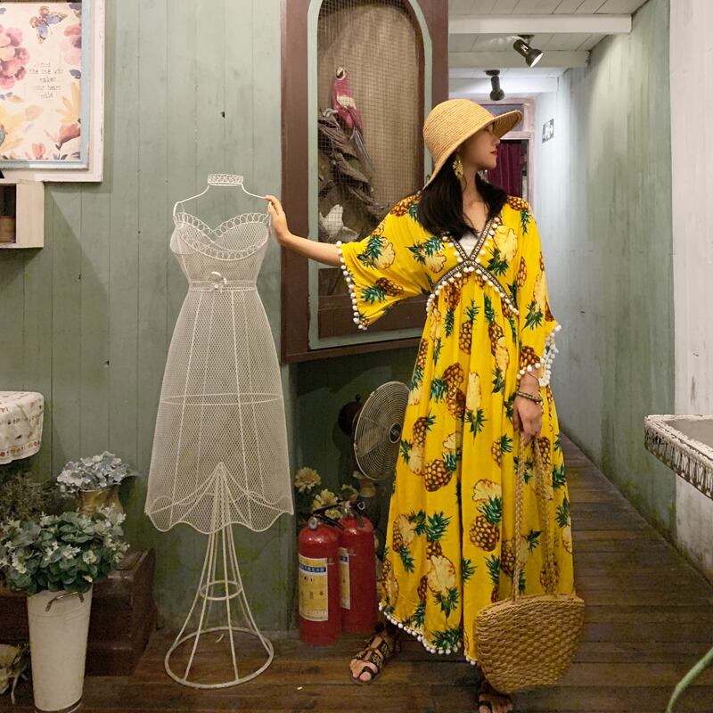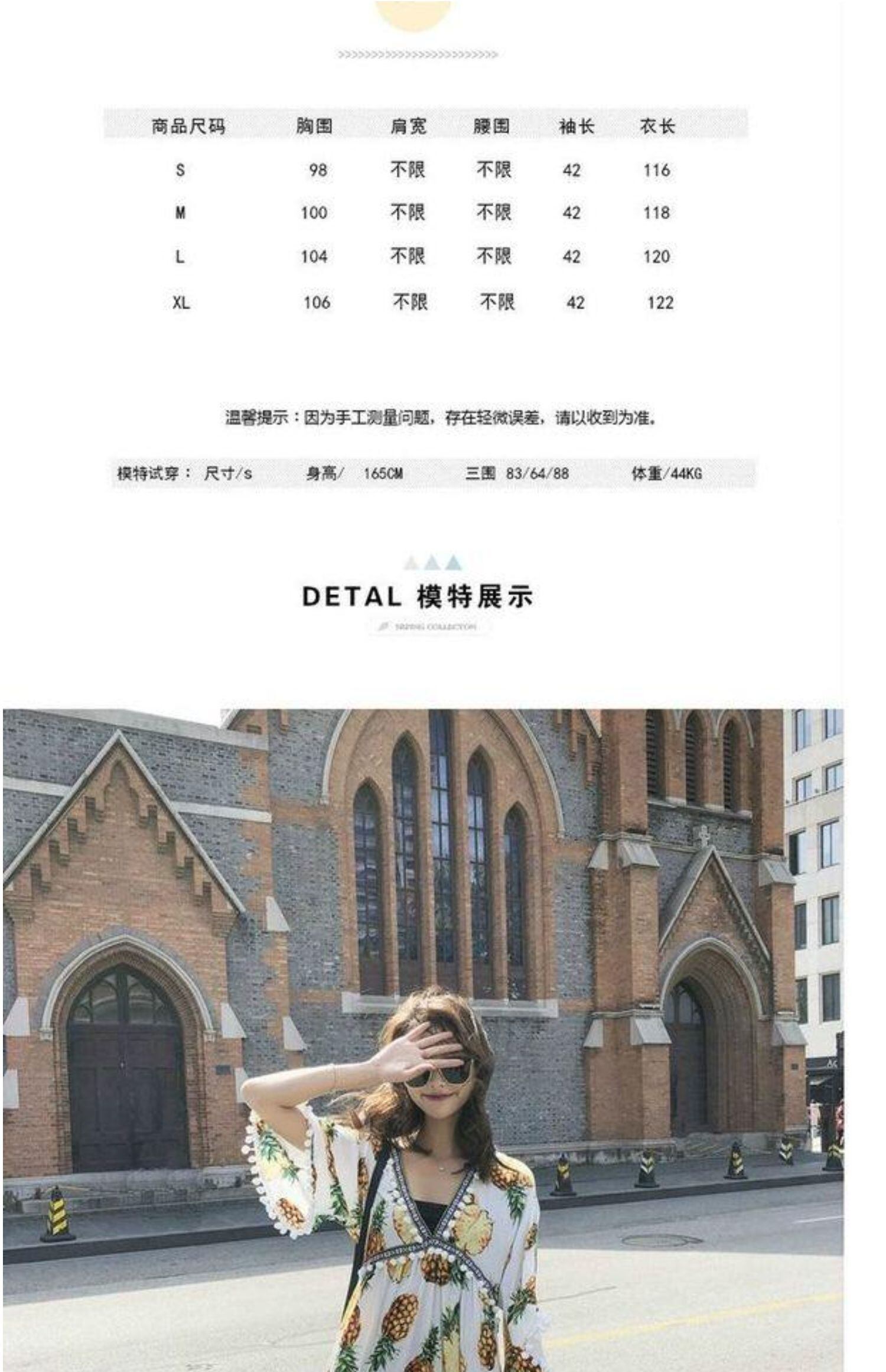 スカート サマースタンダードルーズプリント柄Vネックドレス レトロ 夏物 ビーチ 延命家ファッション1957422