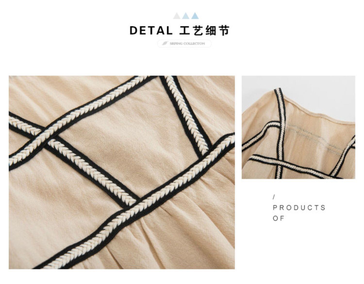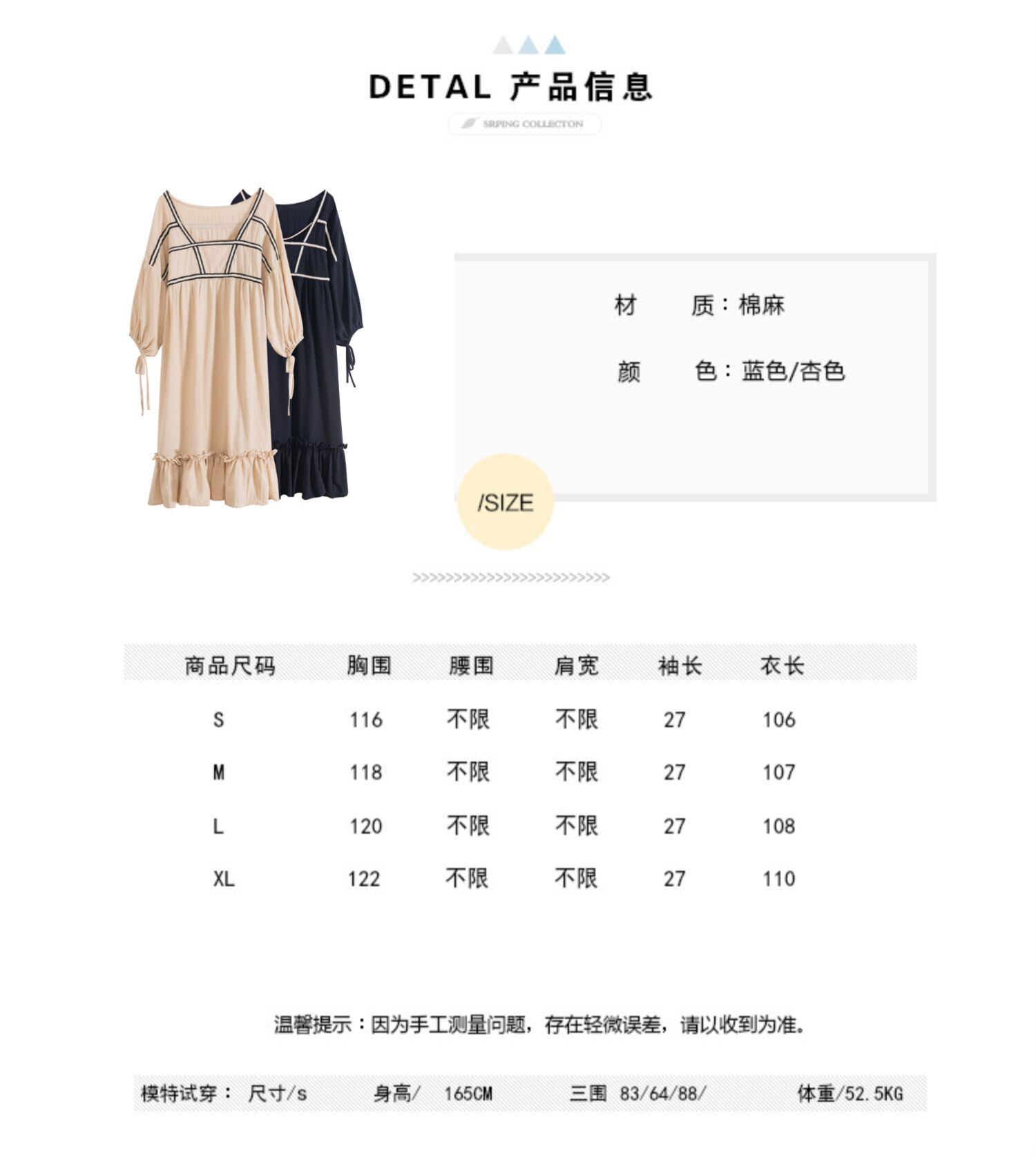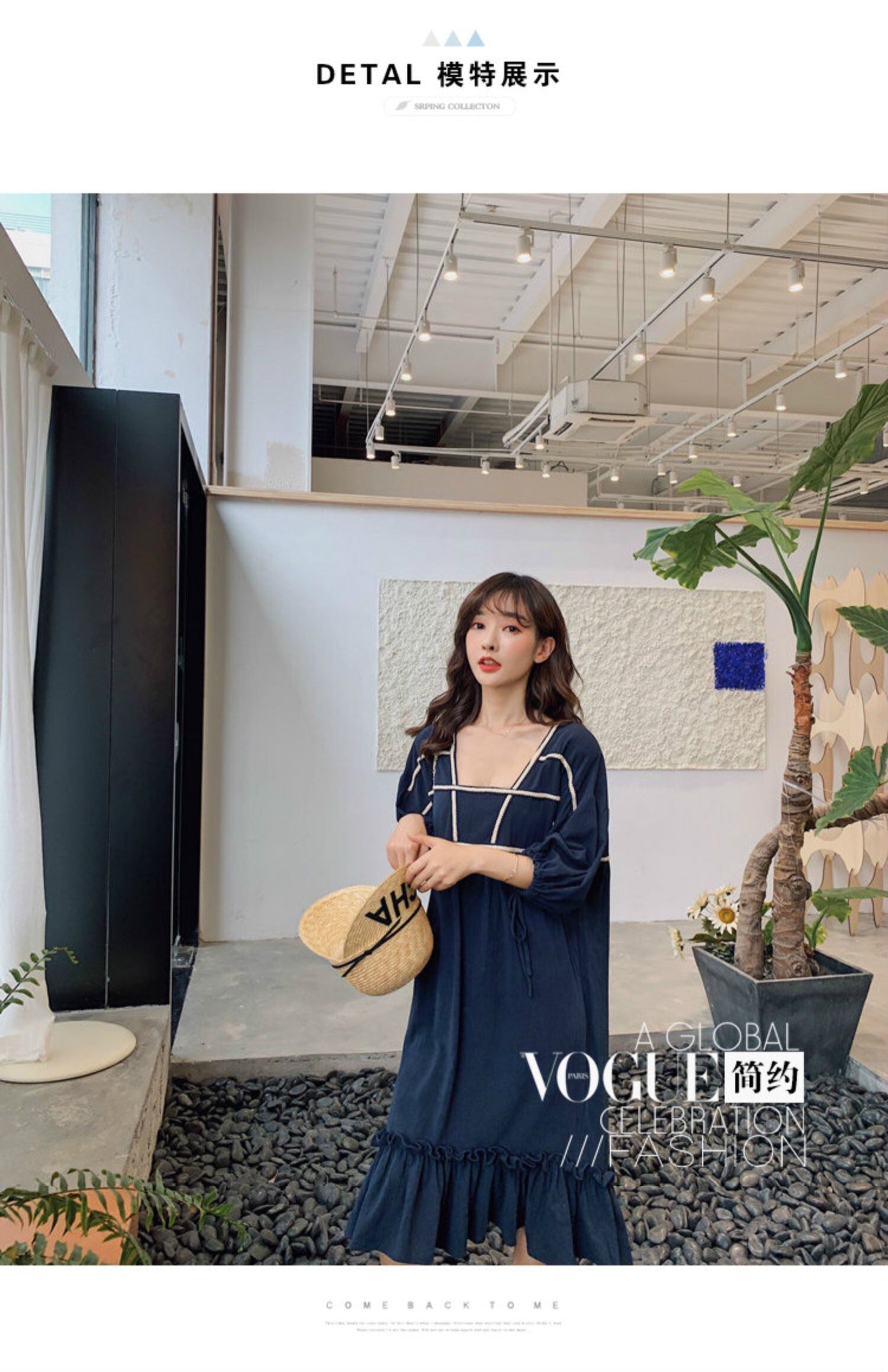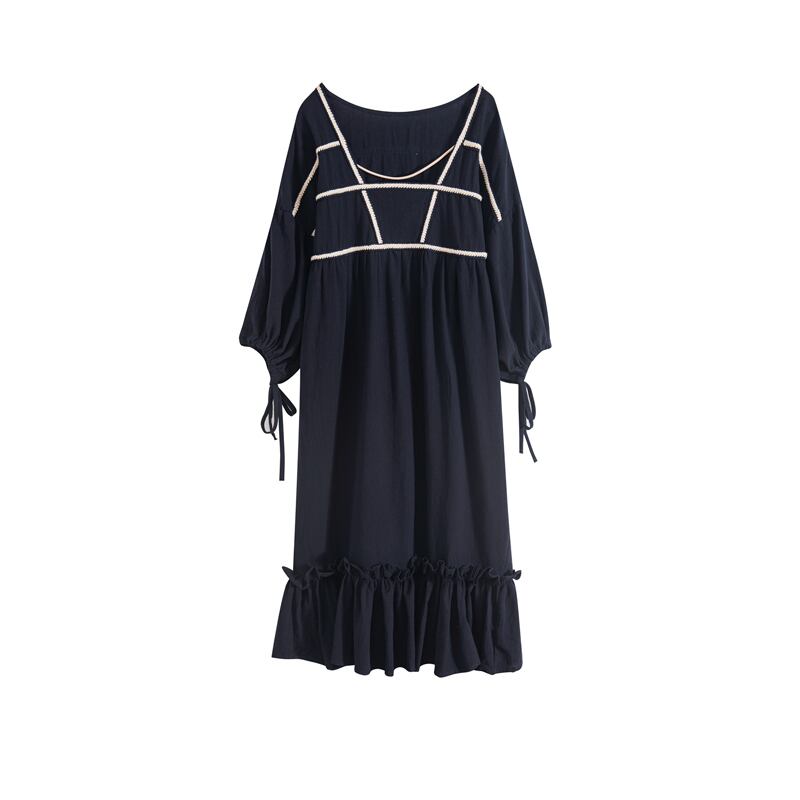 タイタイドブランドフレンチレトロスタイル秋新しいvネックスカートコントラストカラードローストリングリボンフリルコットンとリネンドレス 延命家ファッション3724318