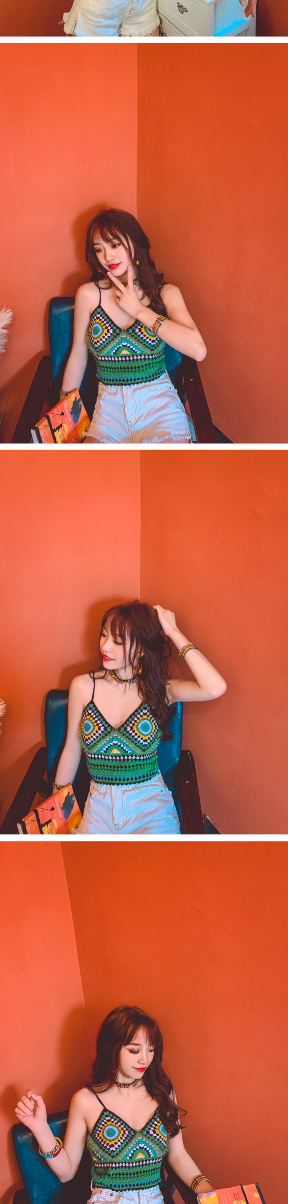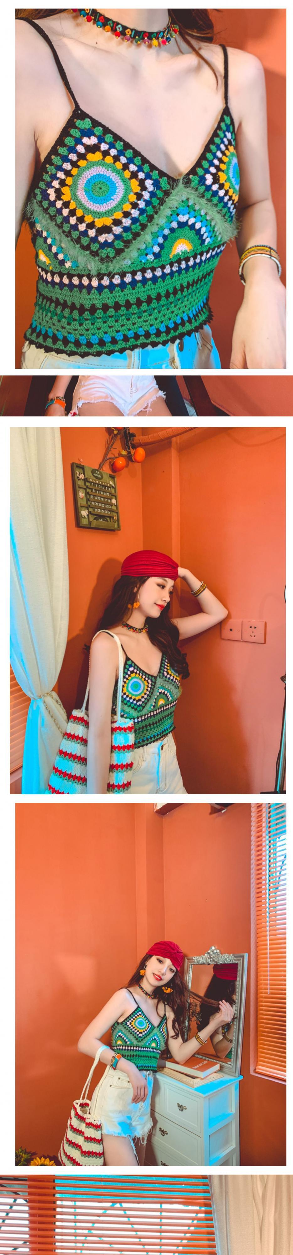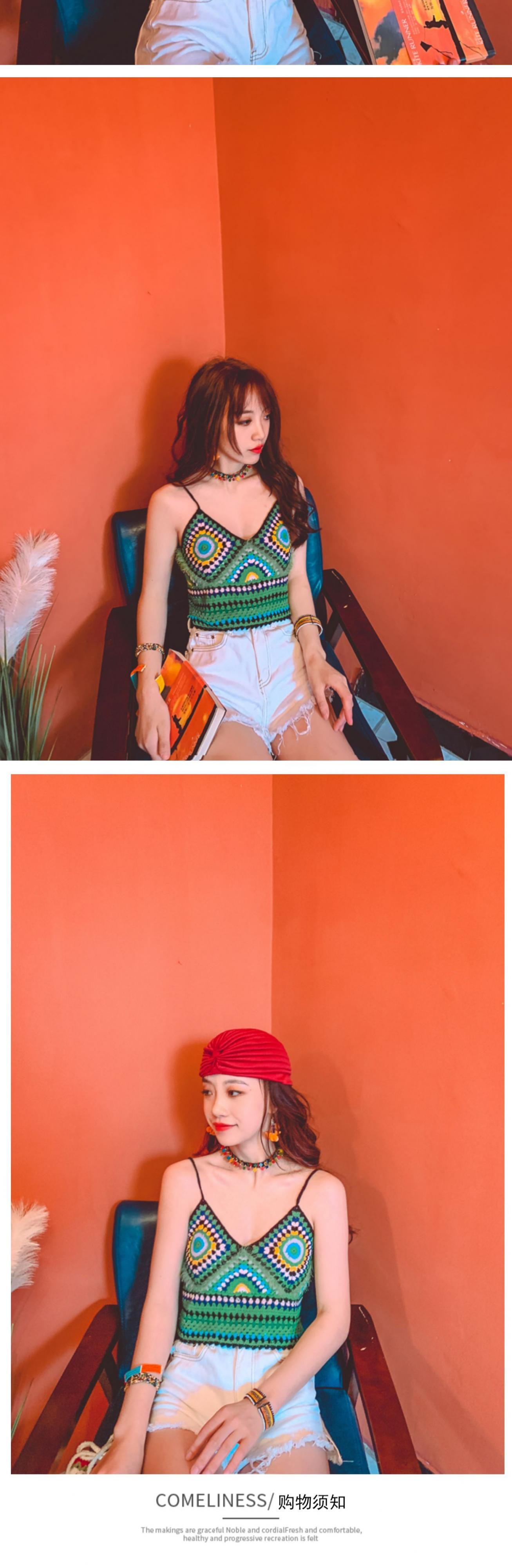 自然派スタンダードスタイルグリーンカラーニットサマー レッド レトロ 夏物 延命家ファッション1927143