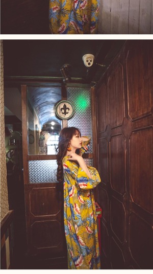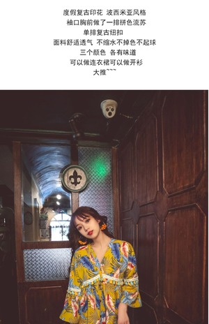 ボヘミアンスカート スタンダードプリントドレス ボタンカーディガン レトロ ビーチ 延命家ファッション3998667