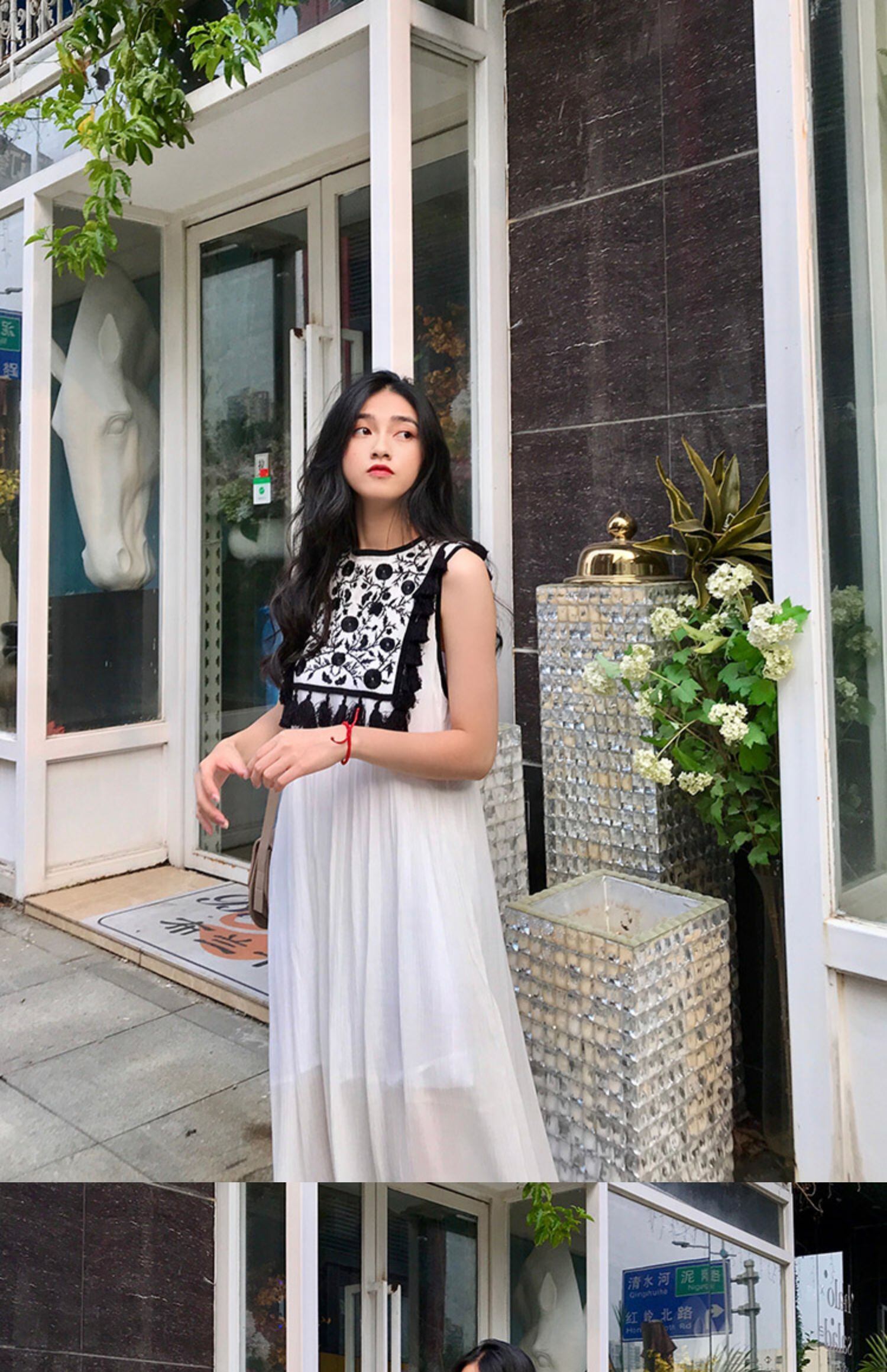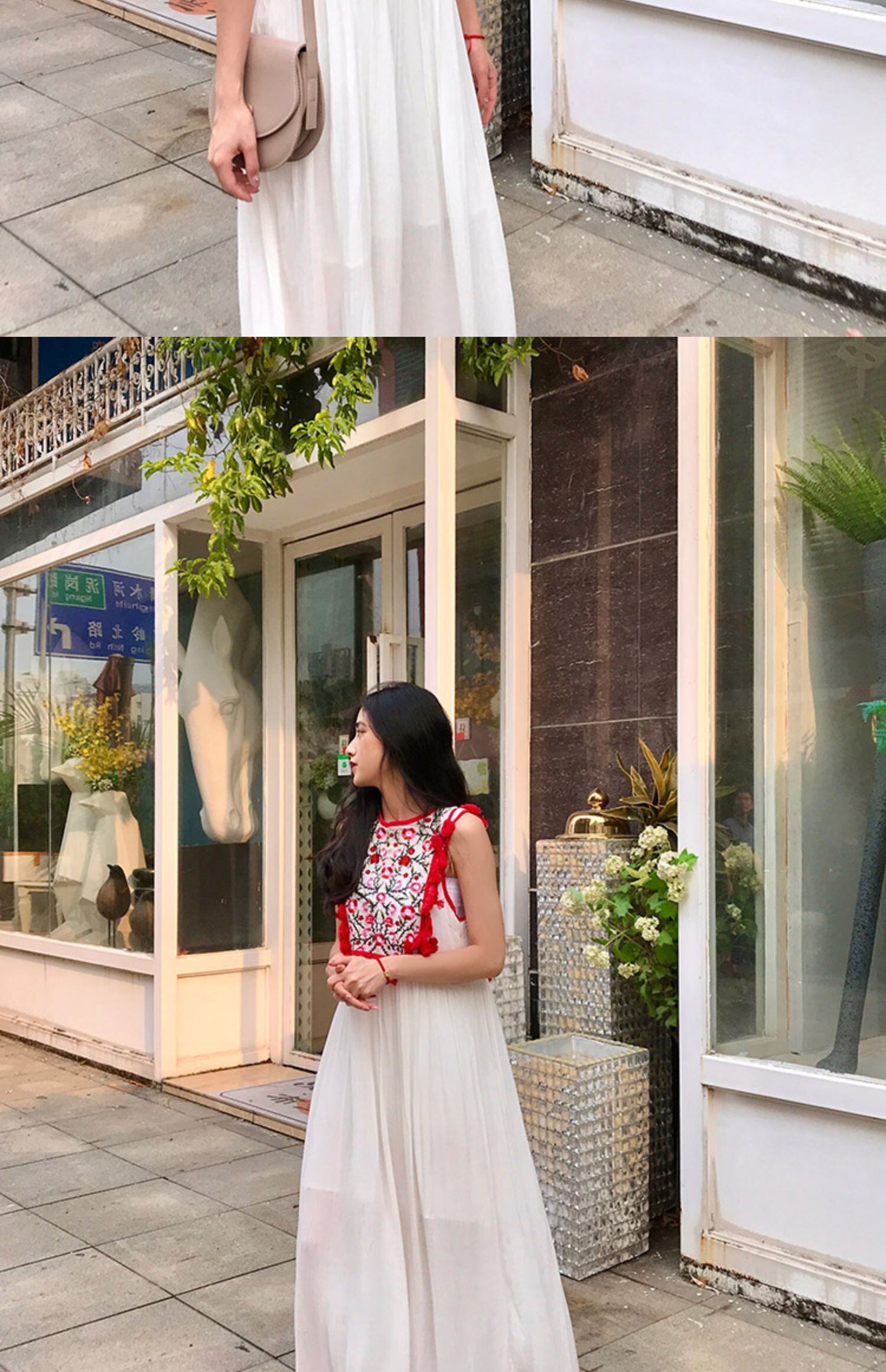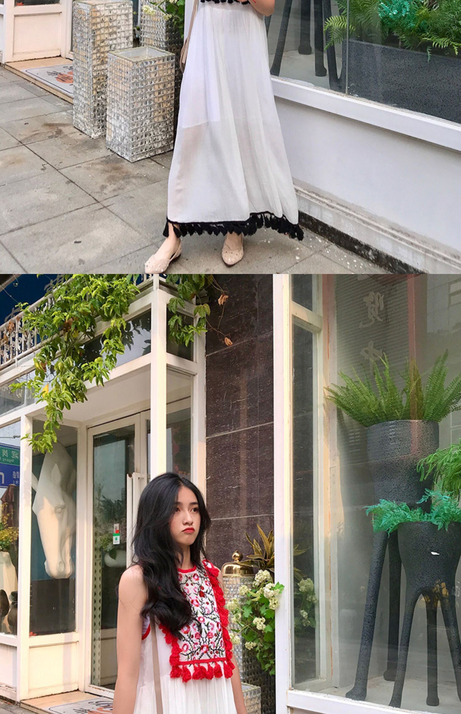 タイタイドブランドのホリデースタイルのレトロロングスカートネパール旅行スカート花刺繍フリンジサイドベストビーチロングスカート 延命家ファッション3689489