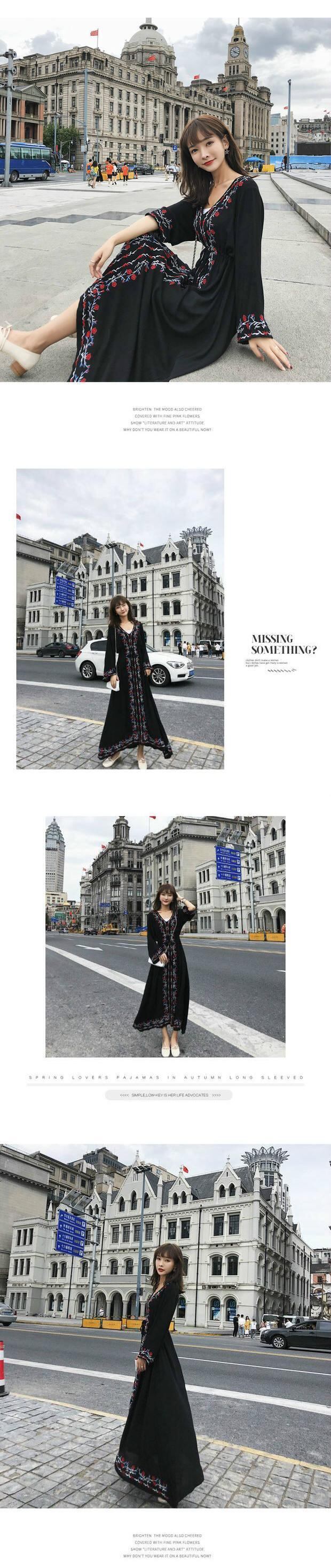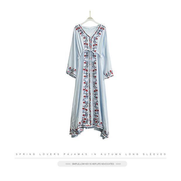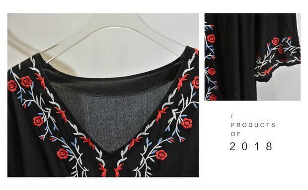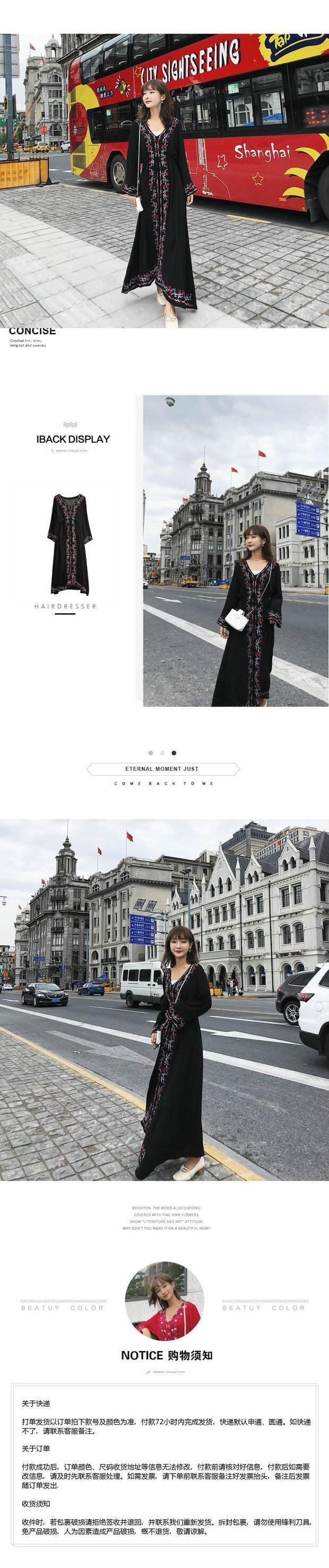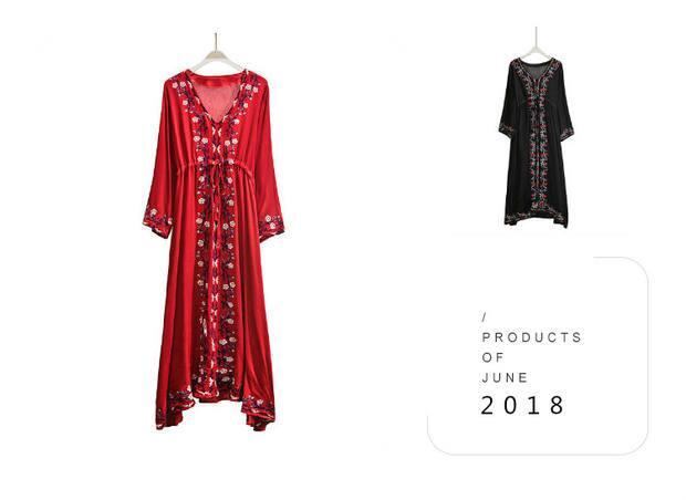 スプリングサマーボヘミアン薄手ドレス レディース レッド コットン 刺繍 大きめサイズ 春物 夏物 延命家ファッション8895961