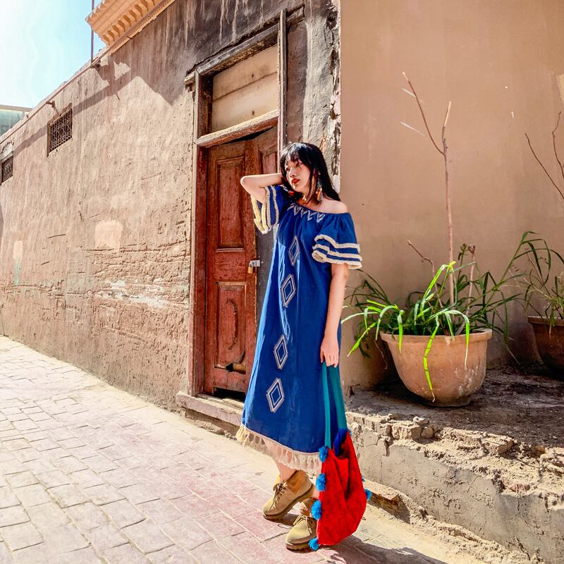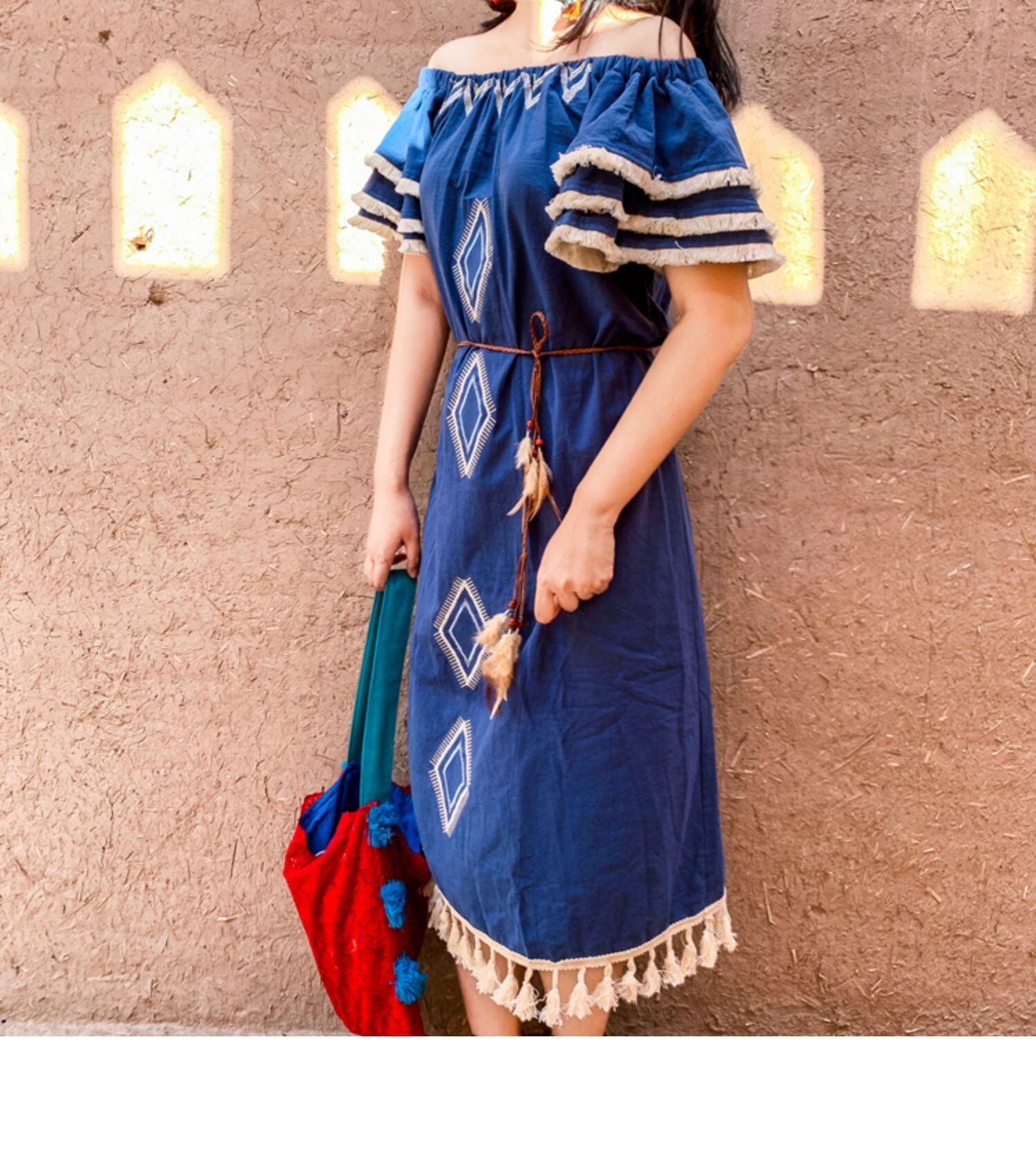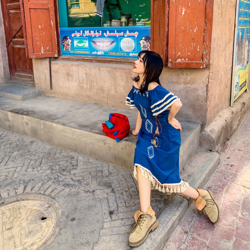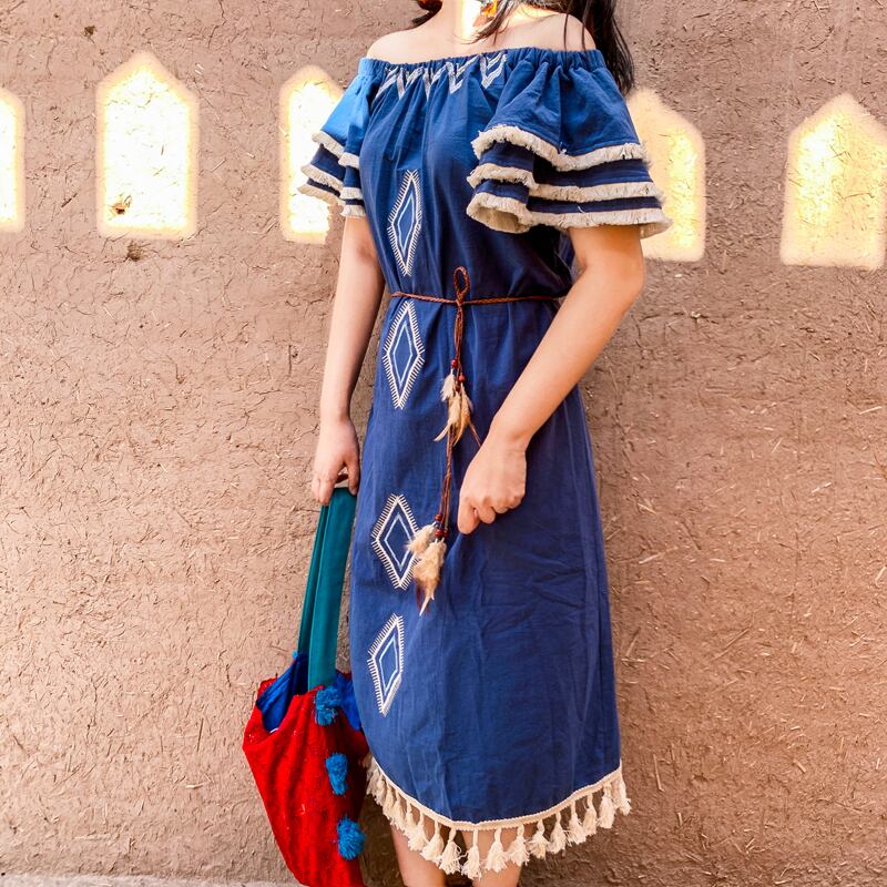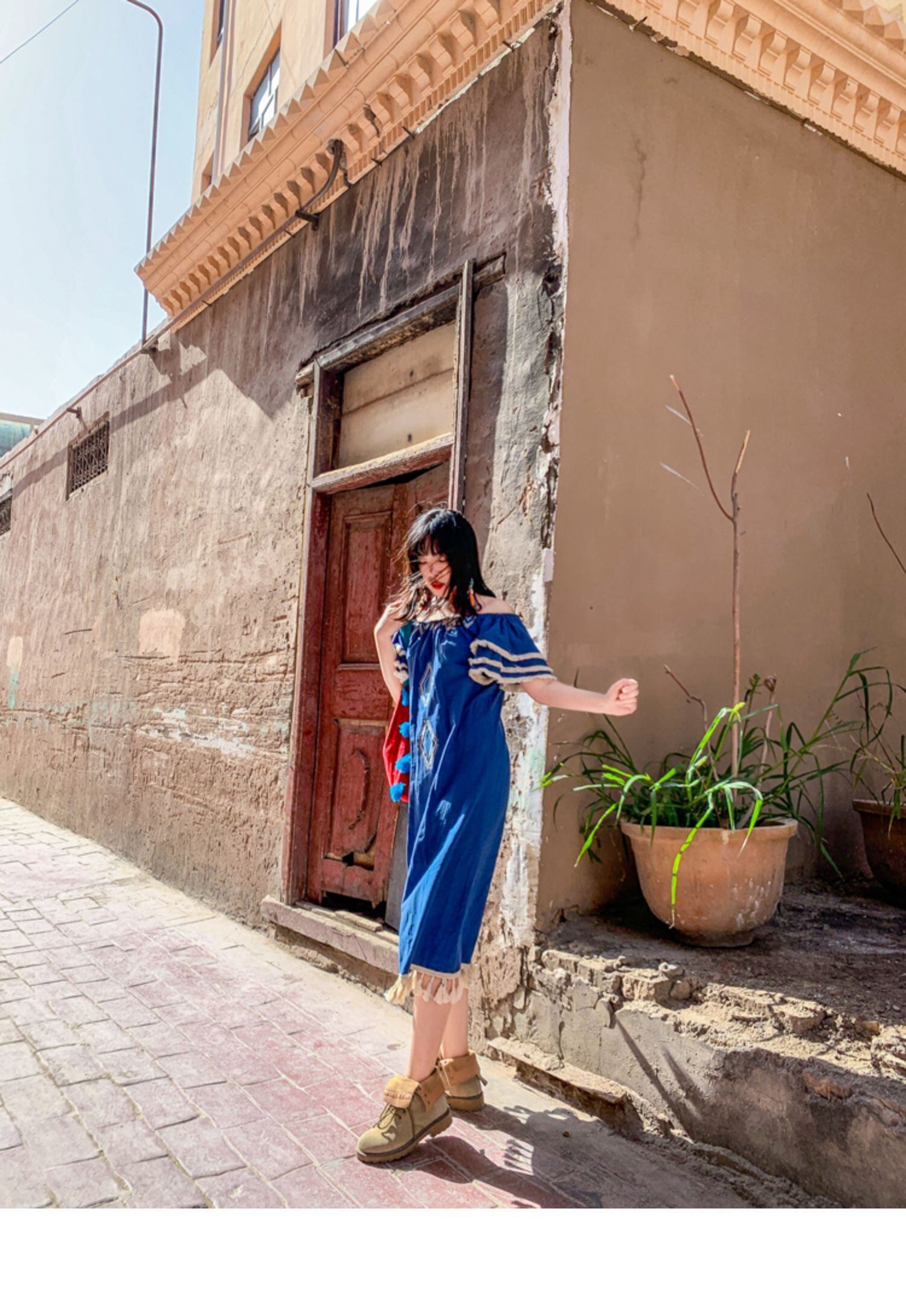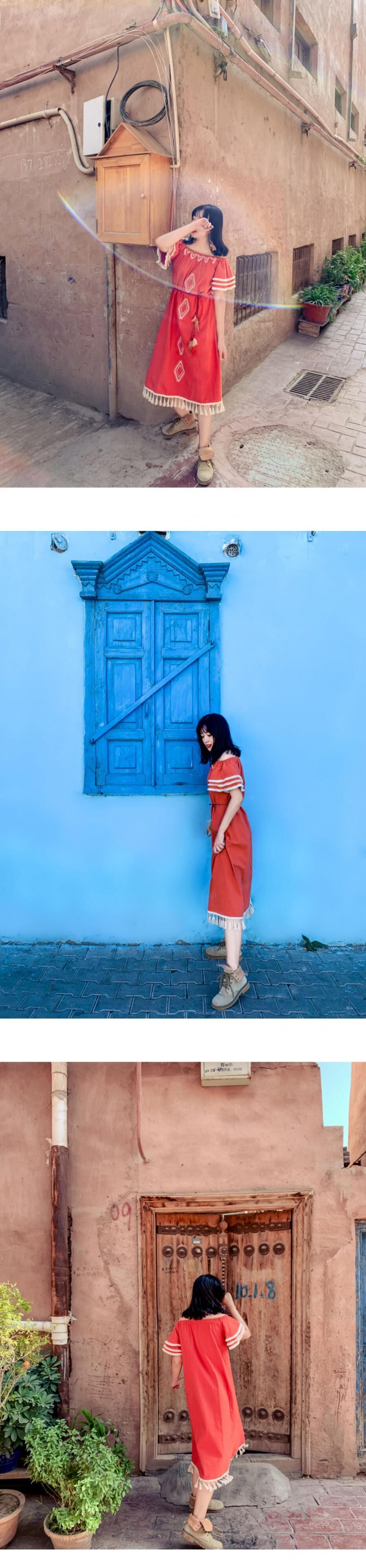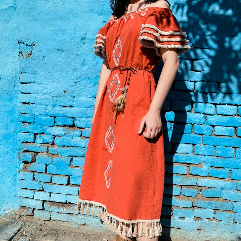 ロングスカート スタンダードスタイル刺繍ボヘミアンドレス コットン レトロ 大きめサイズ 延命家ファッション8247499
