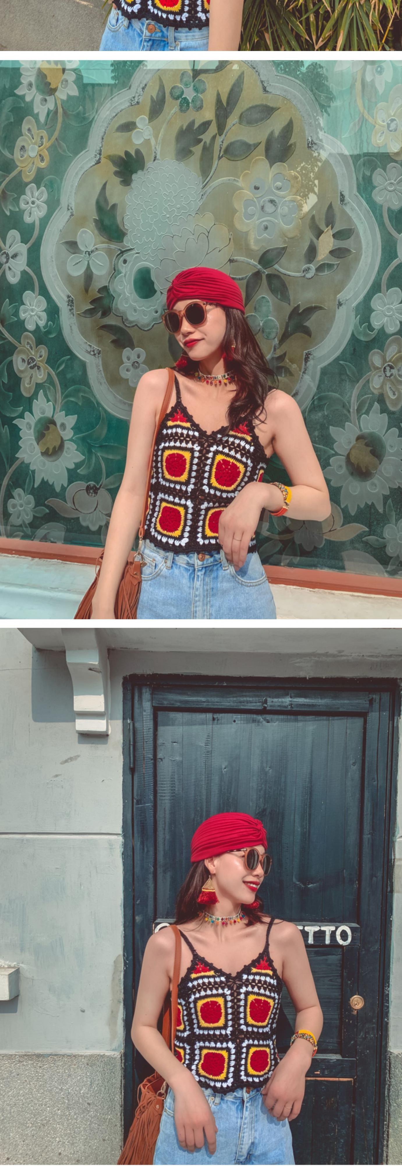 サマースタイルVネックスタンダードカラートップス レトロ 夏物 延命家ファッション9681698