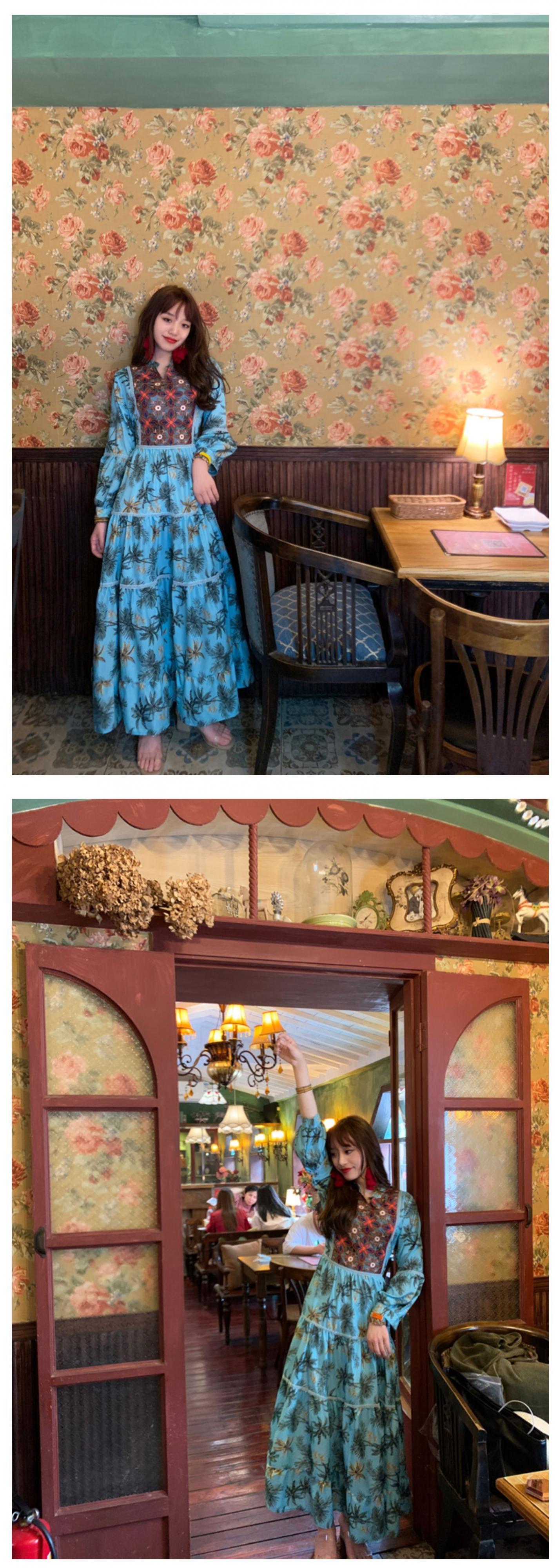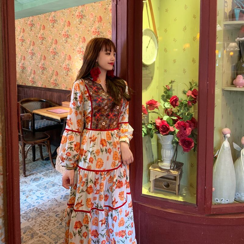 レッドドレス ボヘミアンエスニック刺繍ロングスカート ビーチ 延命家ファッション8826630
