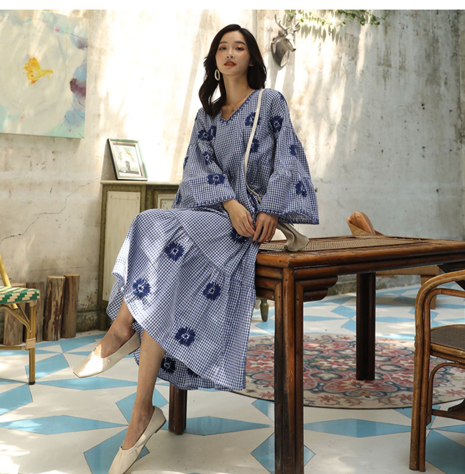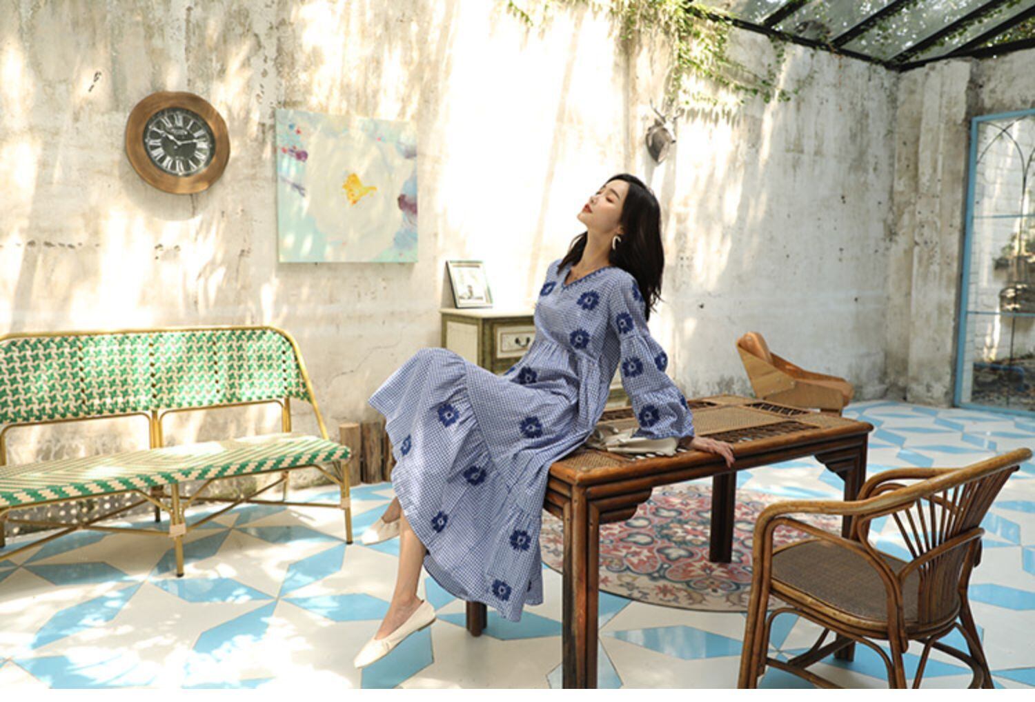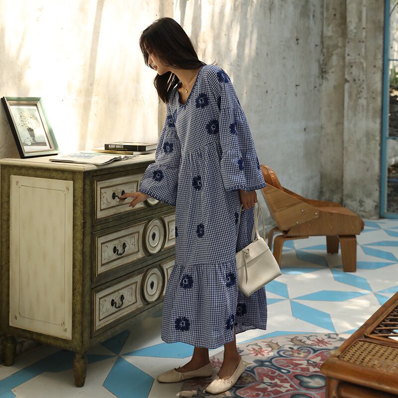 スタイルスカート ロングFlowerデザイン 刺繍スタンダードスリーブドレス レッド レトロ ビーチ フラワーデザイン 延命家ファッション1000230