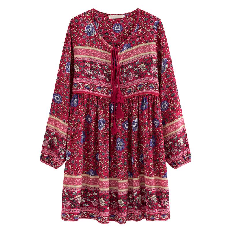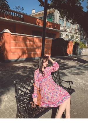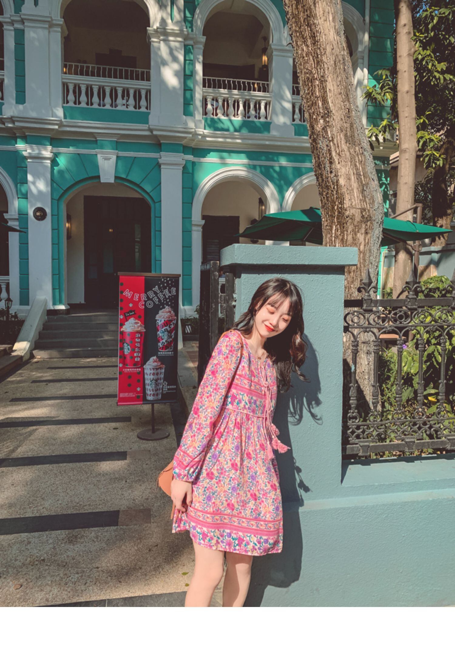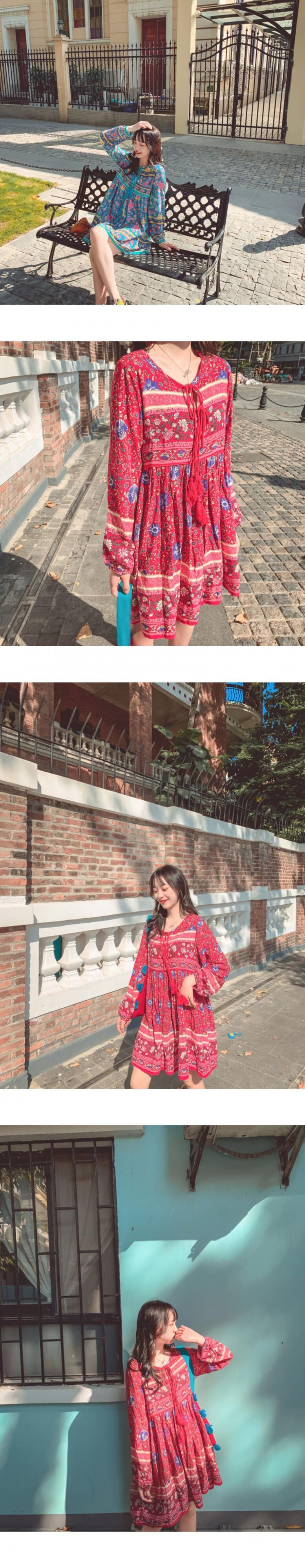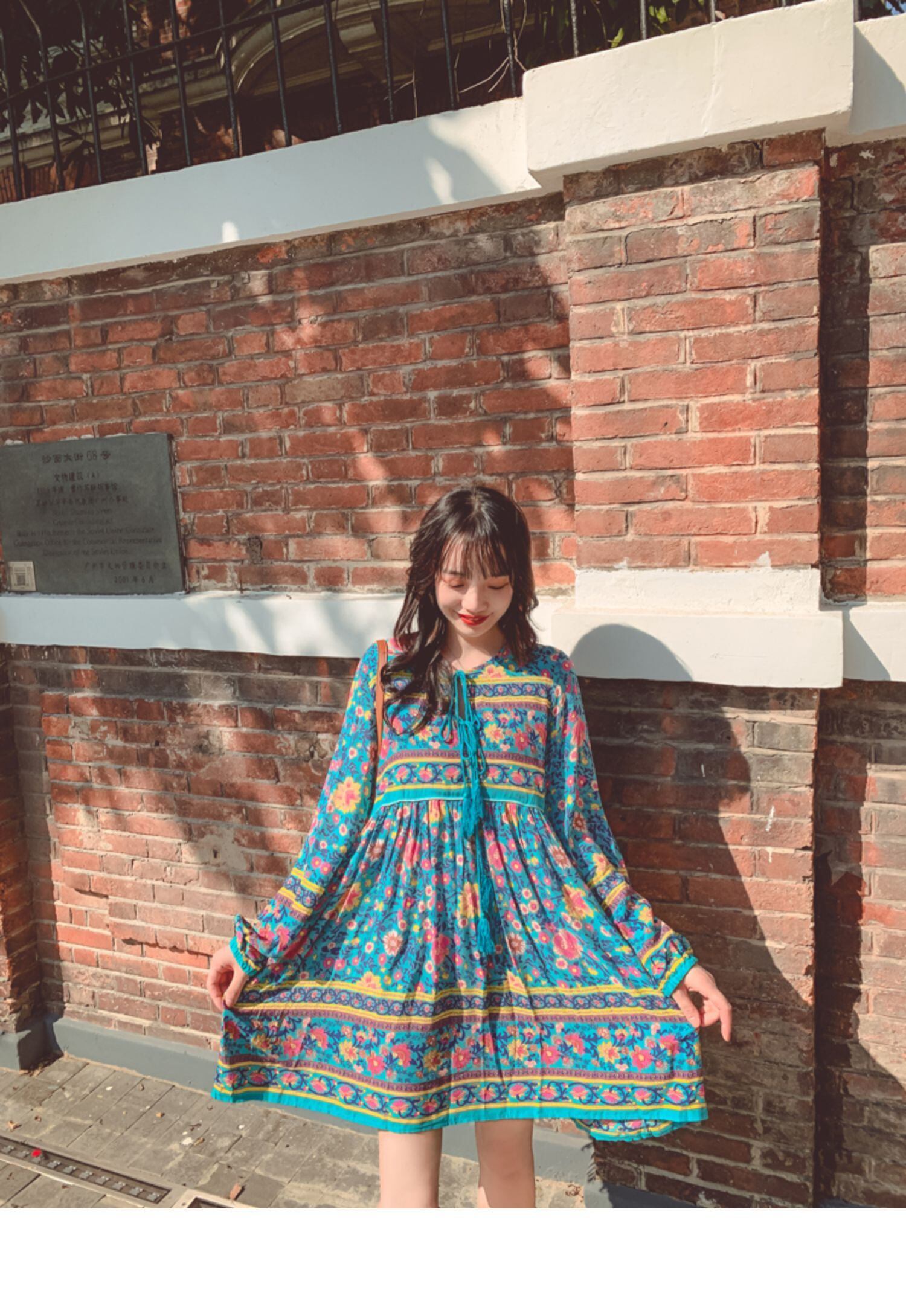 スタンダードショートスカート ルーズプリントドレス ロング レトロ ビーチ 延命家ファッション5759471