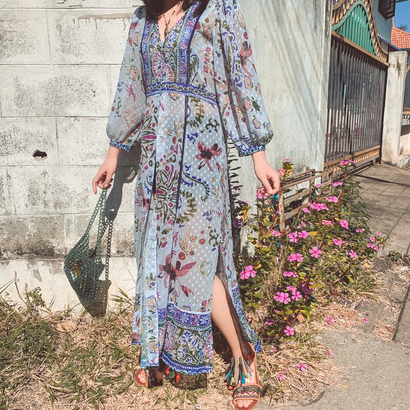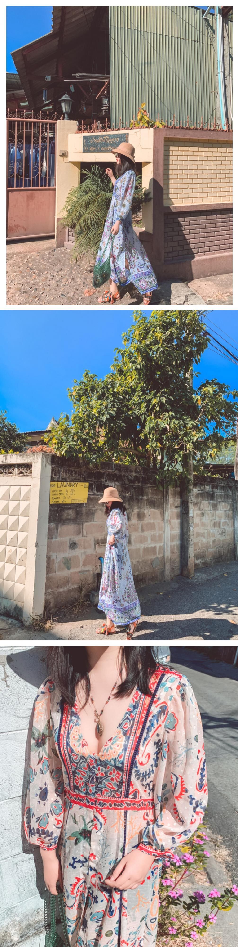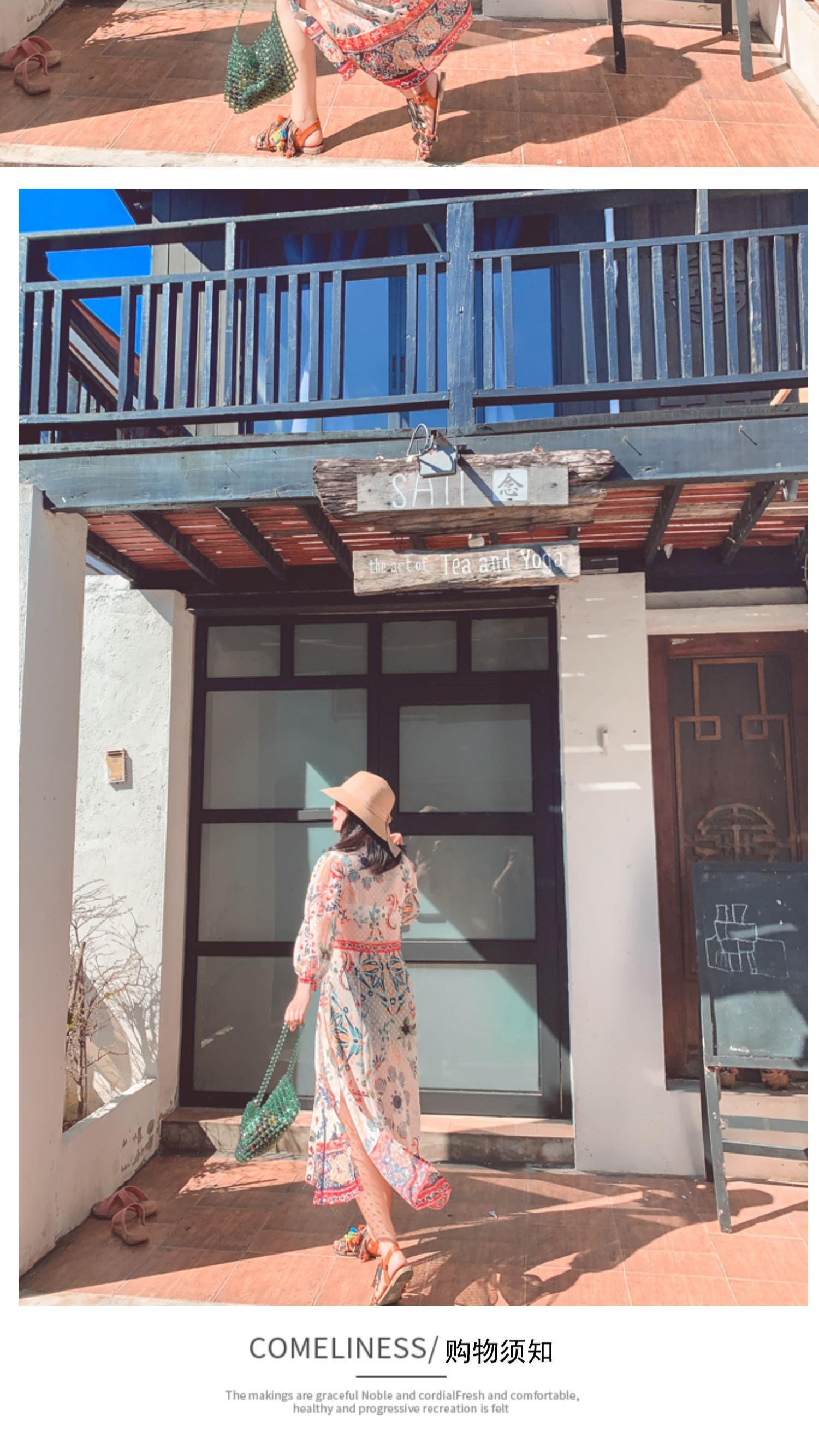 サマースカート ボヘミアンスタンダードロングエスニックプリント柄ドレス レトロ 夏物 ビーチ 延命家ファッション3529318