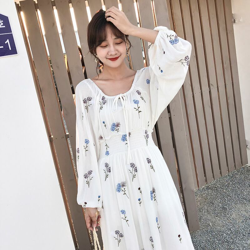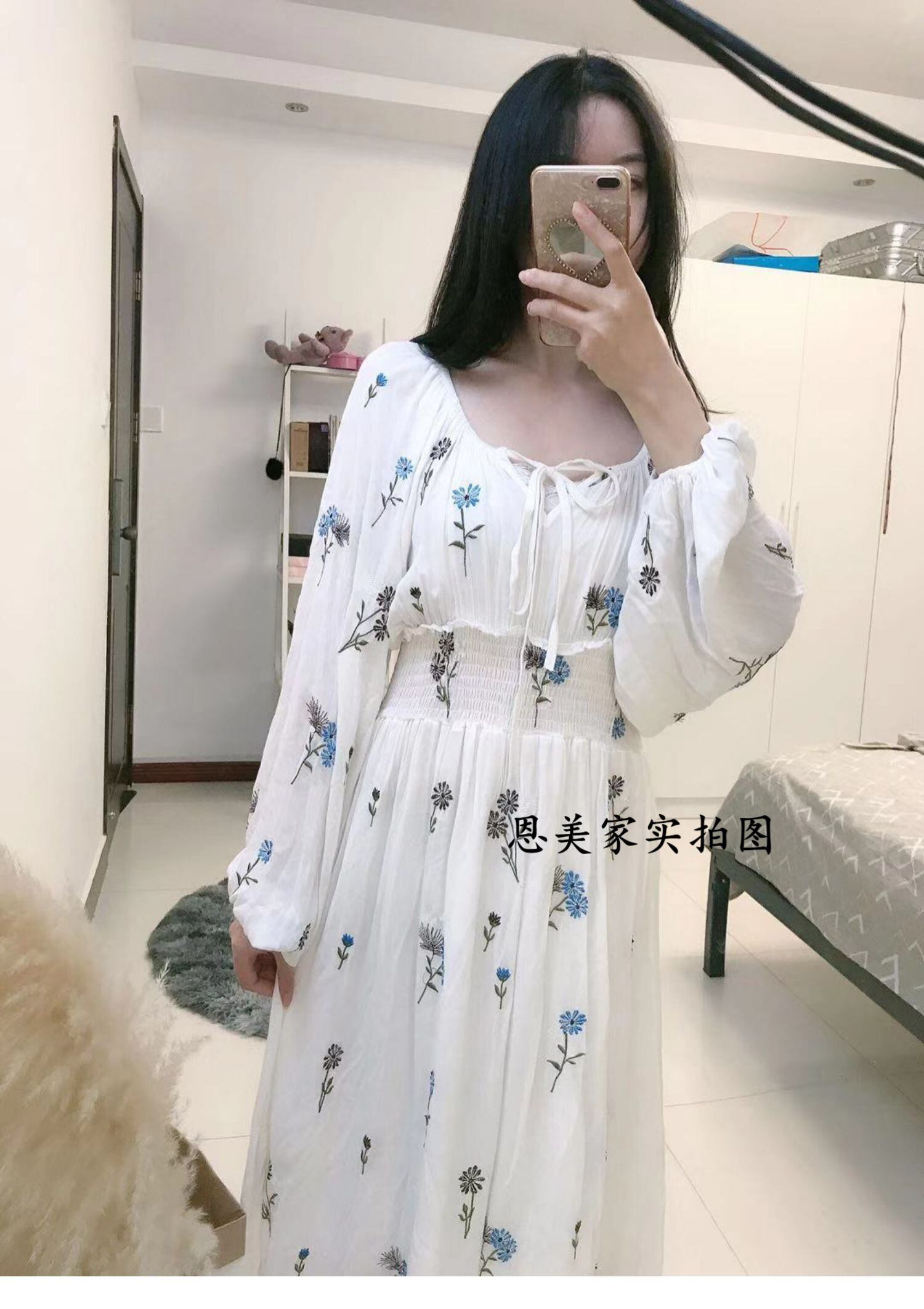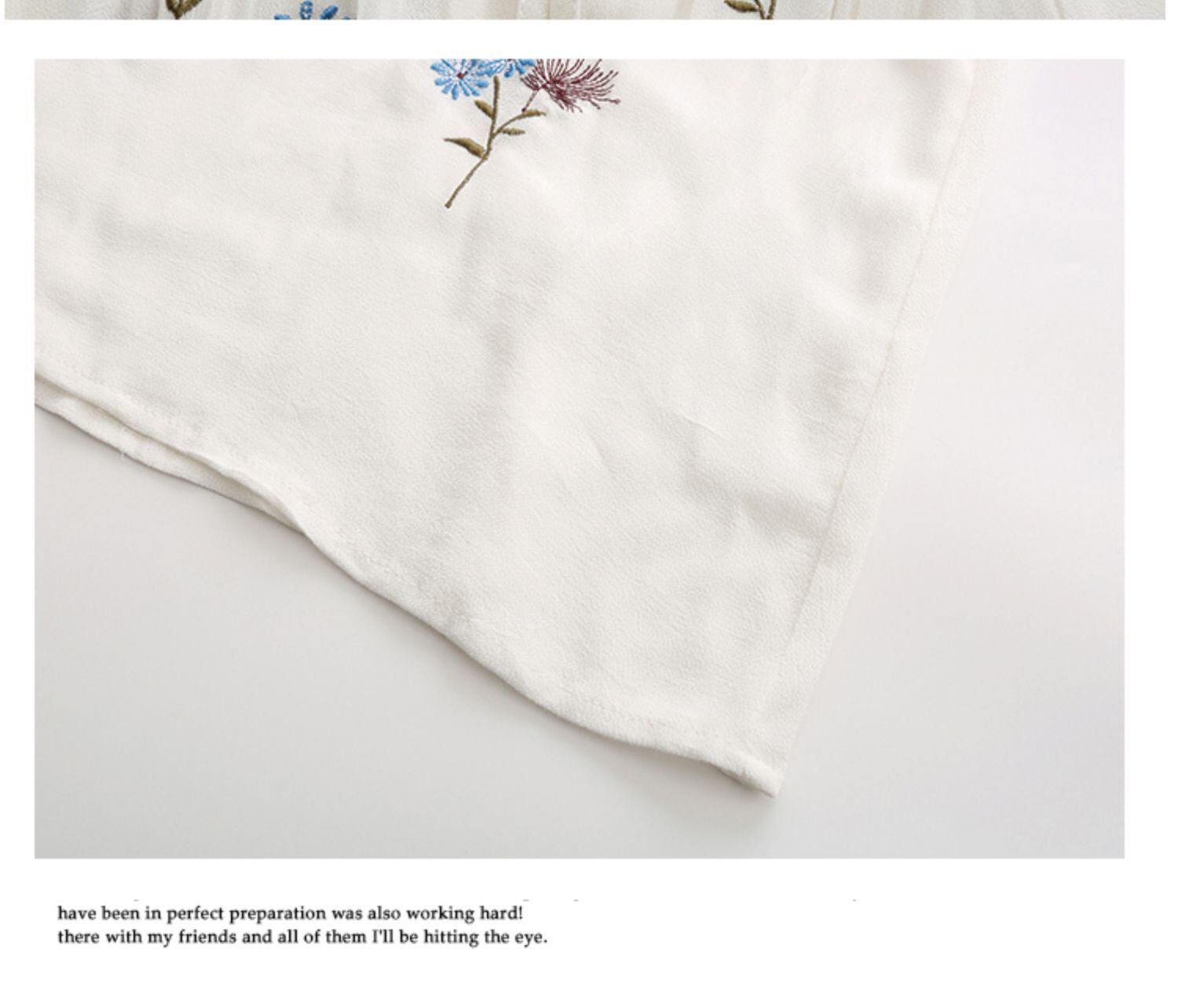 スタンダードホワイトロングスカート 刺繍ウェストボヘミアンエスニックスタイルドレス コットン レトロ 延命家ファッション7096268