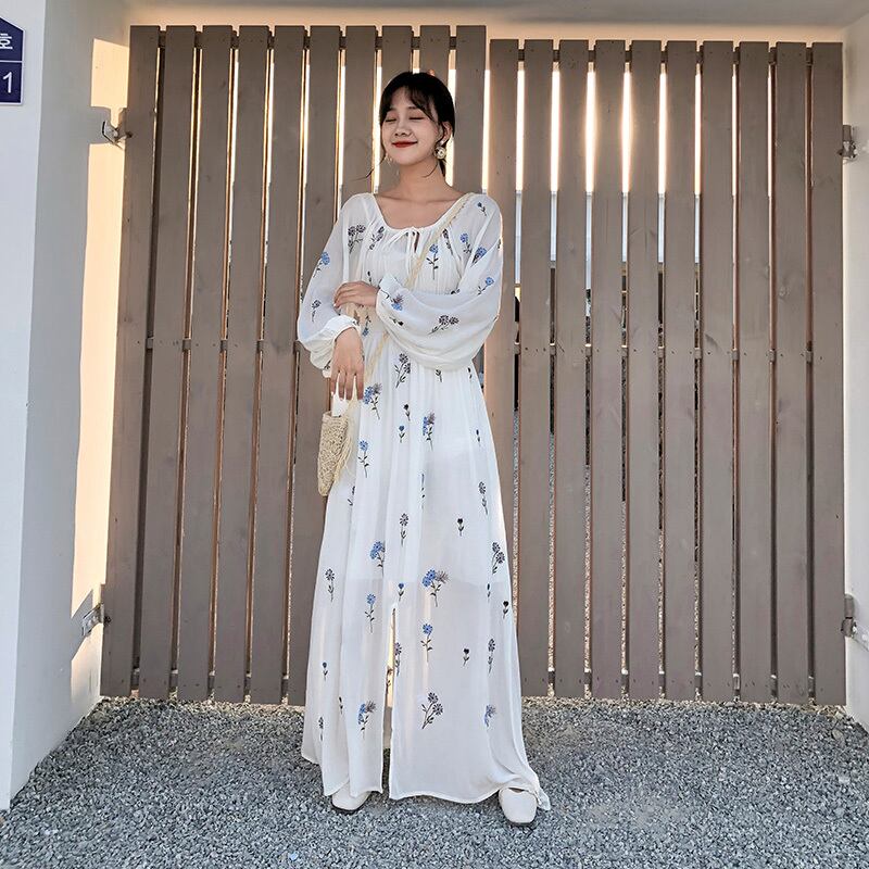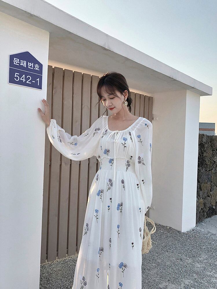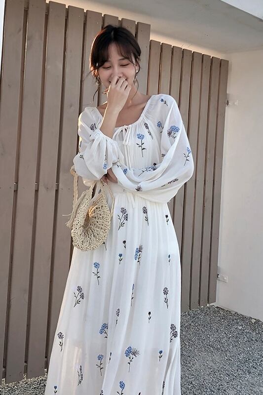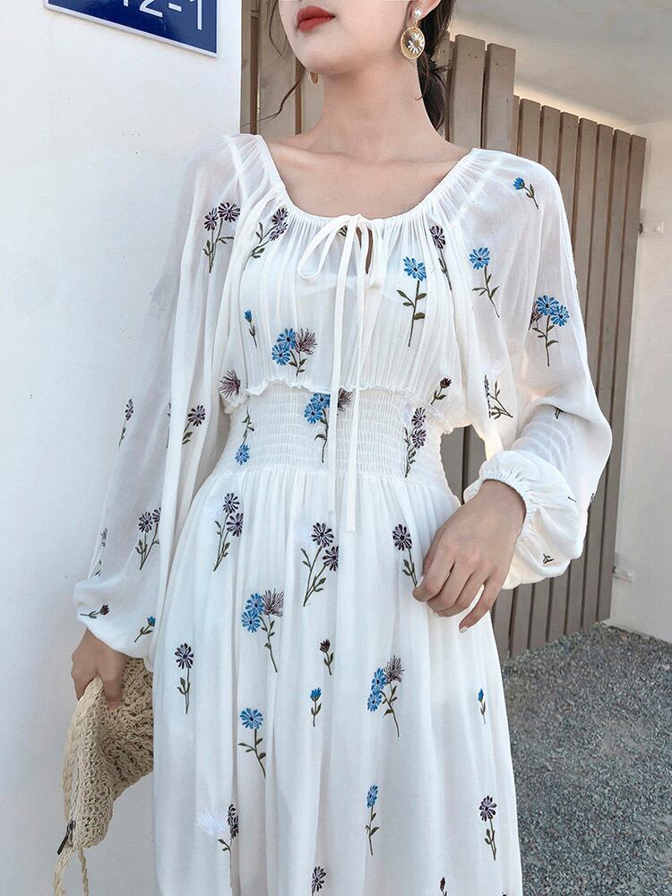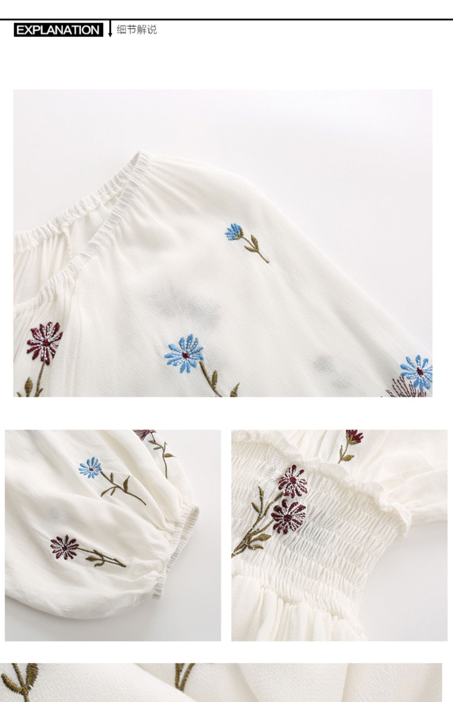 スタンダードホワイトロングスカート 刺繍ウェストボヘミアンエスニックスタイルドレス コットン レトロ 延命家ファッション7096268