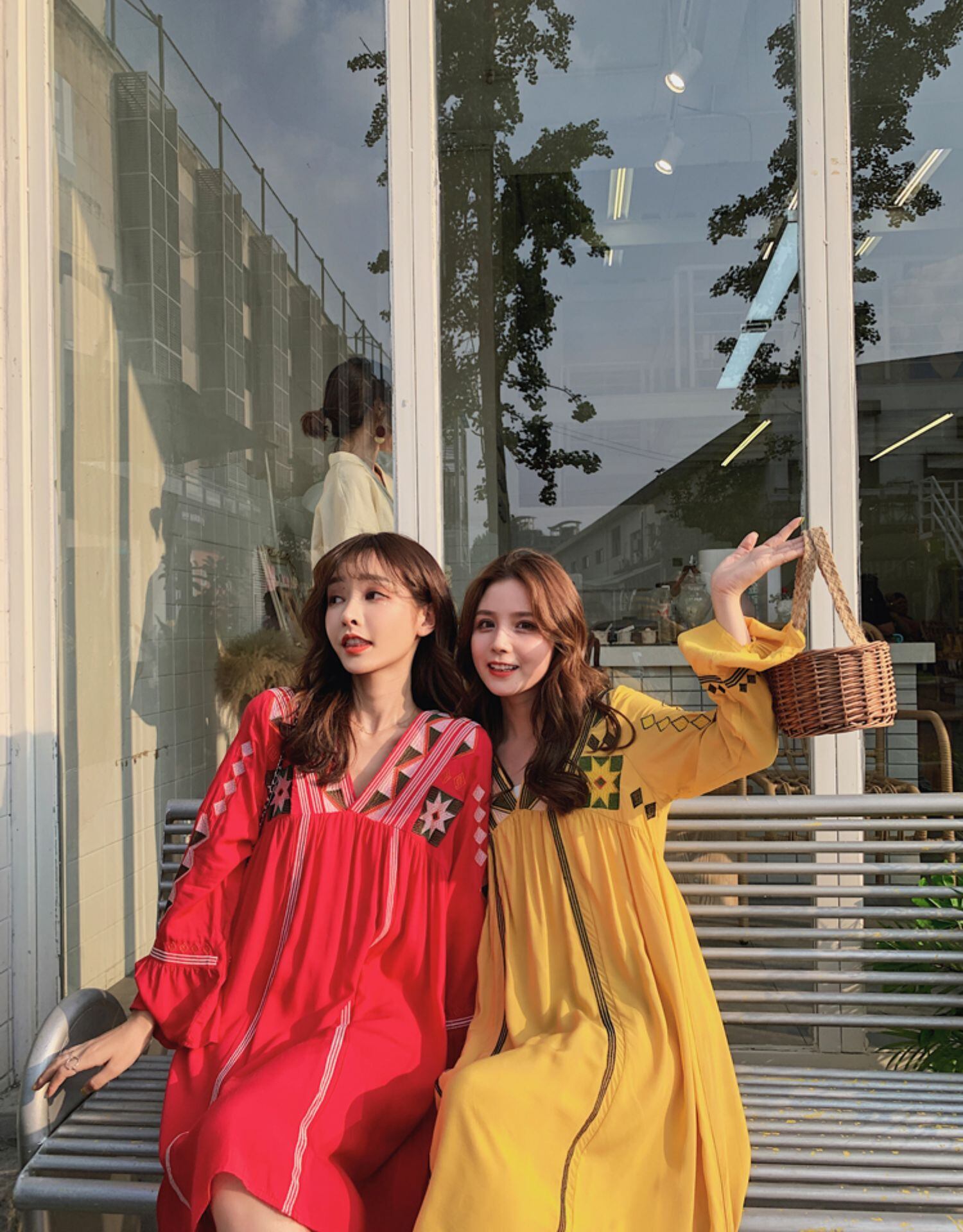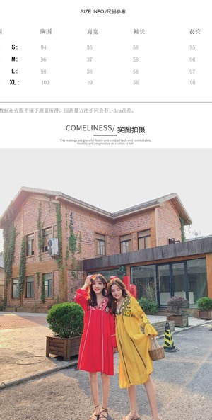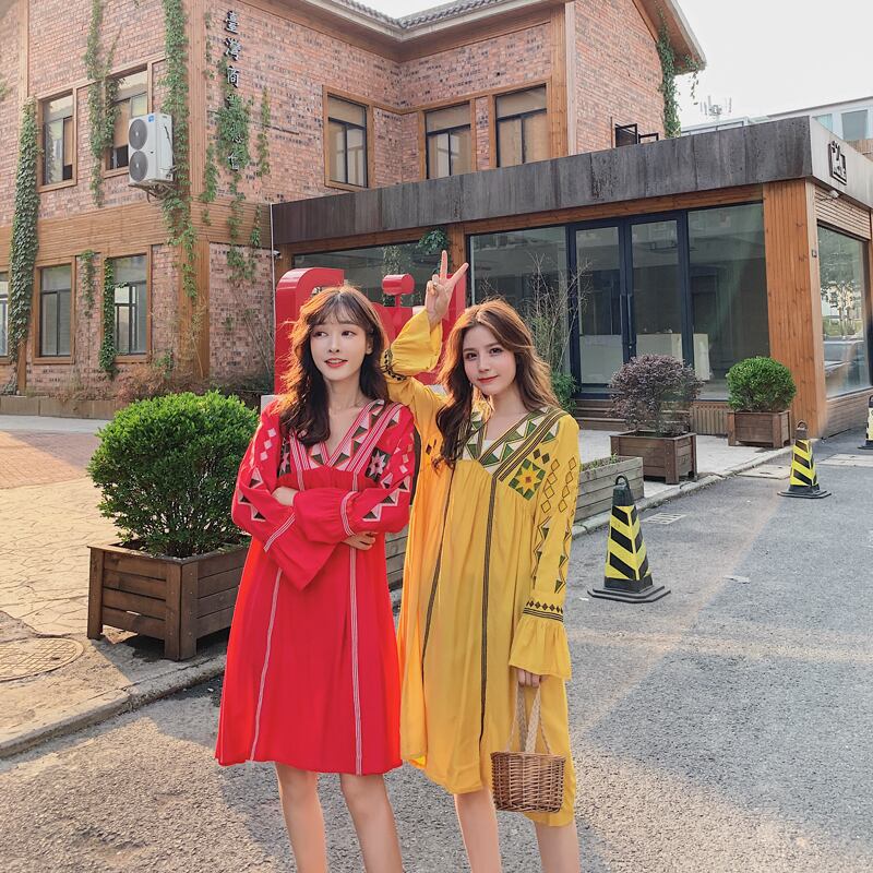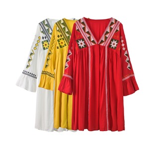 スタンダードショートスカート エスニック刺繍ルーズドレス レッドサマー レトロ 夏物 延命家ファッション5525630