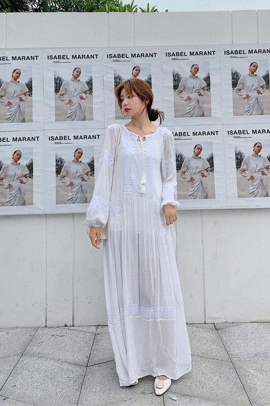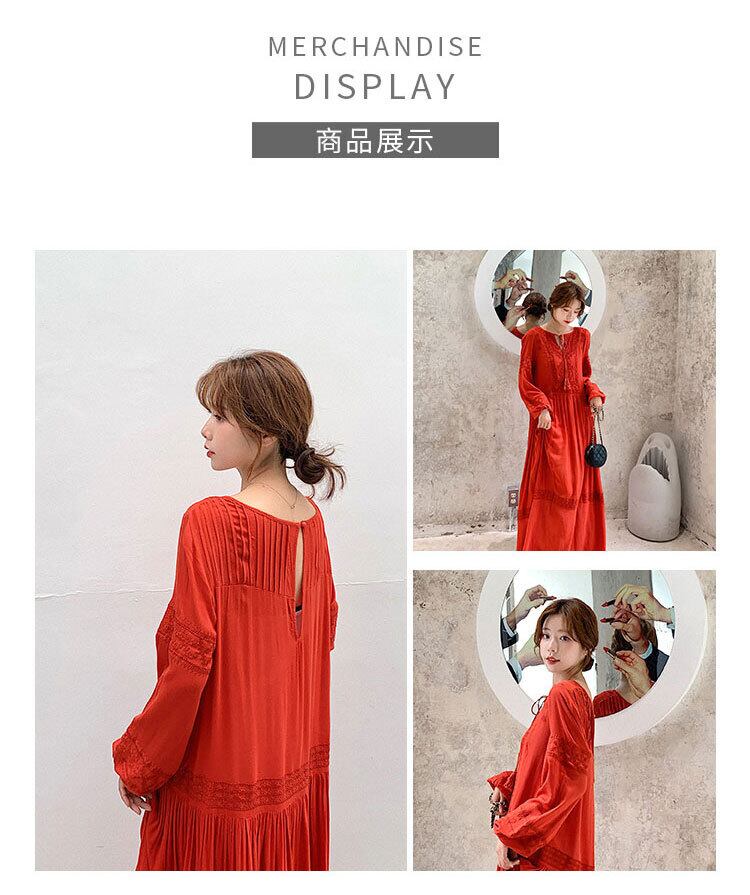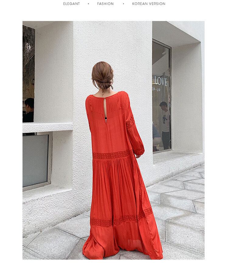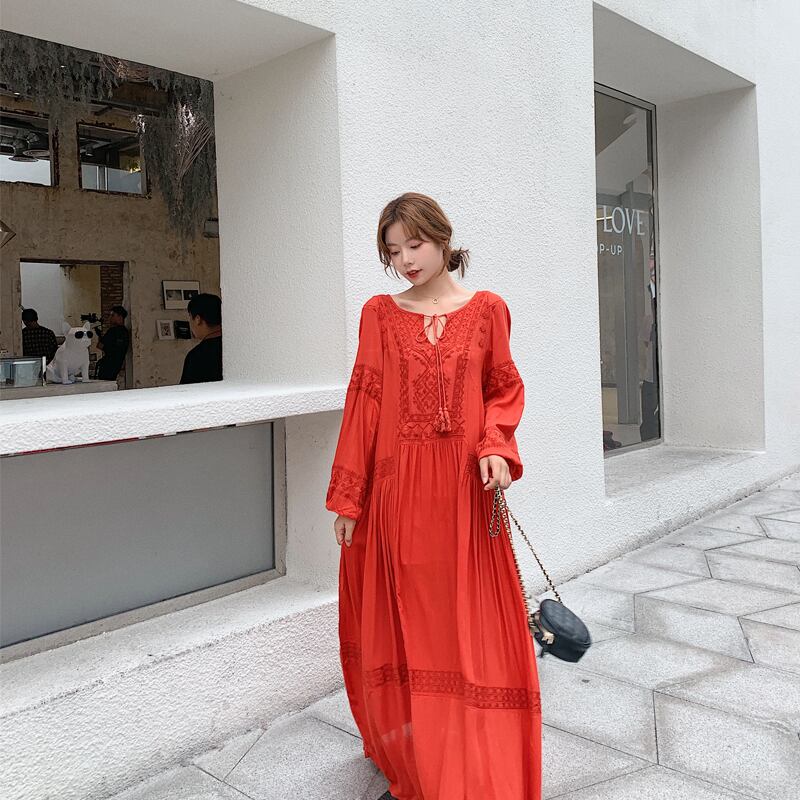 エスニックレッドロングスカート 刺繍スタンダードドレス レトロ ビーチ 延命家ファッション9820861