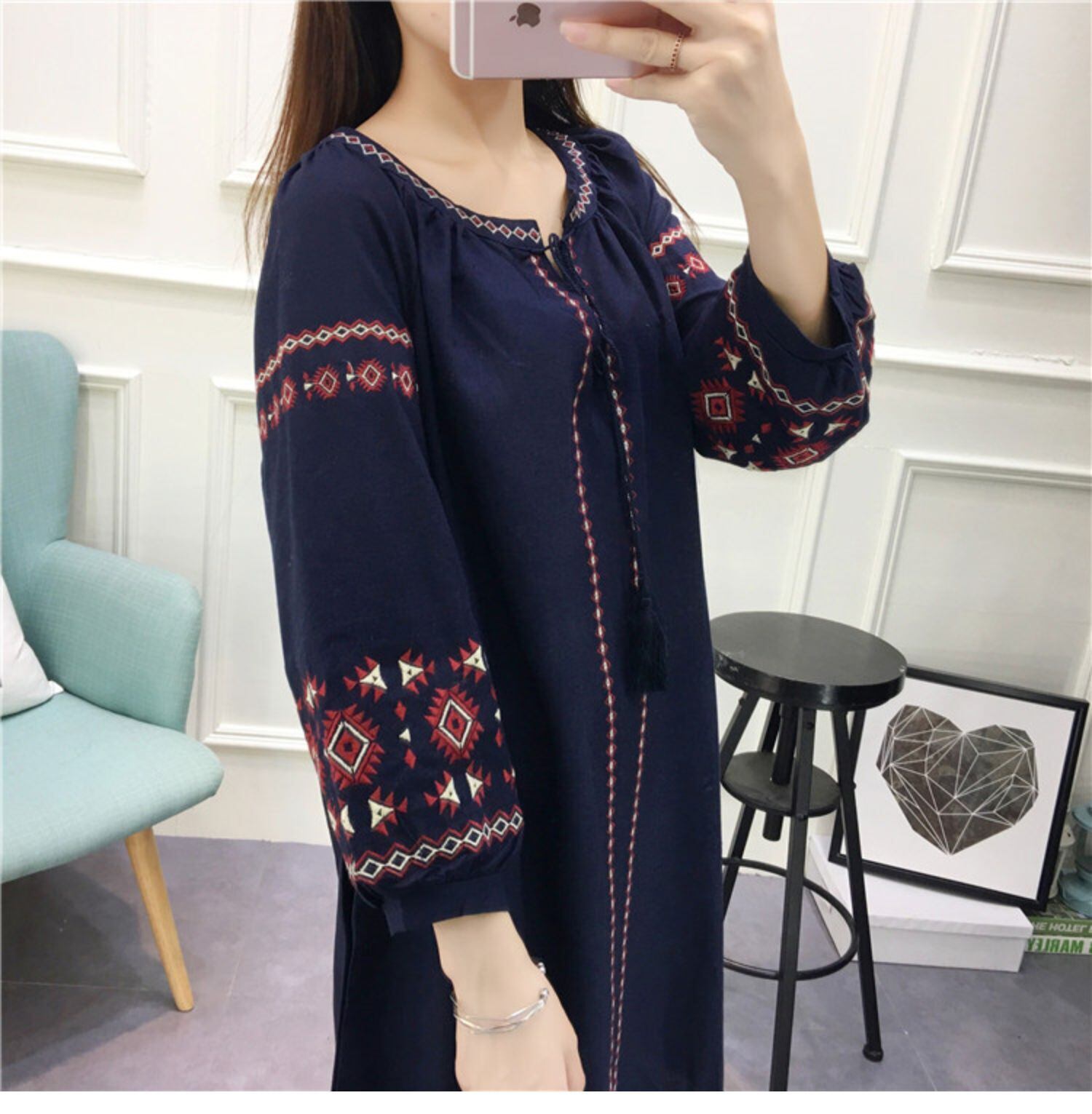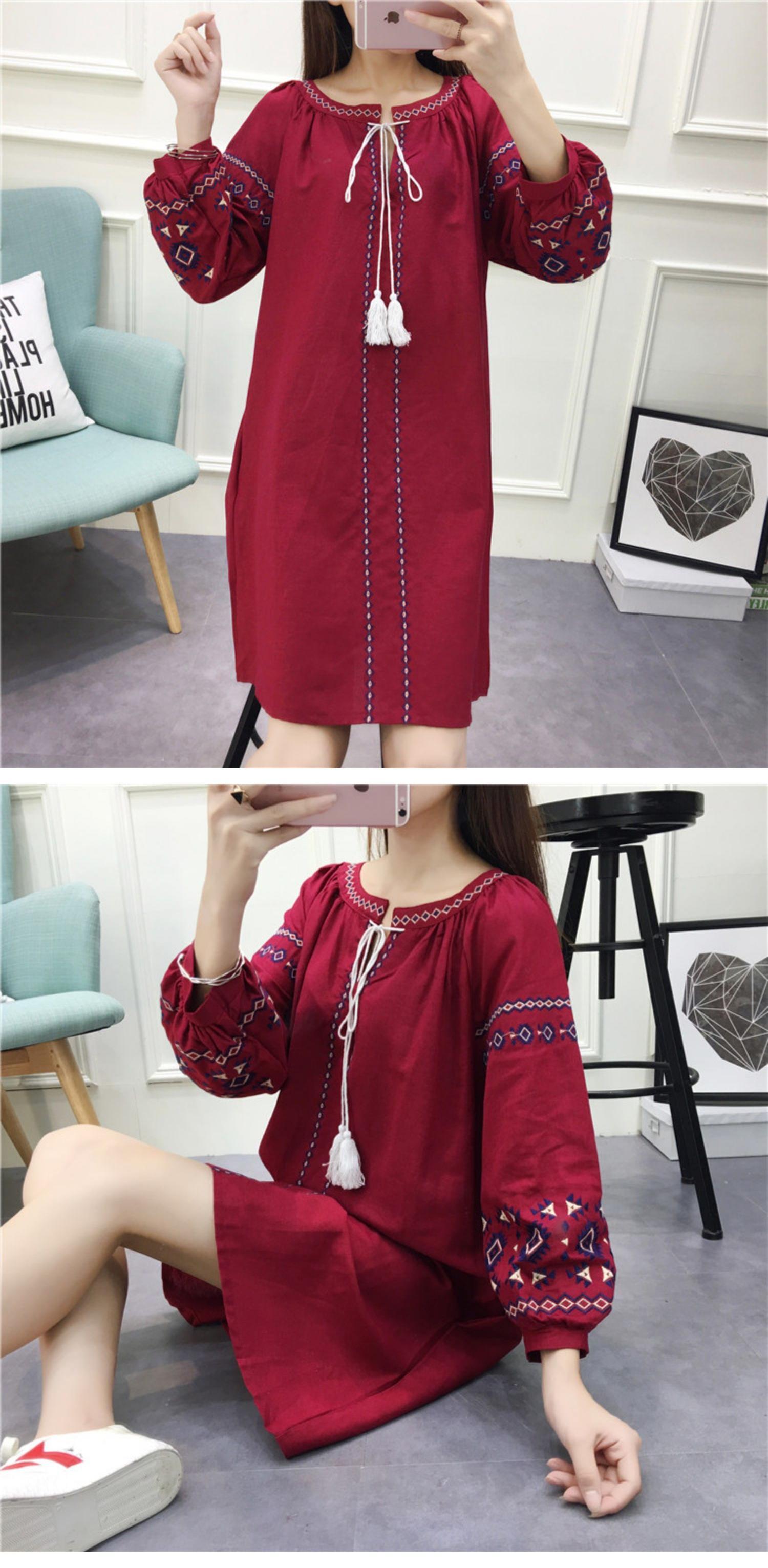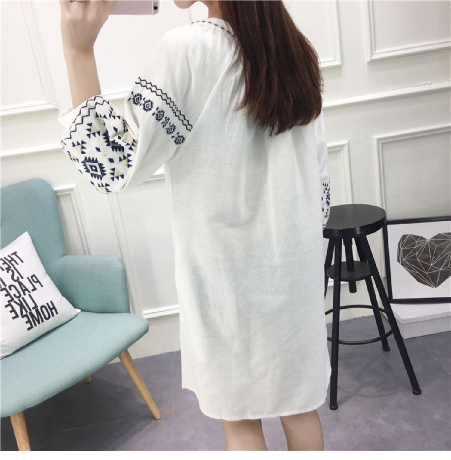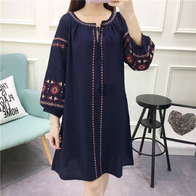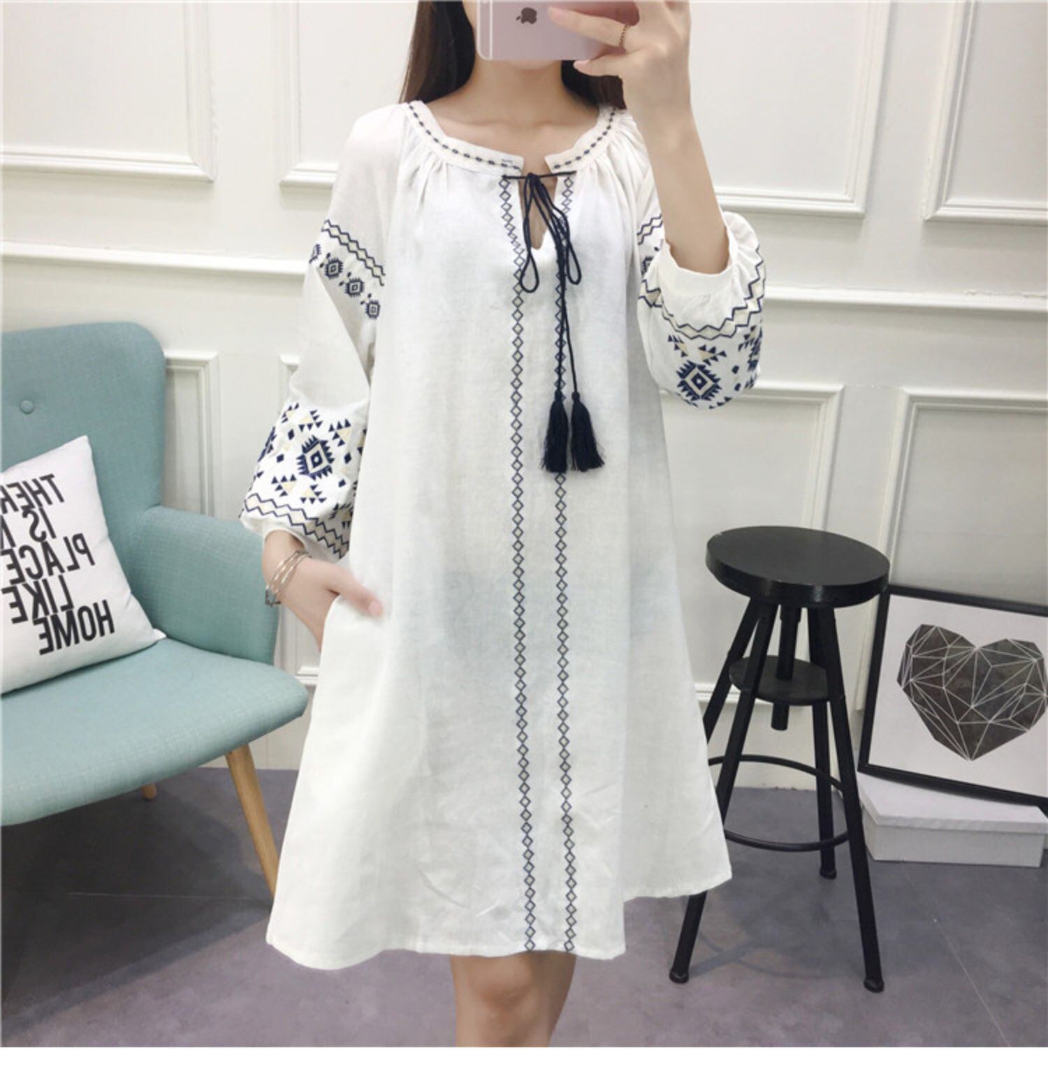 スプリングサマールーズカジュアル刺繍スリーブドレス コットン 春物 夏物 延命家ファッション5249853