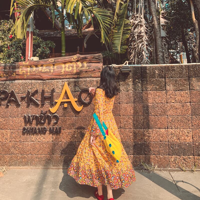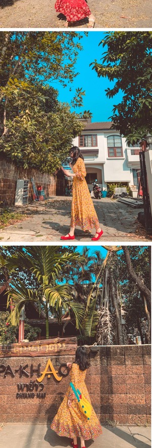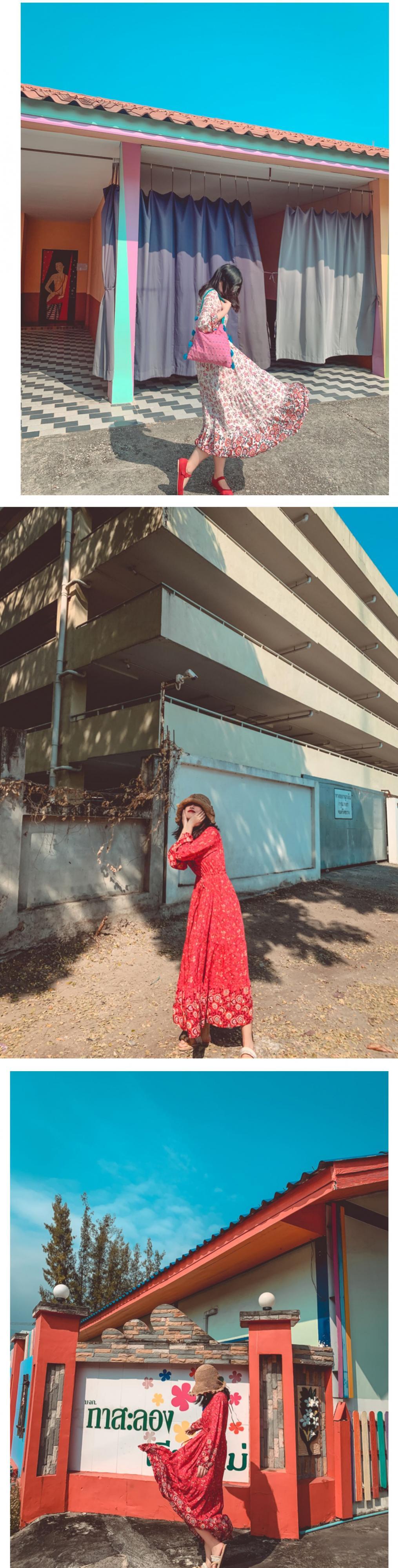 タイ旅行po潮ブランドエスニックスタイルドレスボヘミアレトロ花柄長袖腰大きなスイング休日ロングスカート 延命家ファッション7740705