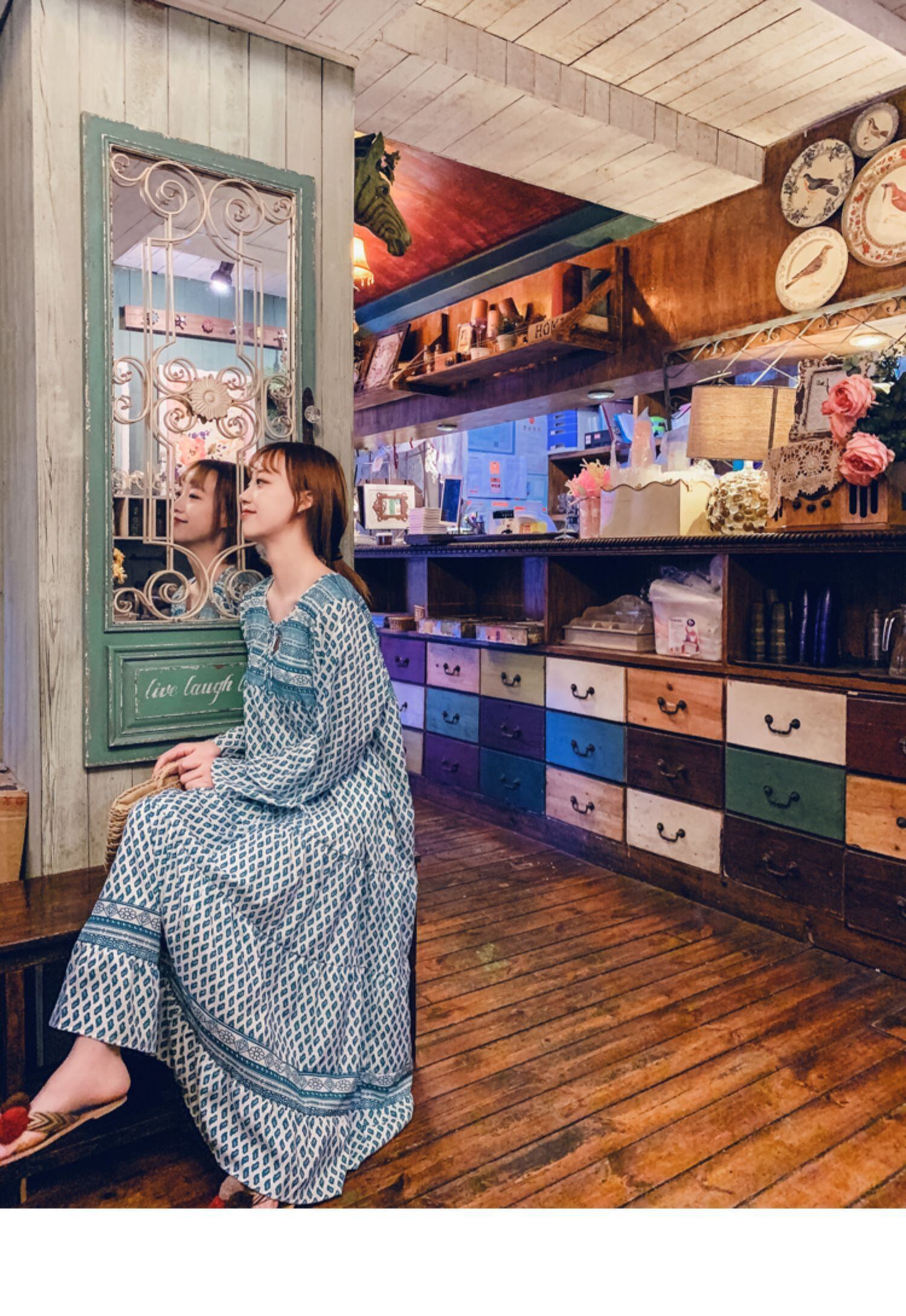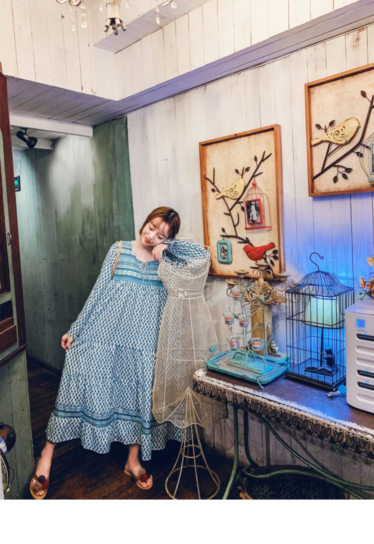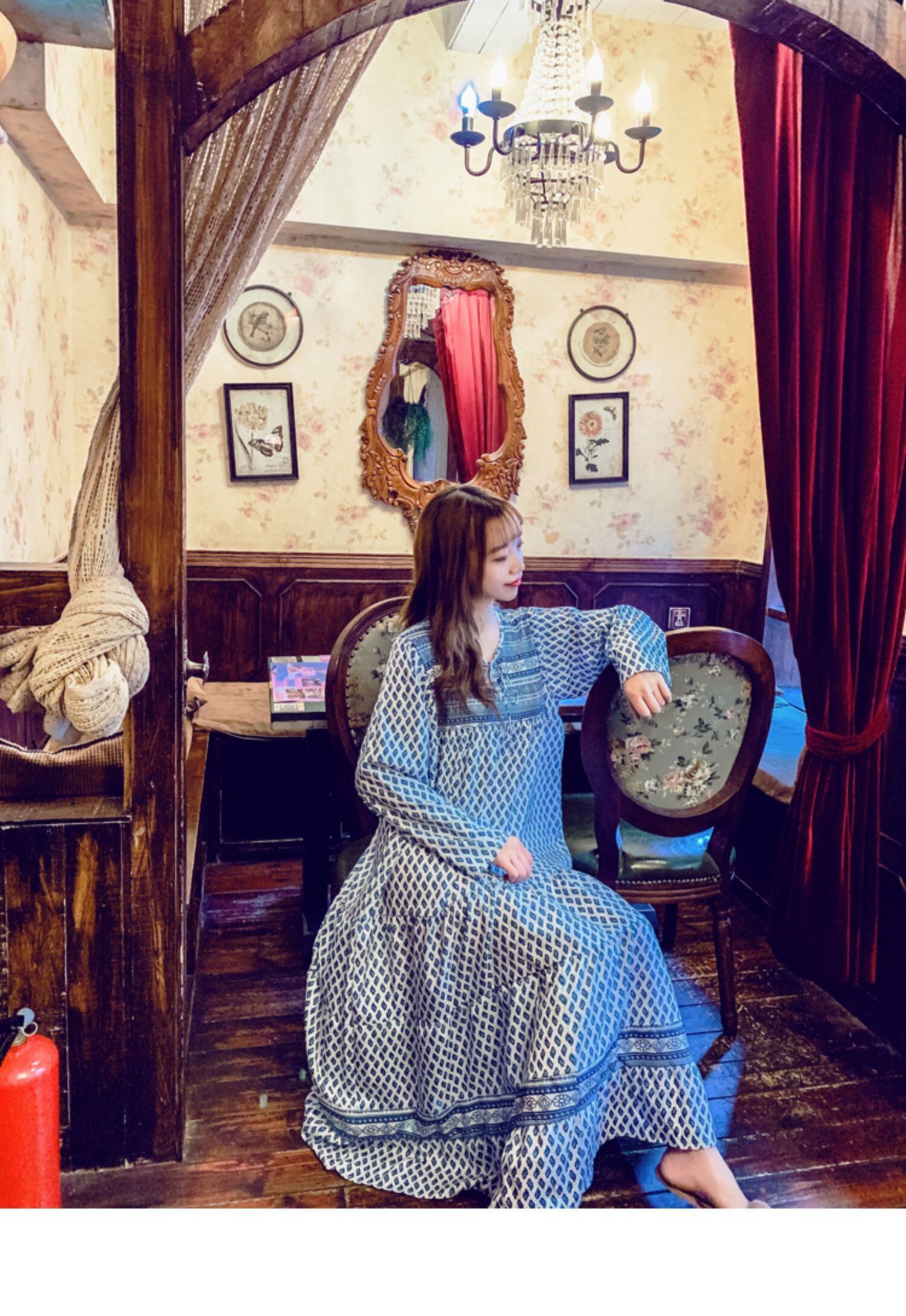 タイタイドブランドボヘミアンバケーションレトロロングスカートスタイルレースアッププリント長袖ロング丈ゆったり大きいサイズドレス 延命家ファッション0659304