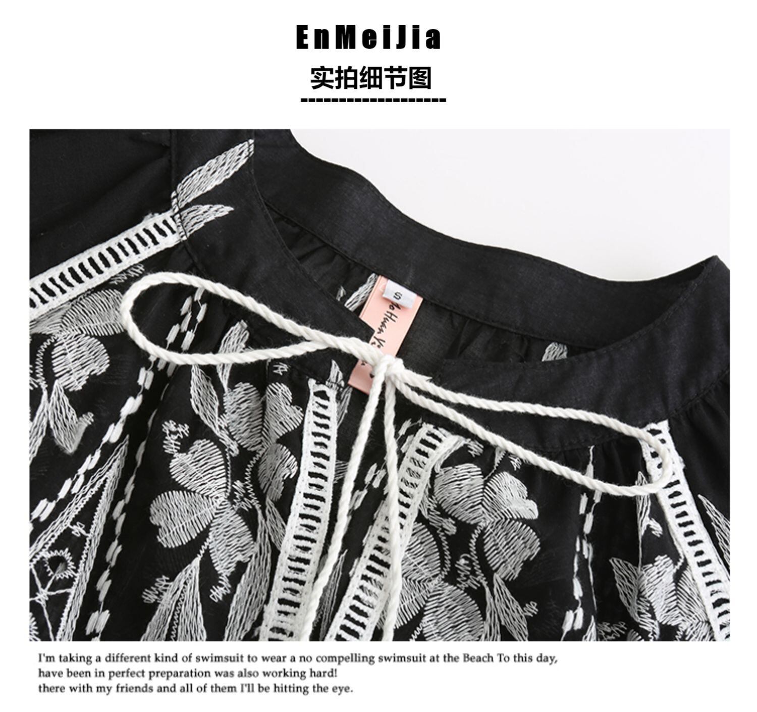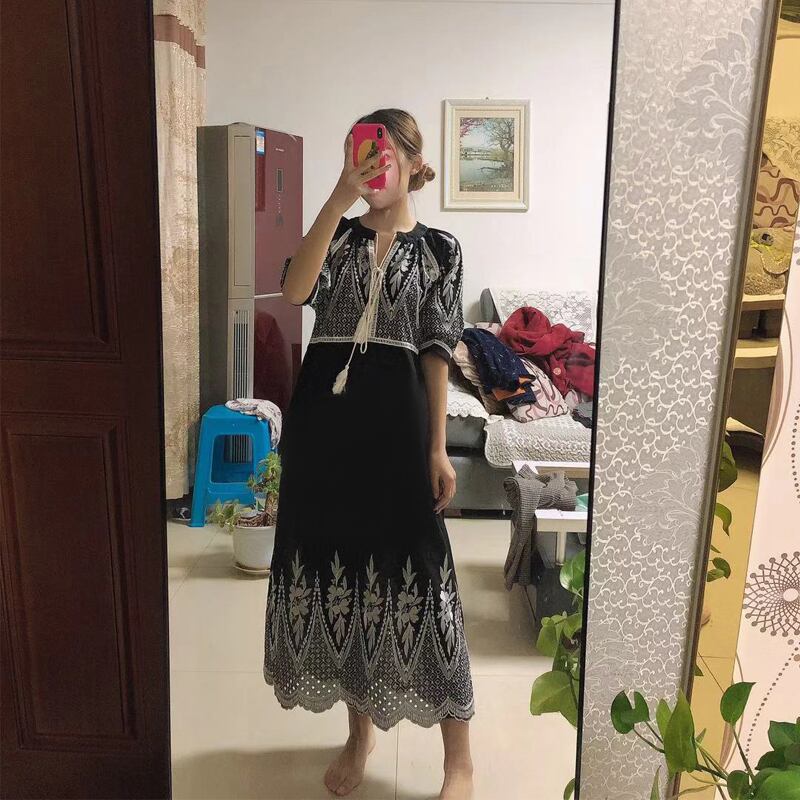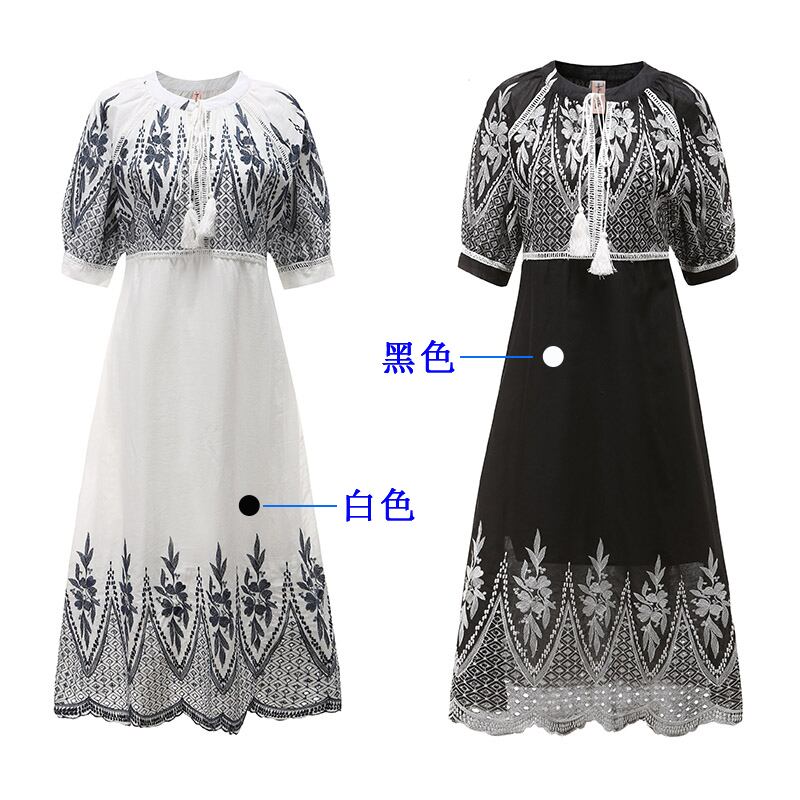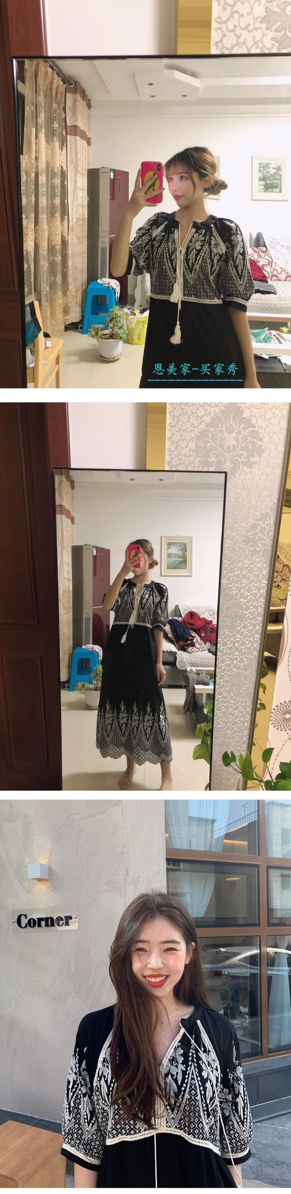 スタンダードドレス ルーズエスニックスタイル レッド レトロ 刺繍 ビーチ 延命家ファッション8099916