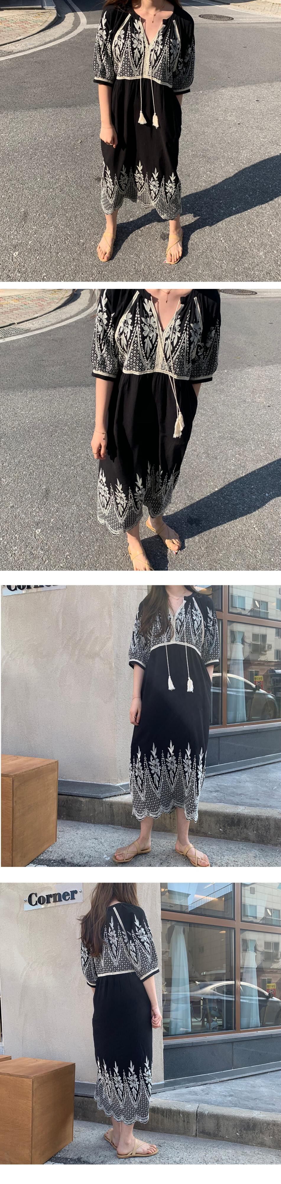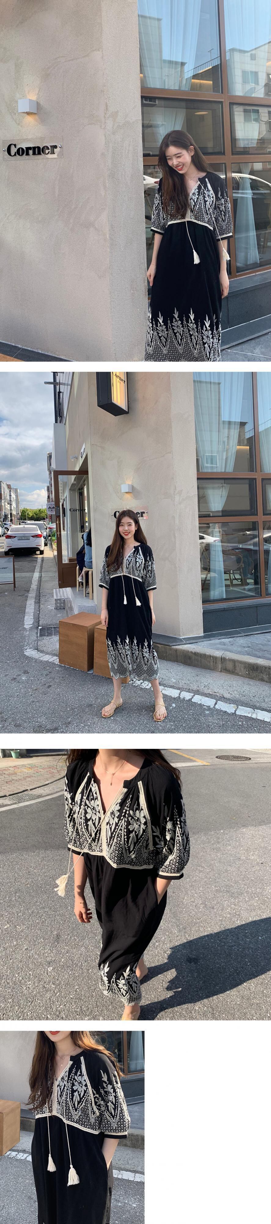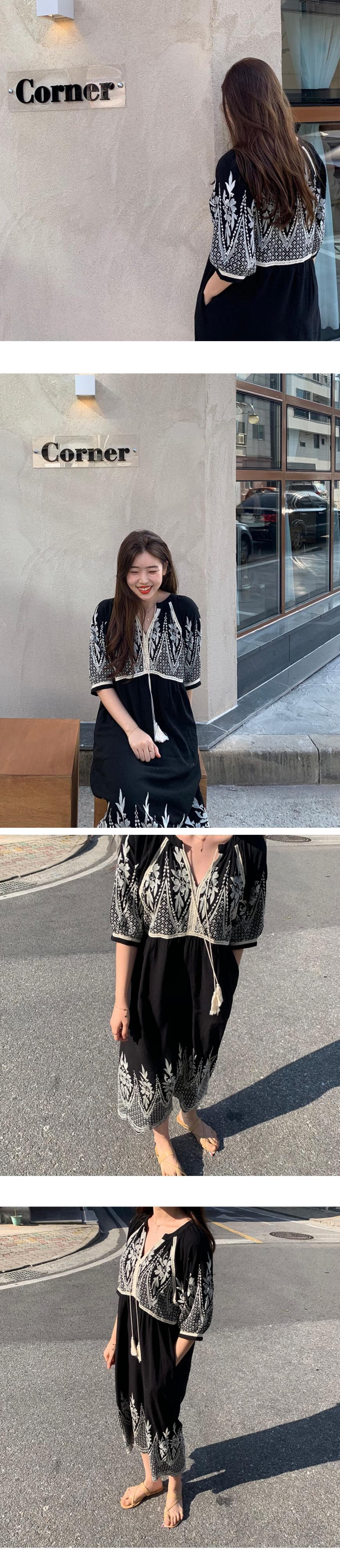 スタンダードドレス ルーズエスニックスタイル レッド レトロ 刺繍 ビーチ 延命家ファッション8099916