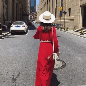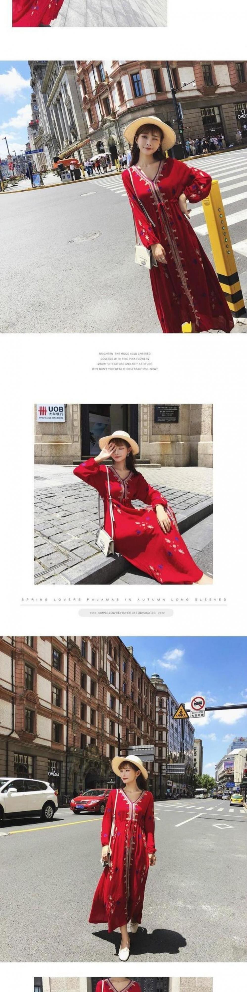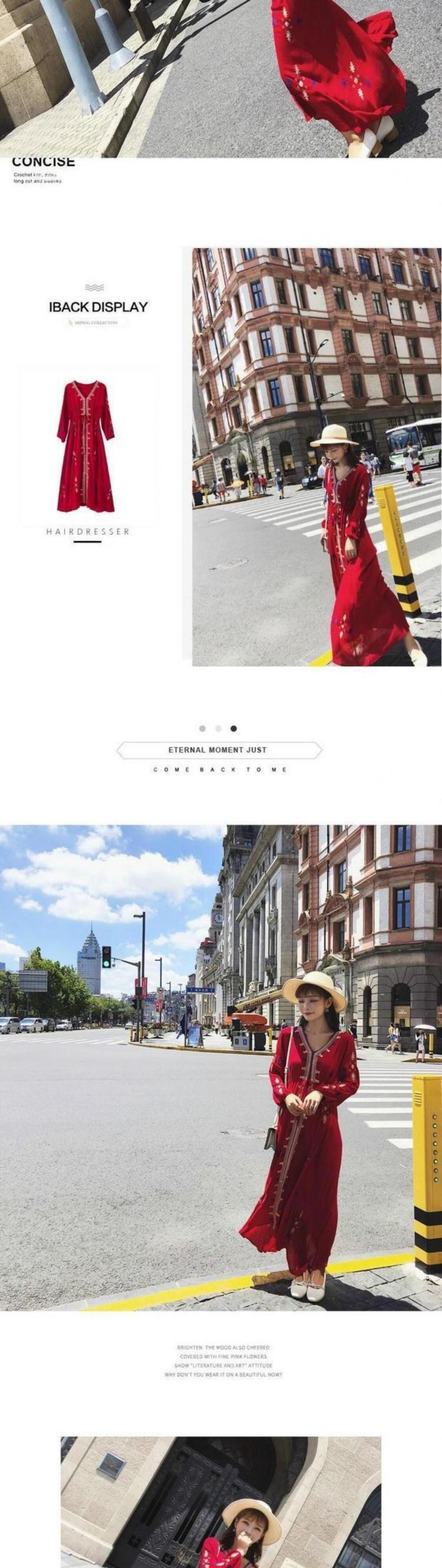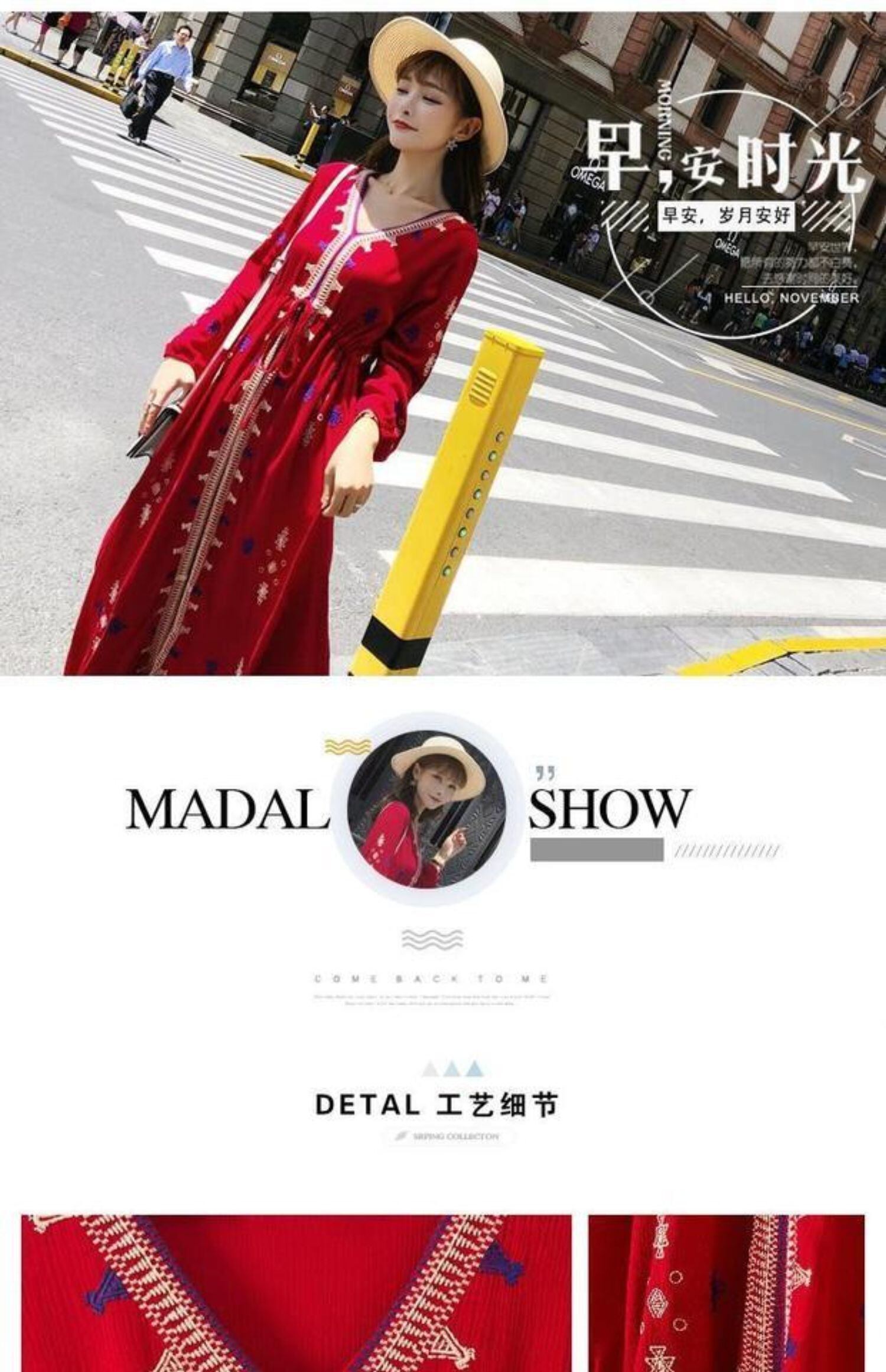 エスニックスタイルスタンダード刺繍ドレス スプリングサマーボヘミアンロングスカート レトロ 春物 夏物 ビーチ 延命家ファッション4143895