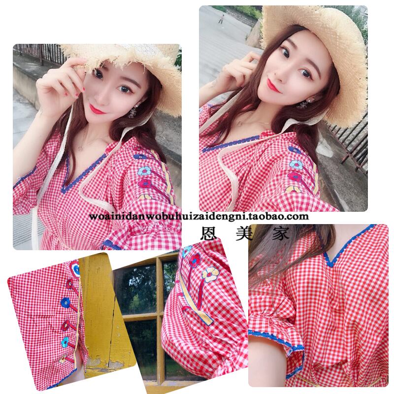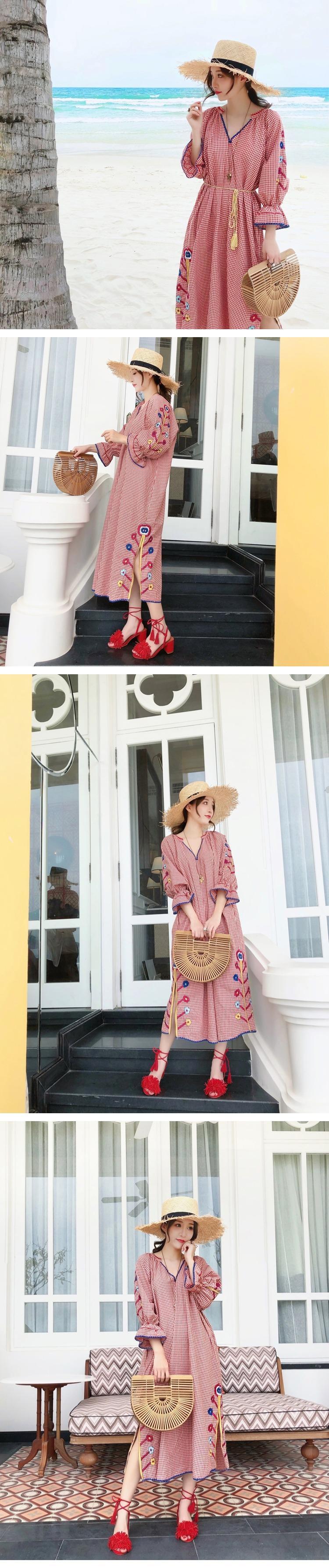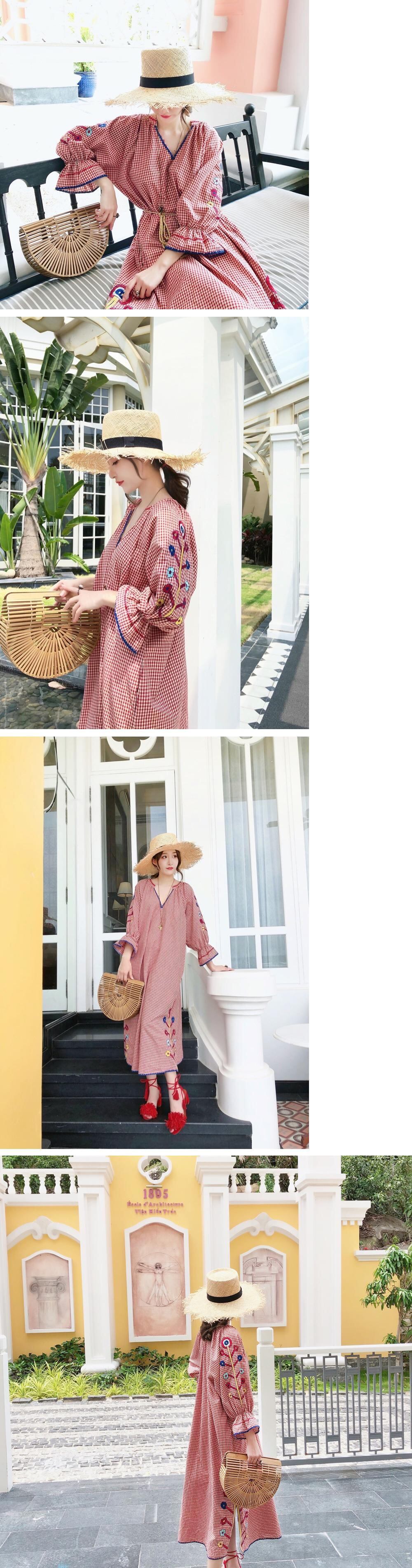 サマースタイルロングスカート 刺繍スタンダード格子柄ドレス レトロ 夏物 延命家ファッション6481145