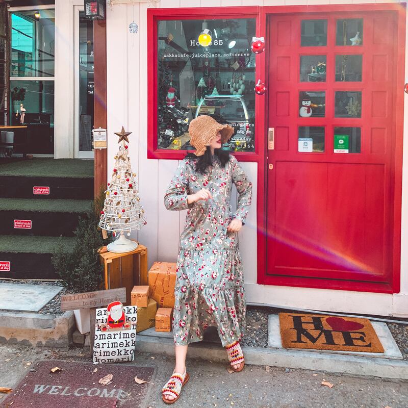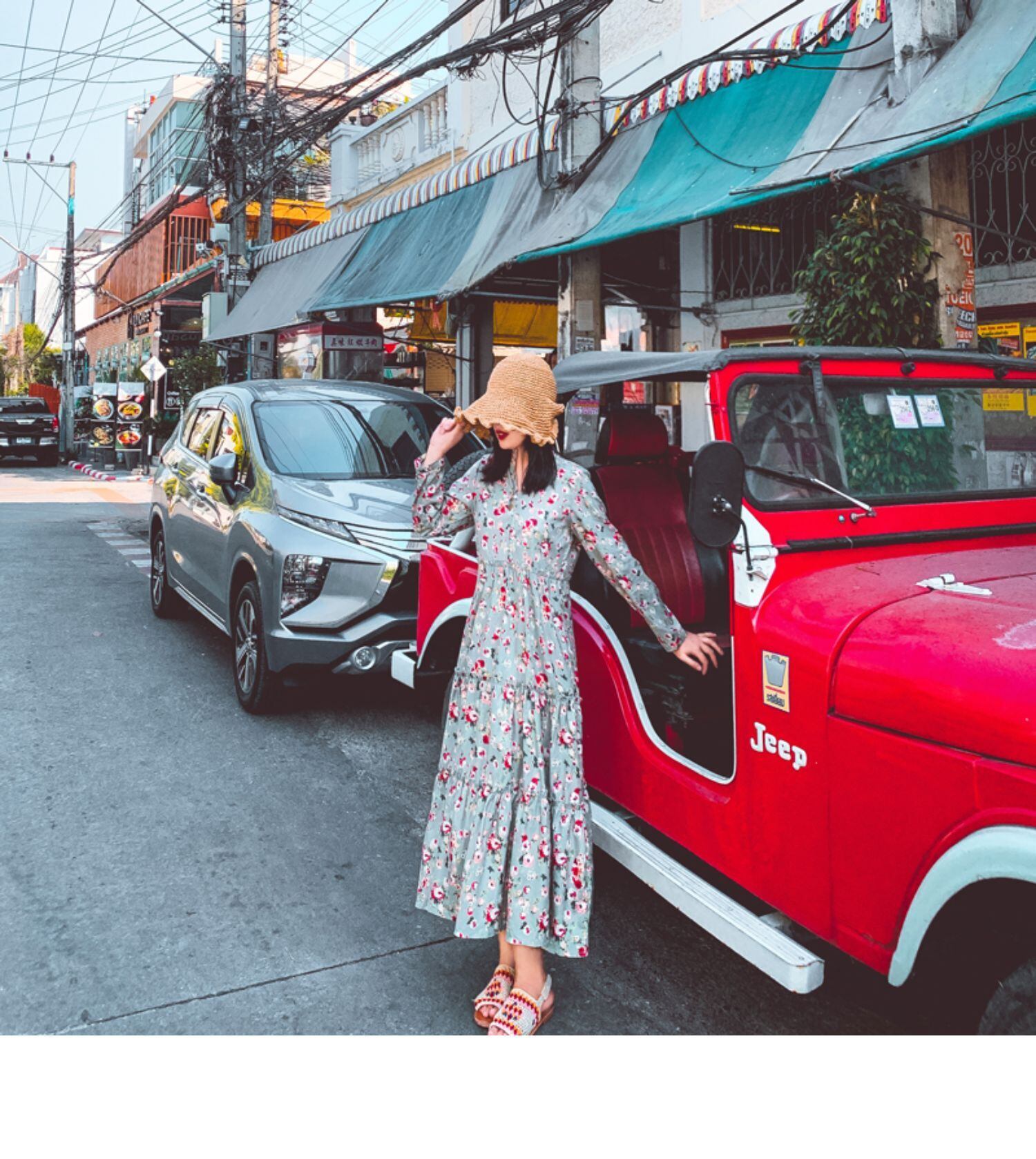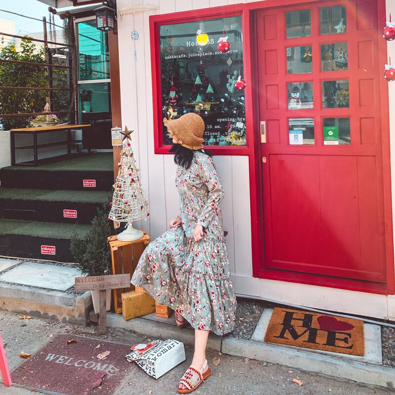 海辺のビーチスカート新しい穏やかな風の休日ドレス小花Vネック旅行スカート花大スイングドレス 延命家ファッション4394282