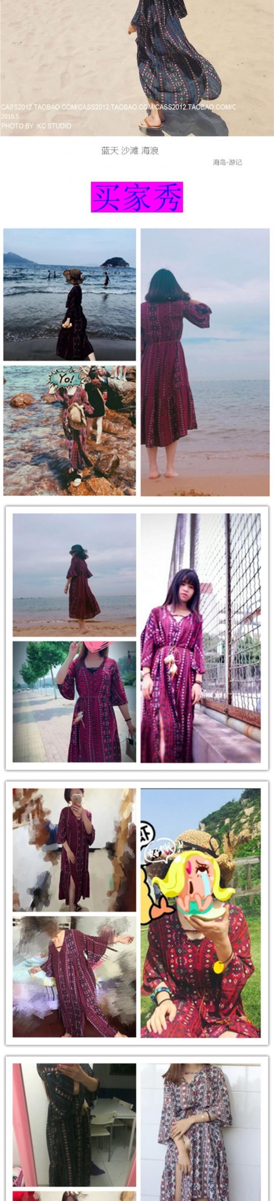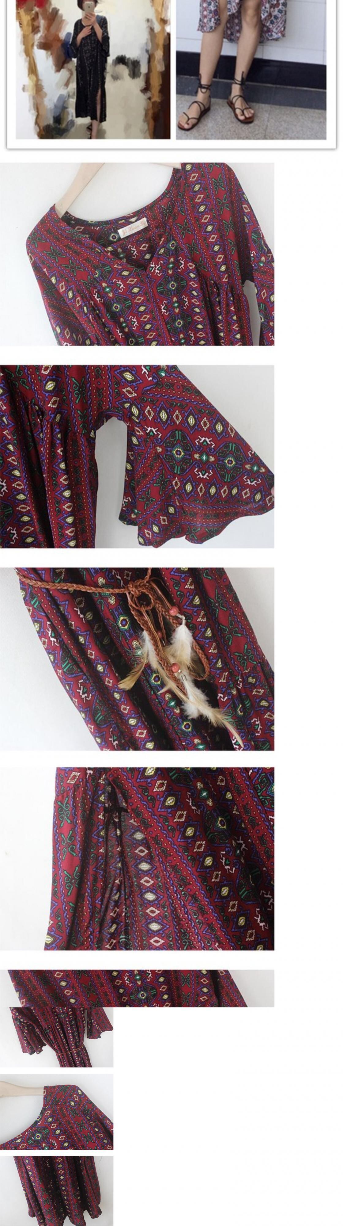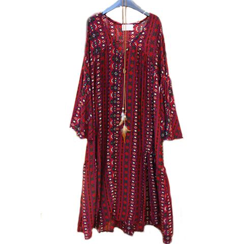 スカート ボヘミアンロングスリットエスニックプリントドレス レディース コットン ビーチ 延命家ファッション6410818