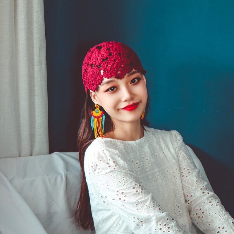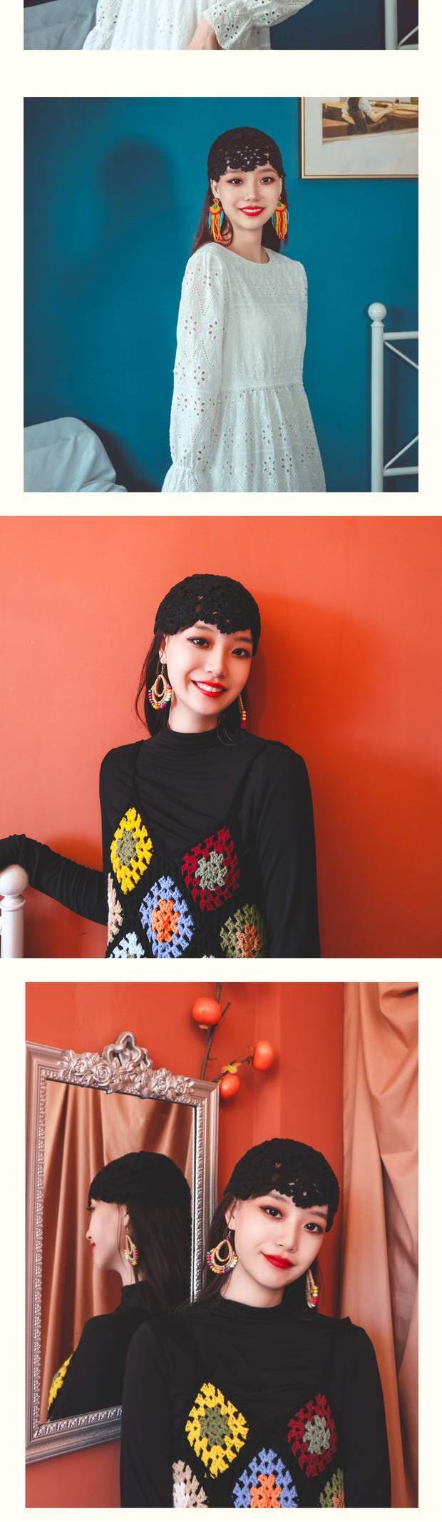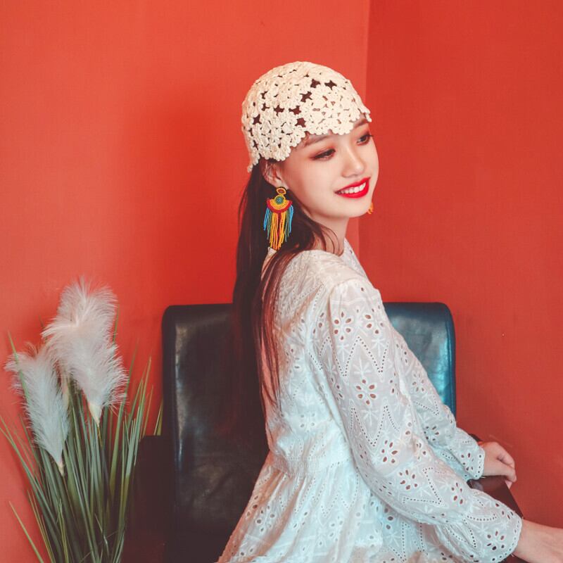 エンメイジア油絵少女お出かけ旅行レトロ包頭キャップ手作りかぎ針編み中空ニットウールハット 延命家ファッション9643869877
