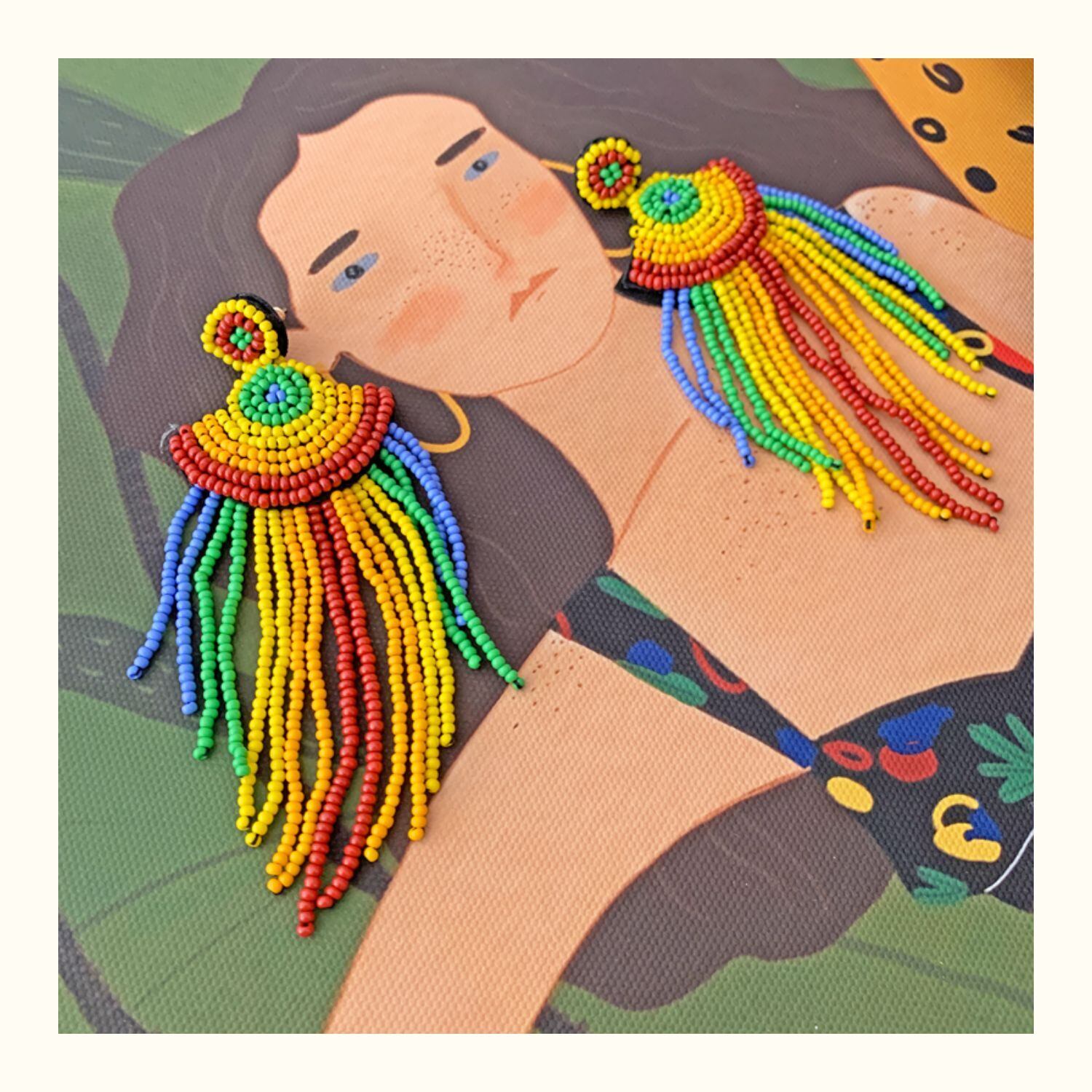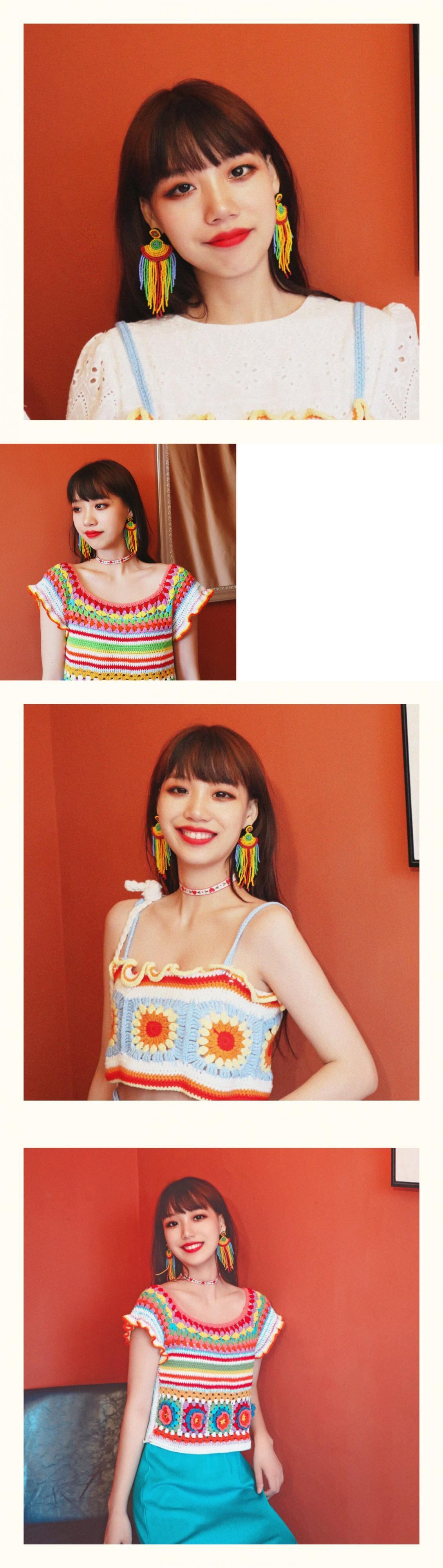 Enmeijia新製品レインボーエスニックスタイル手作りライスビーズ織り仕上げイヤリングボヘミアンレトロウェアイヤリング 延命家ファッション90879552917