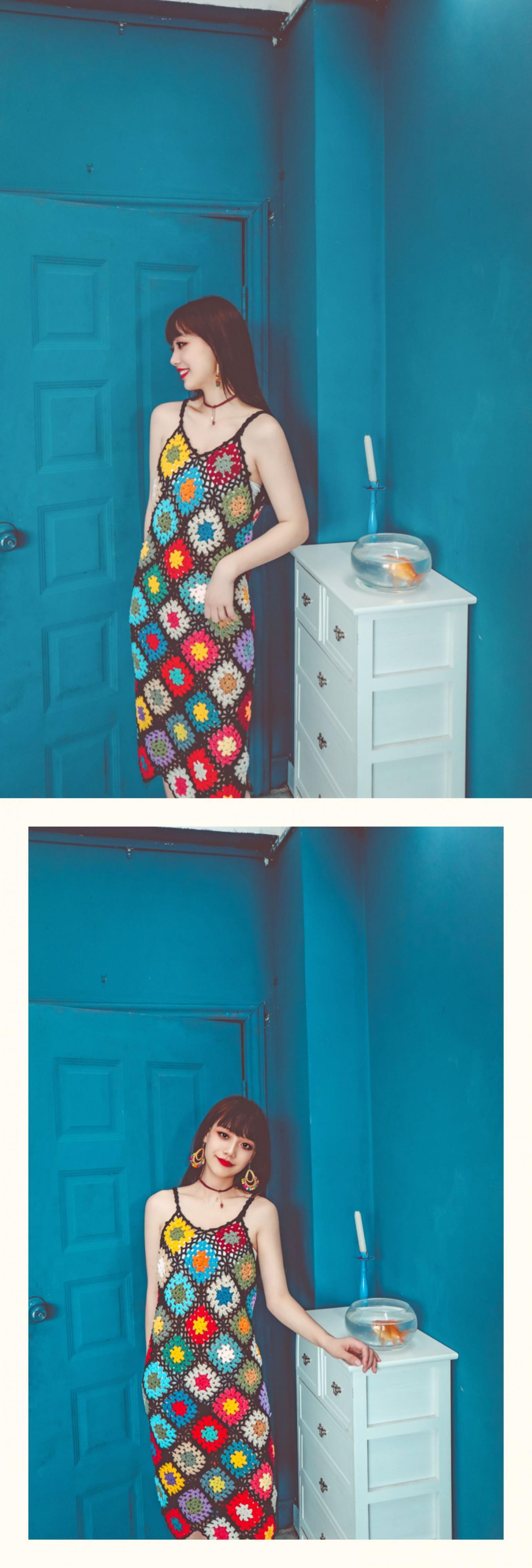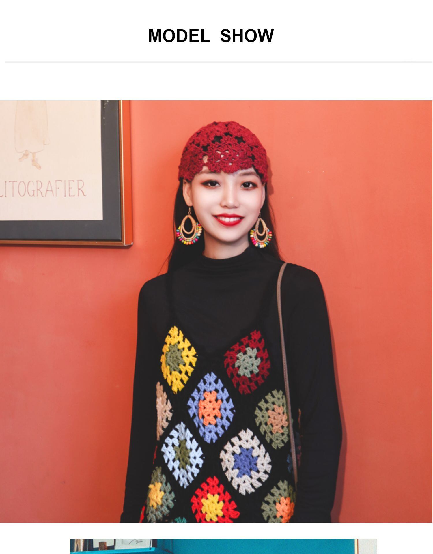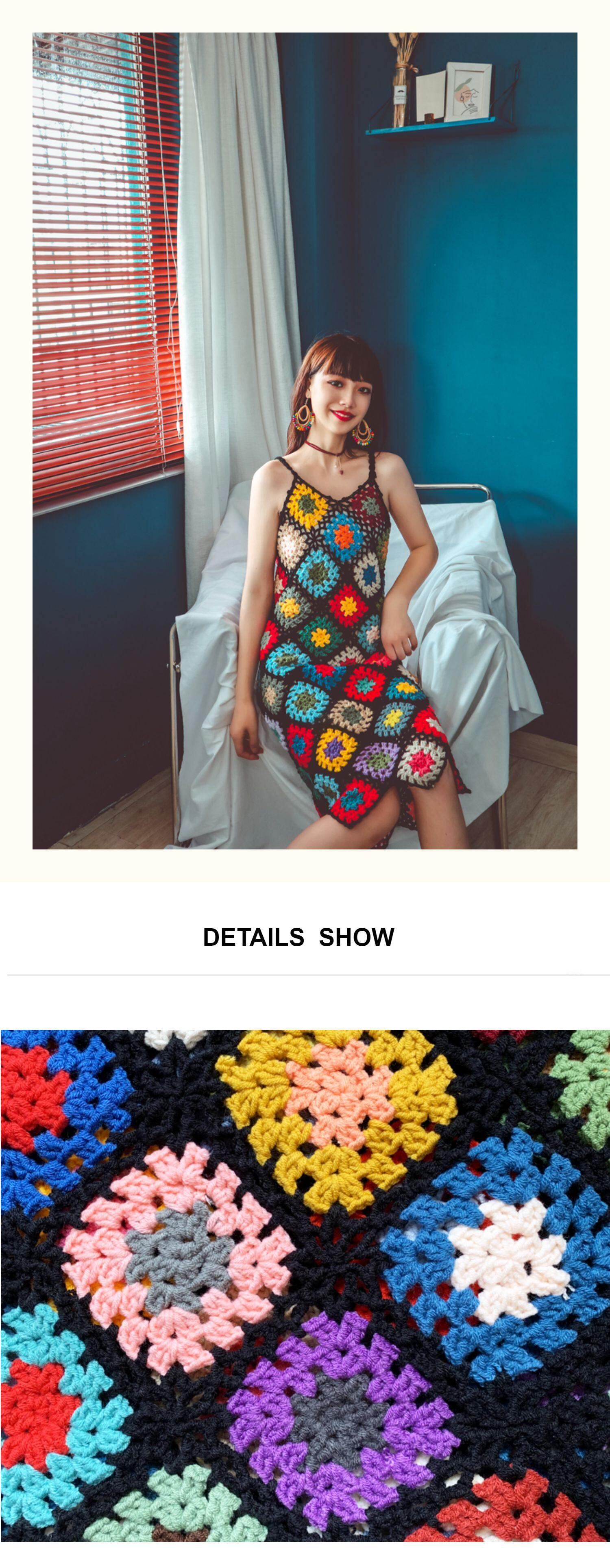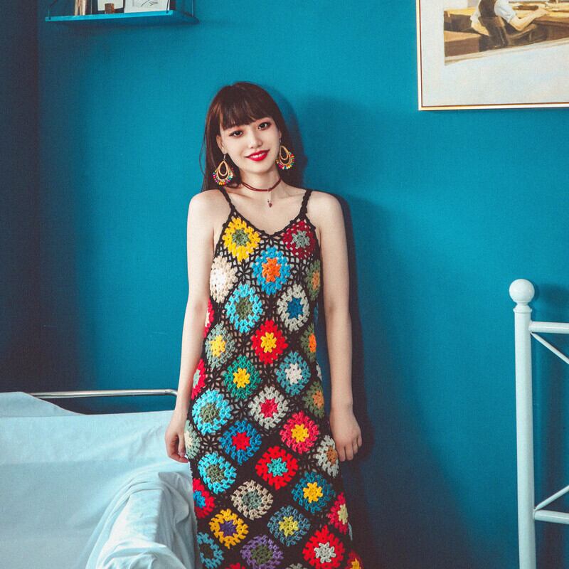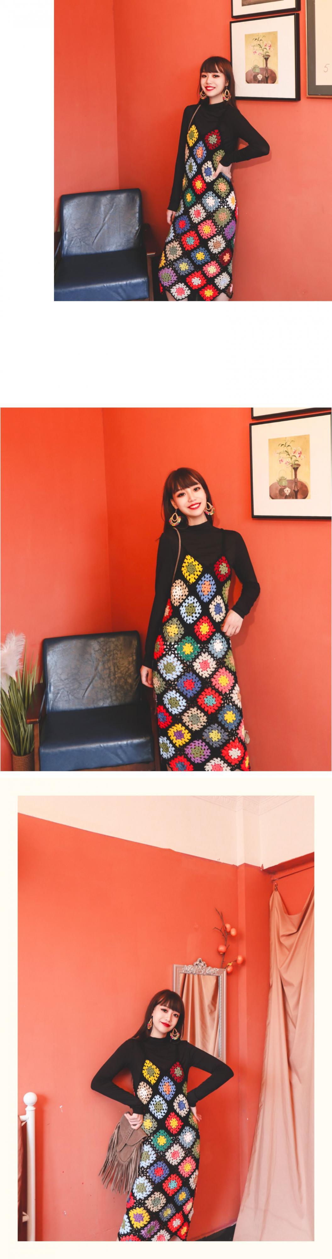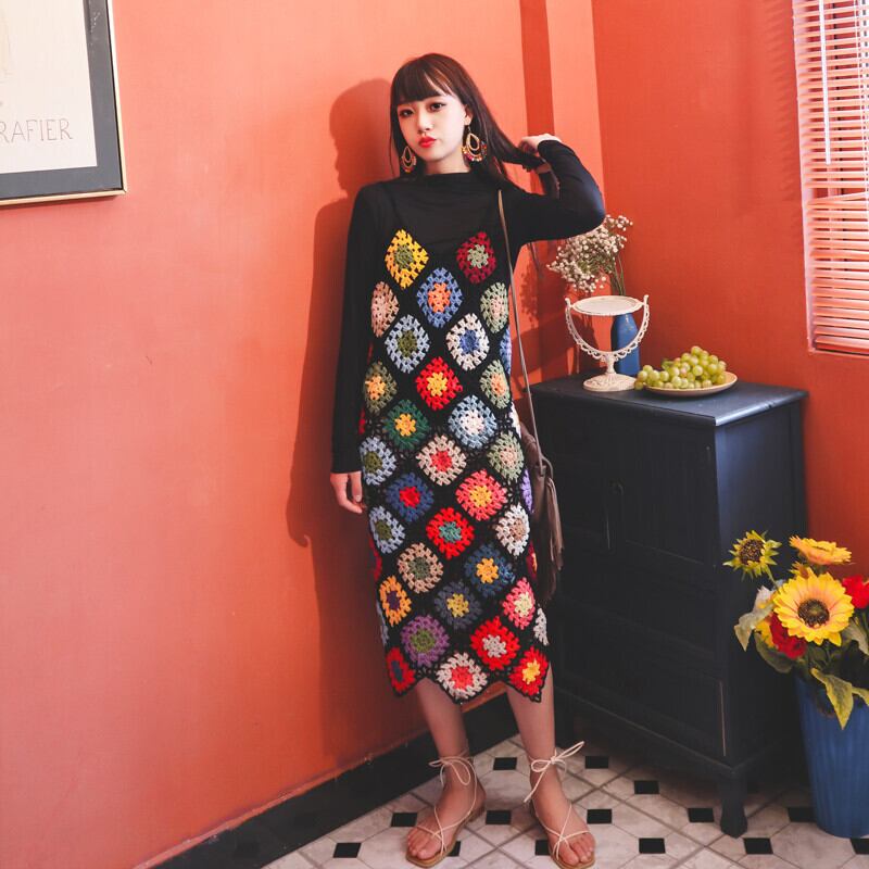 エンメイジア秋の手作りかぎ針編みエスニックスタイルサスペンダースカートレトロカラースクエアニットセーターアウタードレス 延命家ファッション43817205556