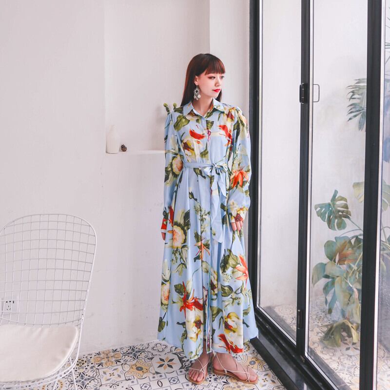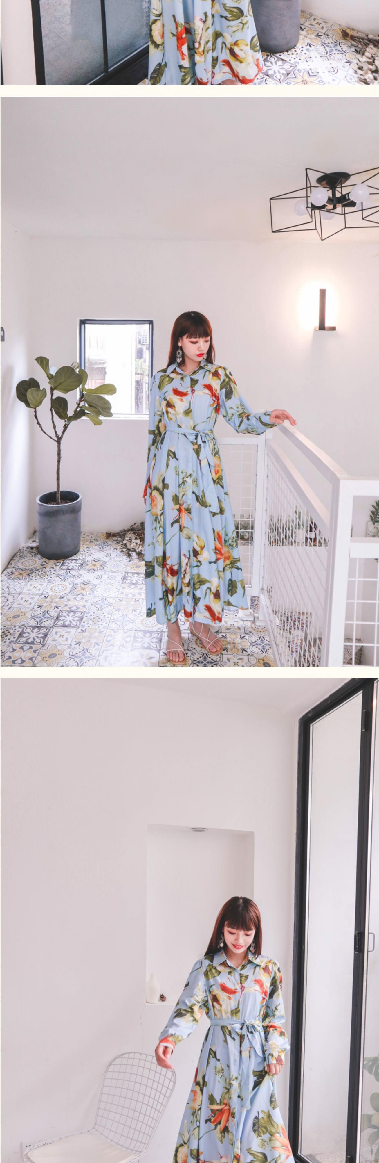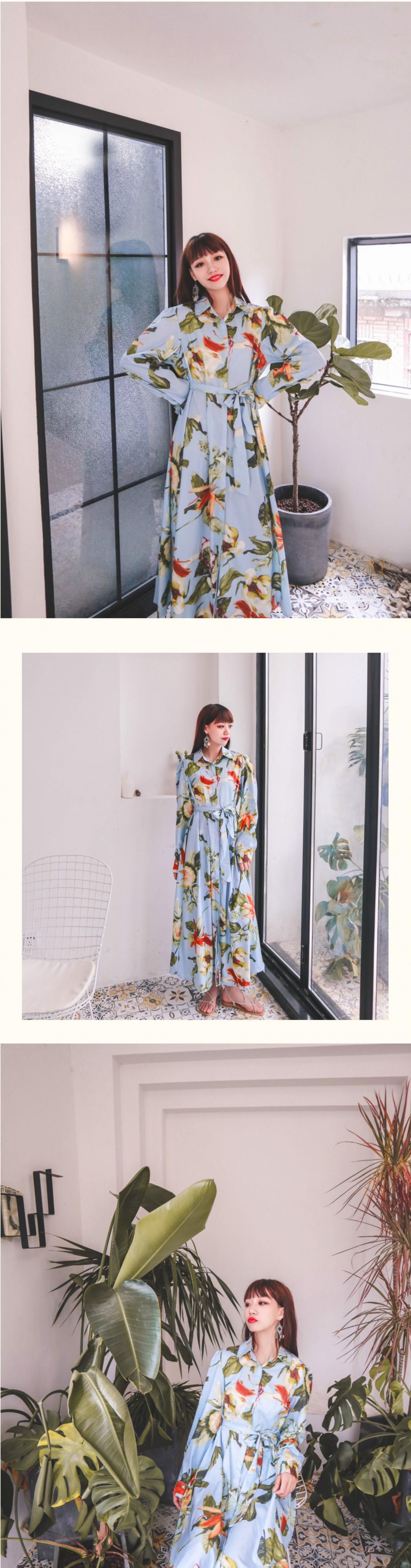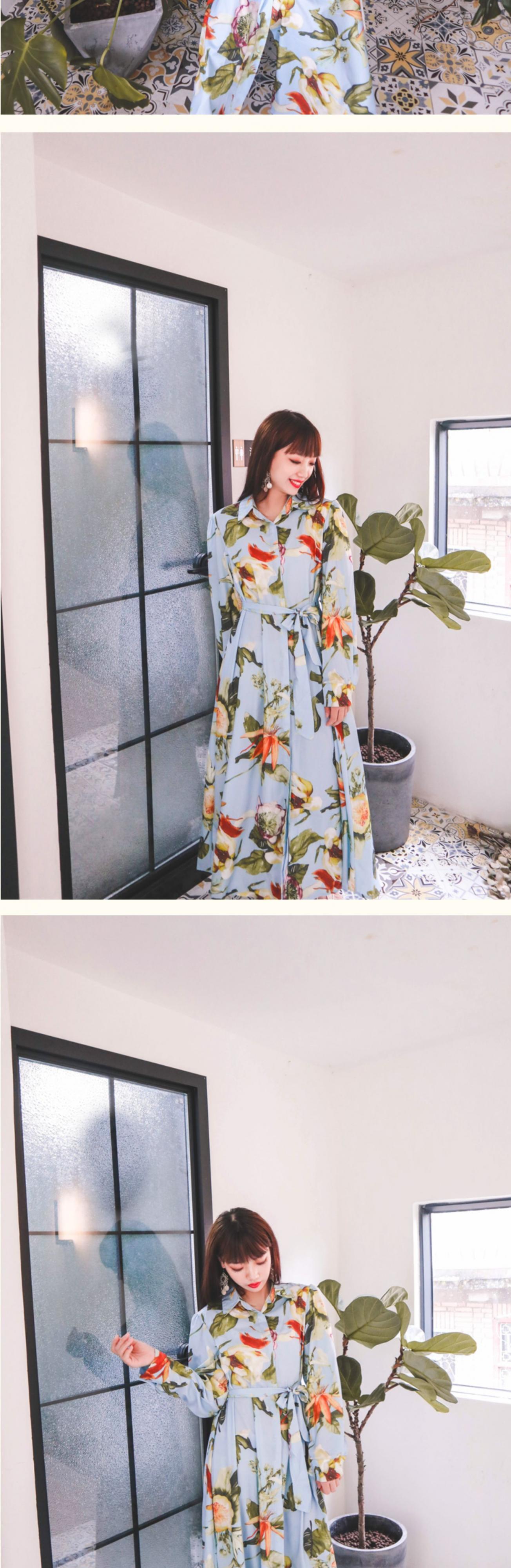 秋の新作フレンチスタイルのニッチドレス、ホリデースタイルの長袖レトロプリントシャツスタイルのラージルーズドレス 延命家ファッション11356257774