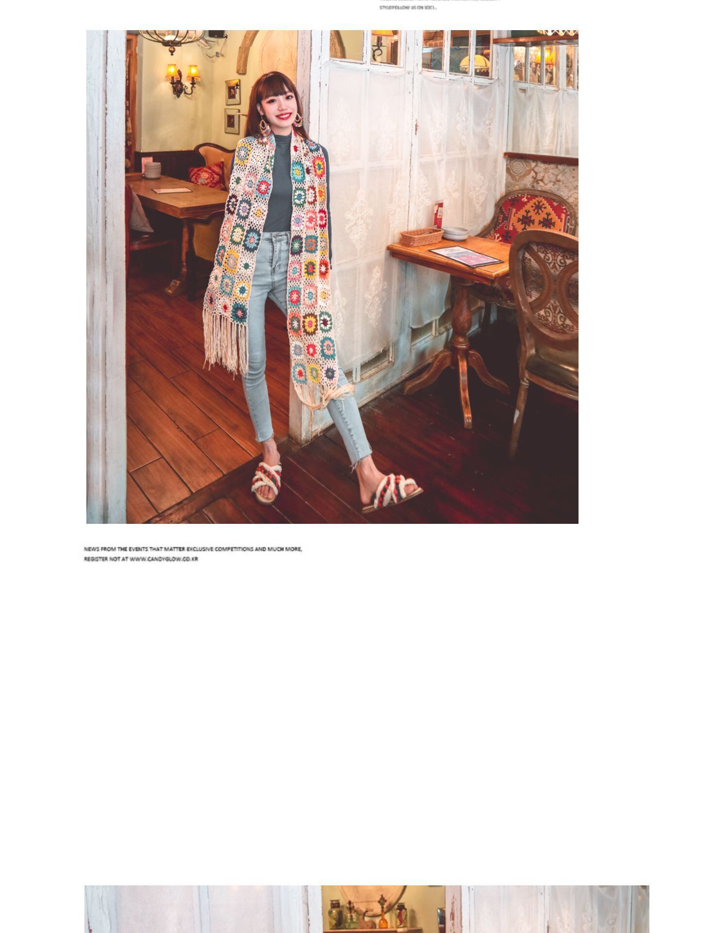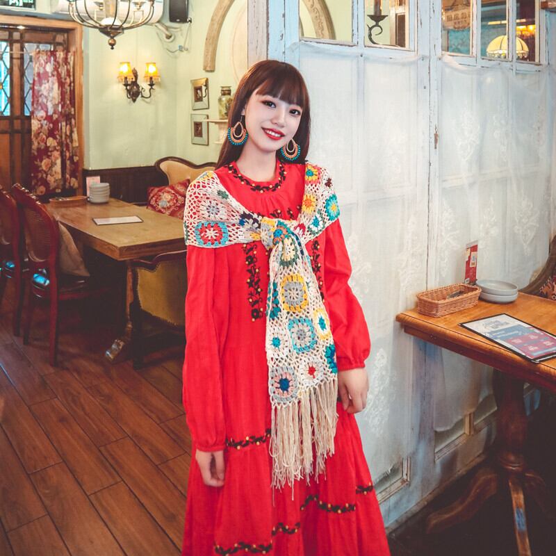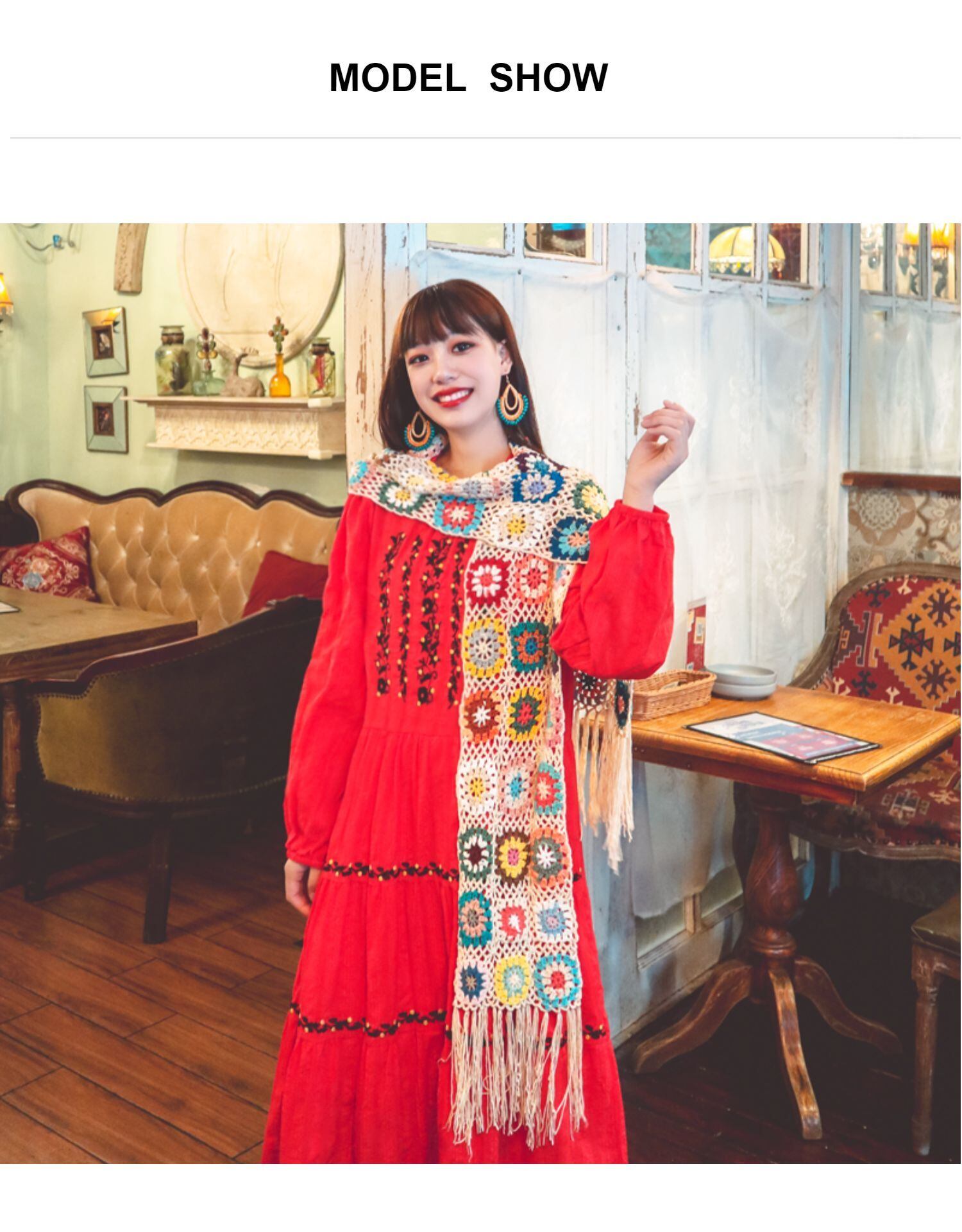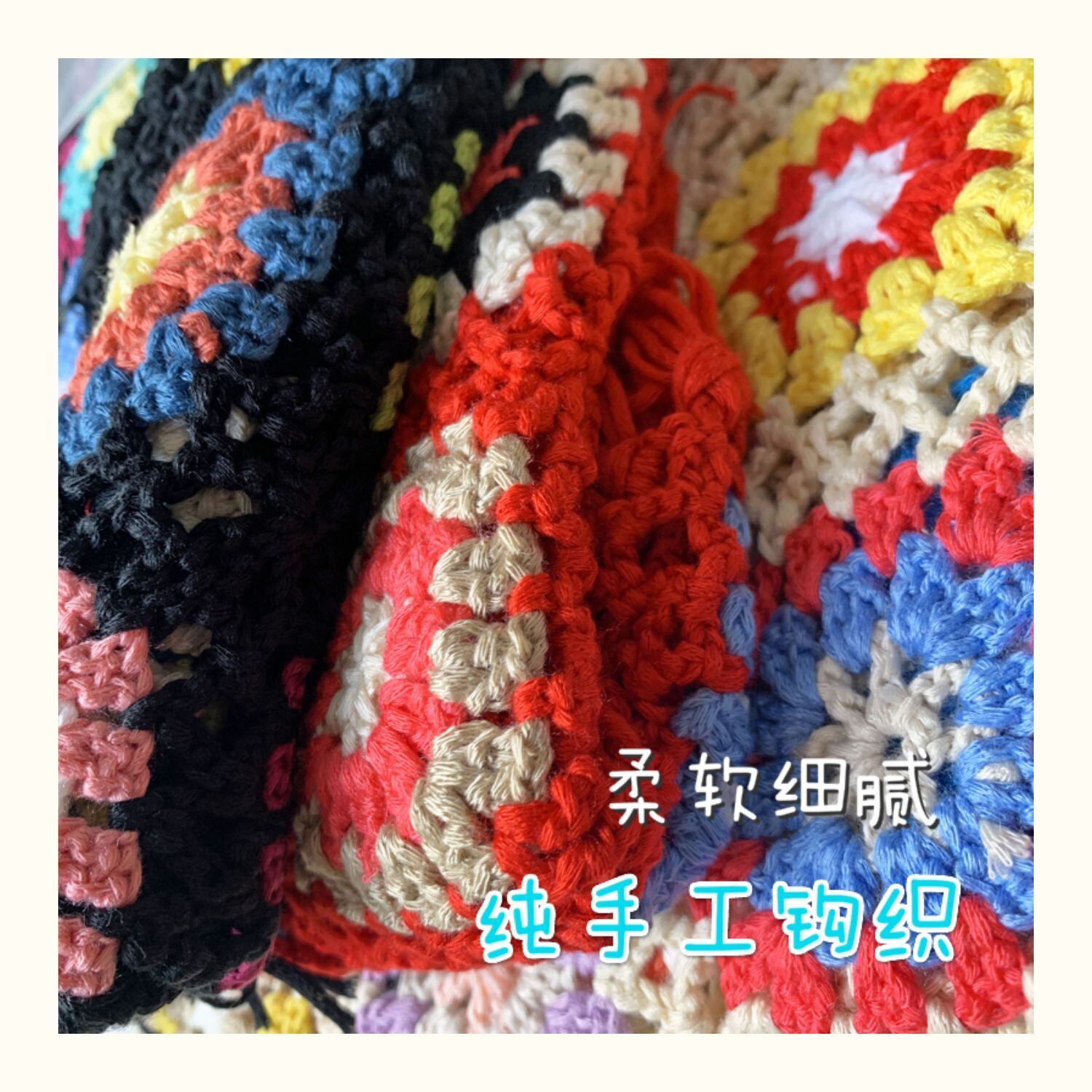Enmeijiaエスニックスタイルの手作り綿糸かぎ針編みの長方形ユニバーサルマルチカラー中空暖かいよだれかけフリンジスカーフ 延命家ファッション67685979649