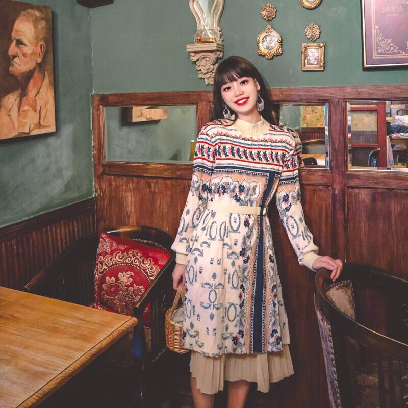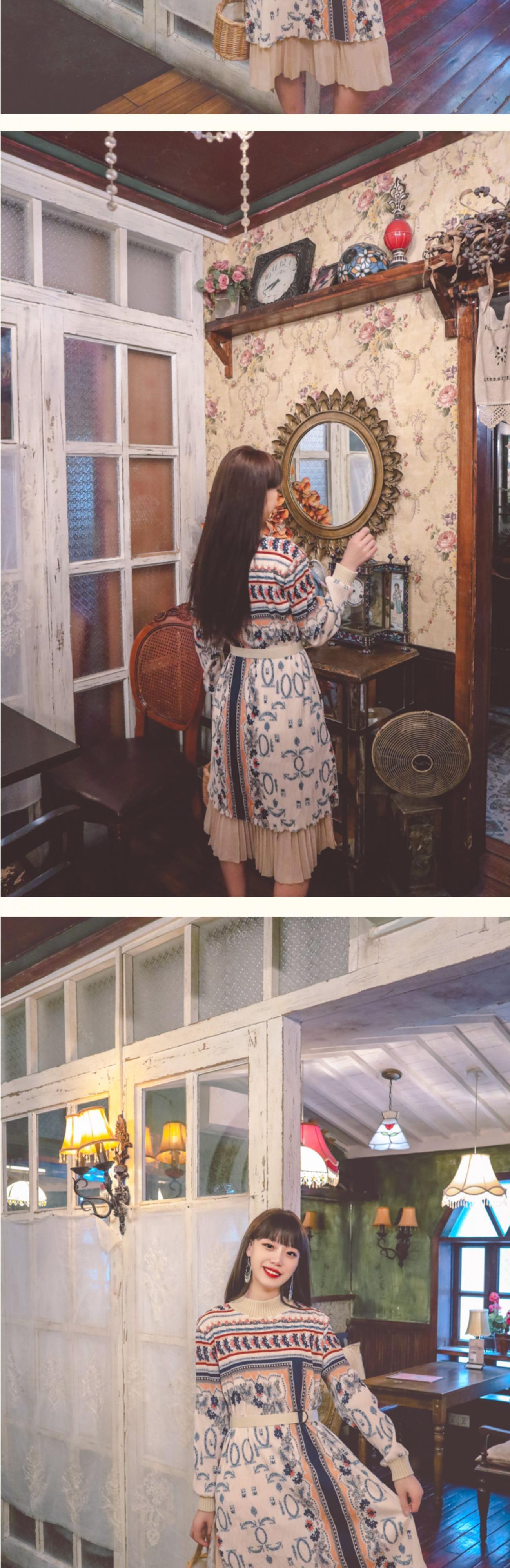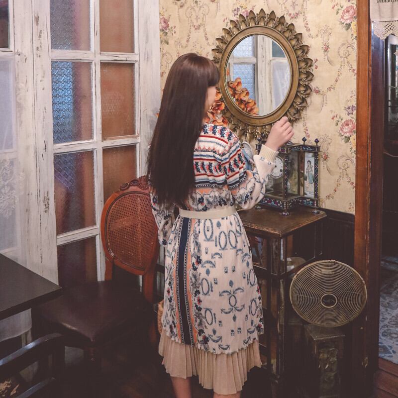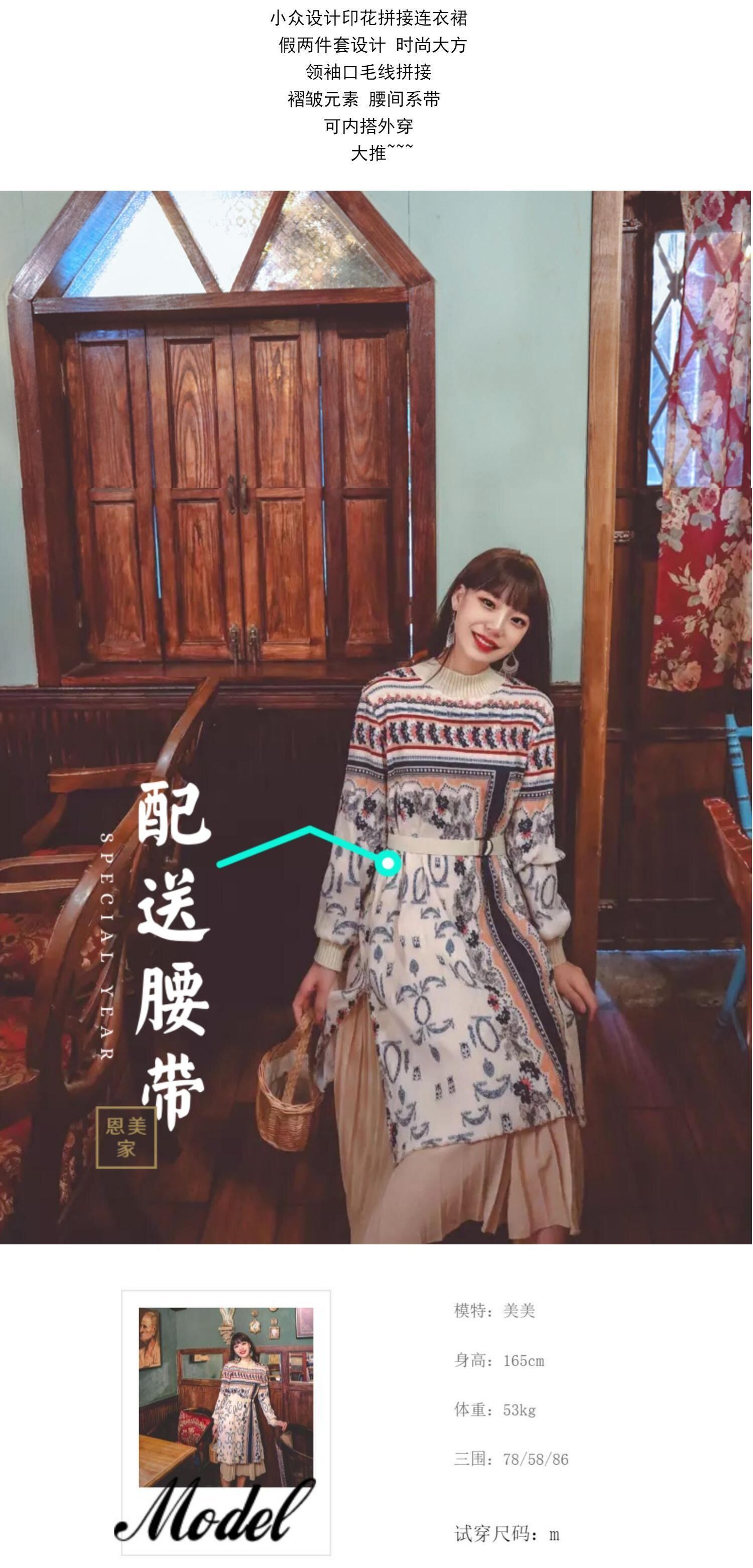 春の新製品、軽やかなラグジュアリーデザイン、レトロなエスニックスタイルのプリント、膝上アート、ツーピースのルーズドレスの女性 延命家ファッション33130655963