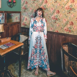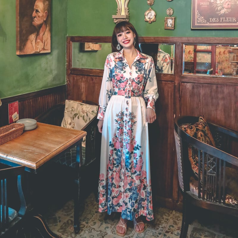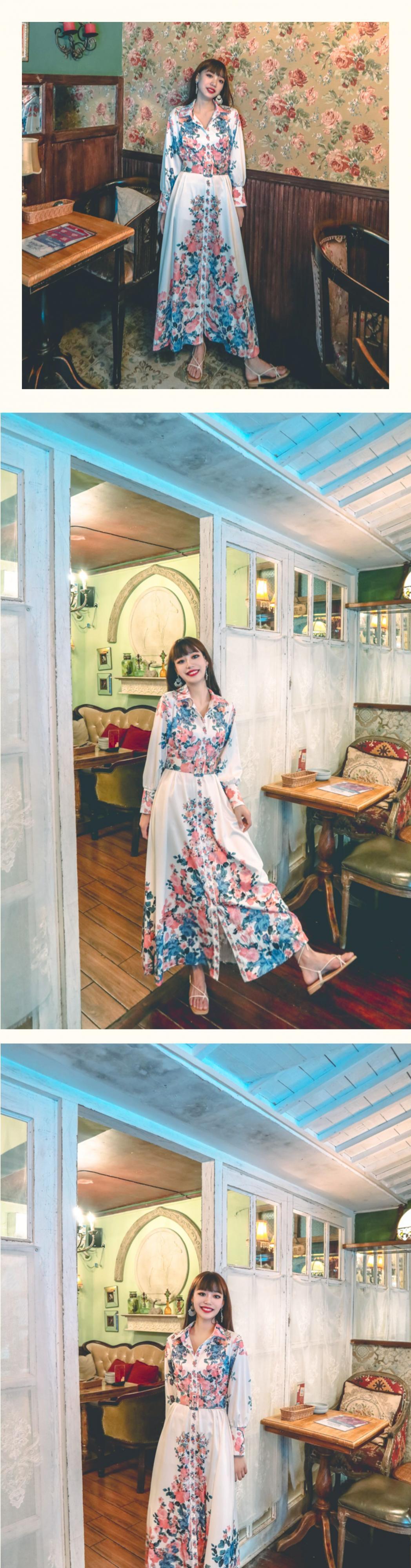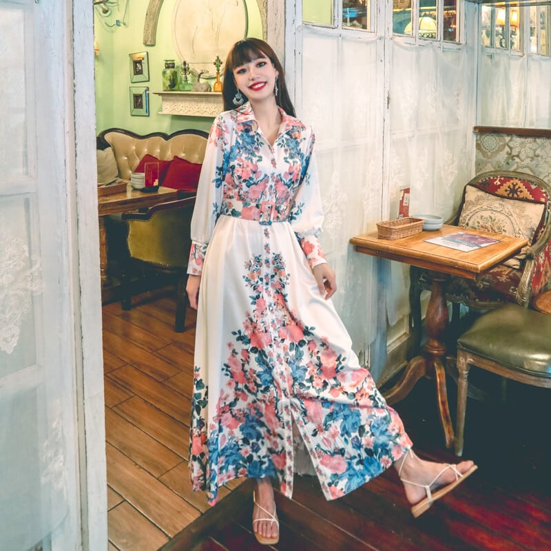 春夏新商品レトロパレススタイルロングスカートナショナルスタイル重工業プリントスカートランタン長袖ロイヤルシスタースタイルドレス女性 延命家ファッション4441716790