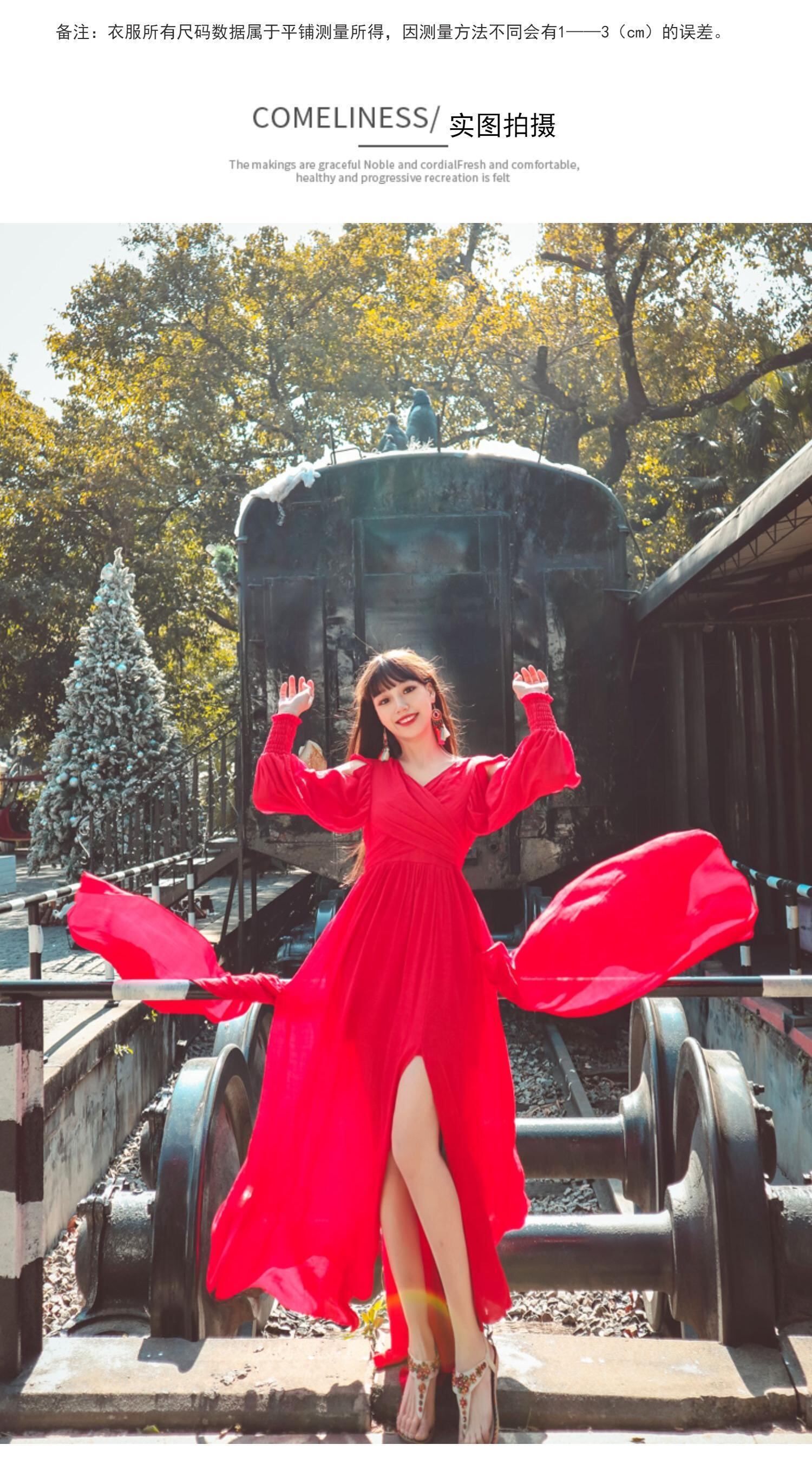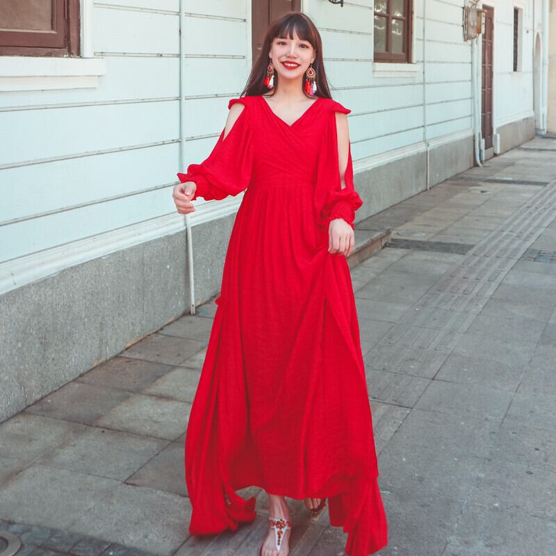 春夏ティーカード青海湖トラベルレトロウェアポーロングスカートエスニックスタイルドレスチベットスーパーフェアリーレッドドレス 延命家ファッション68254239672