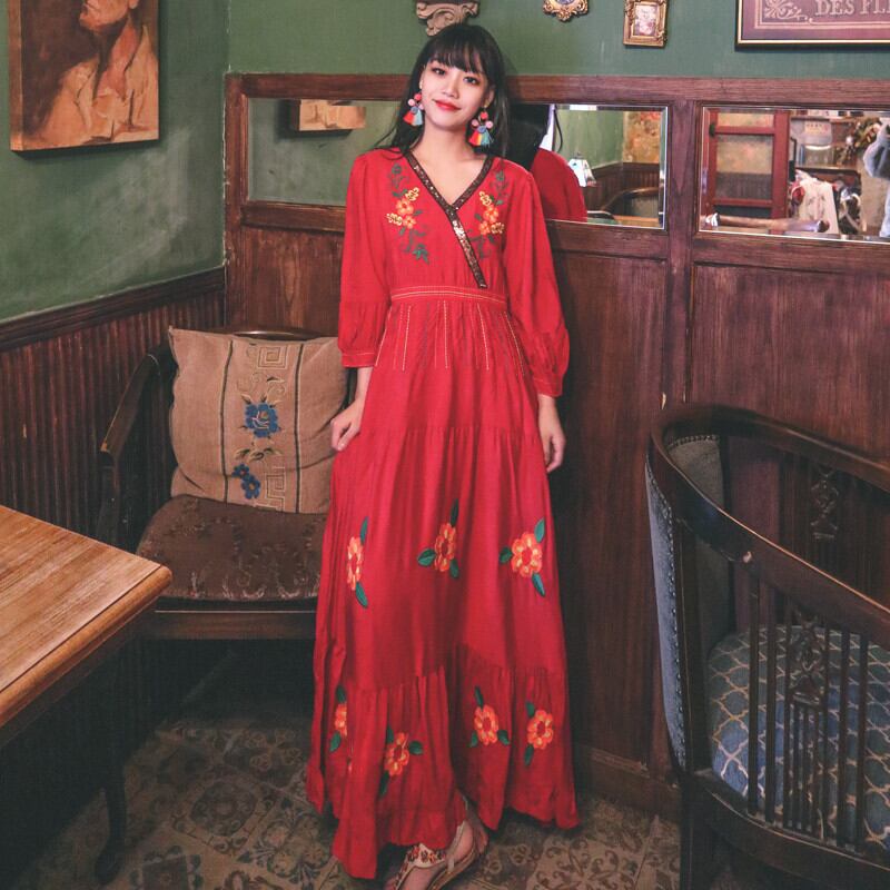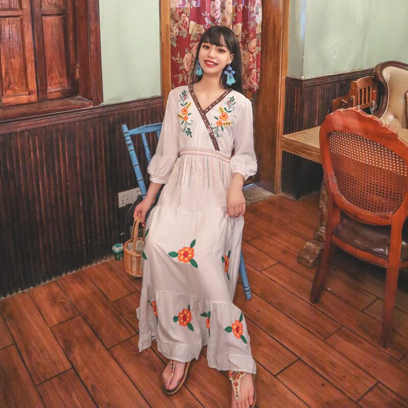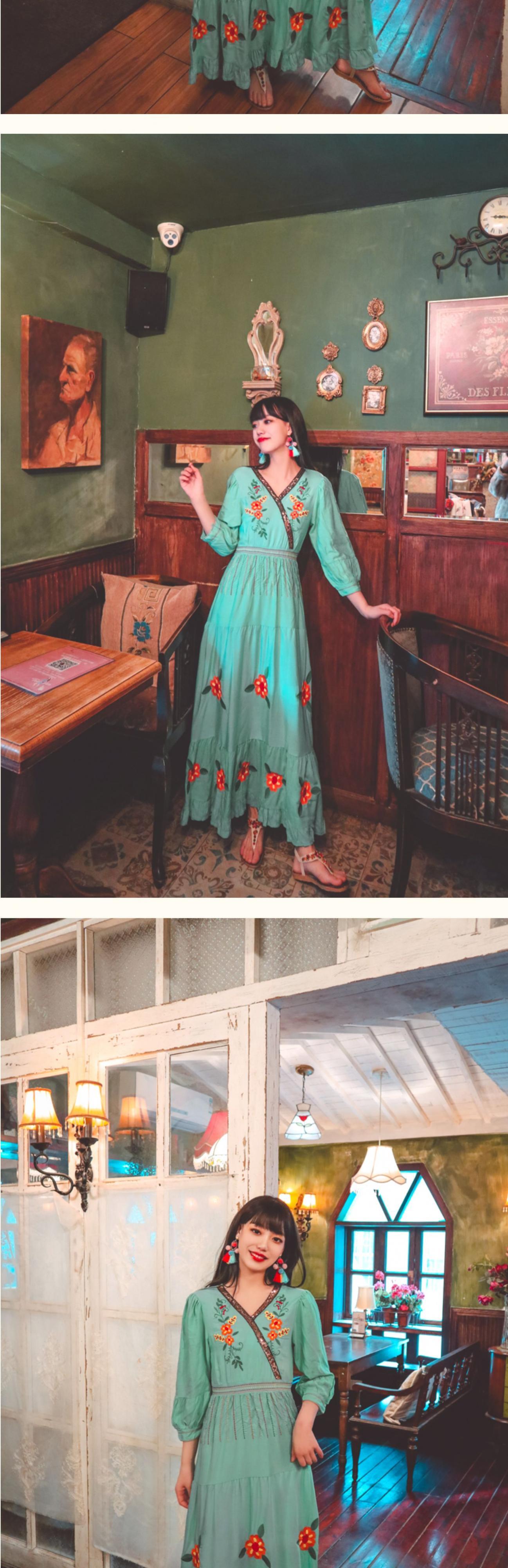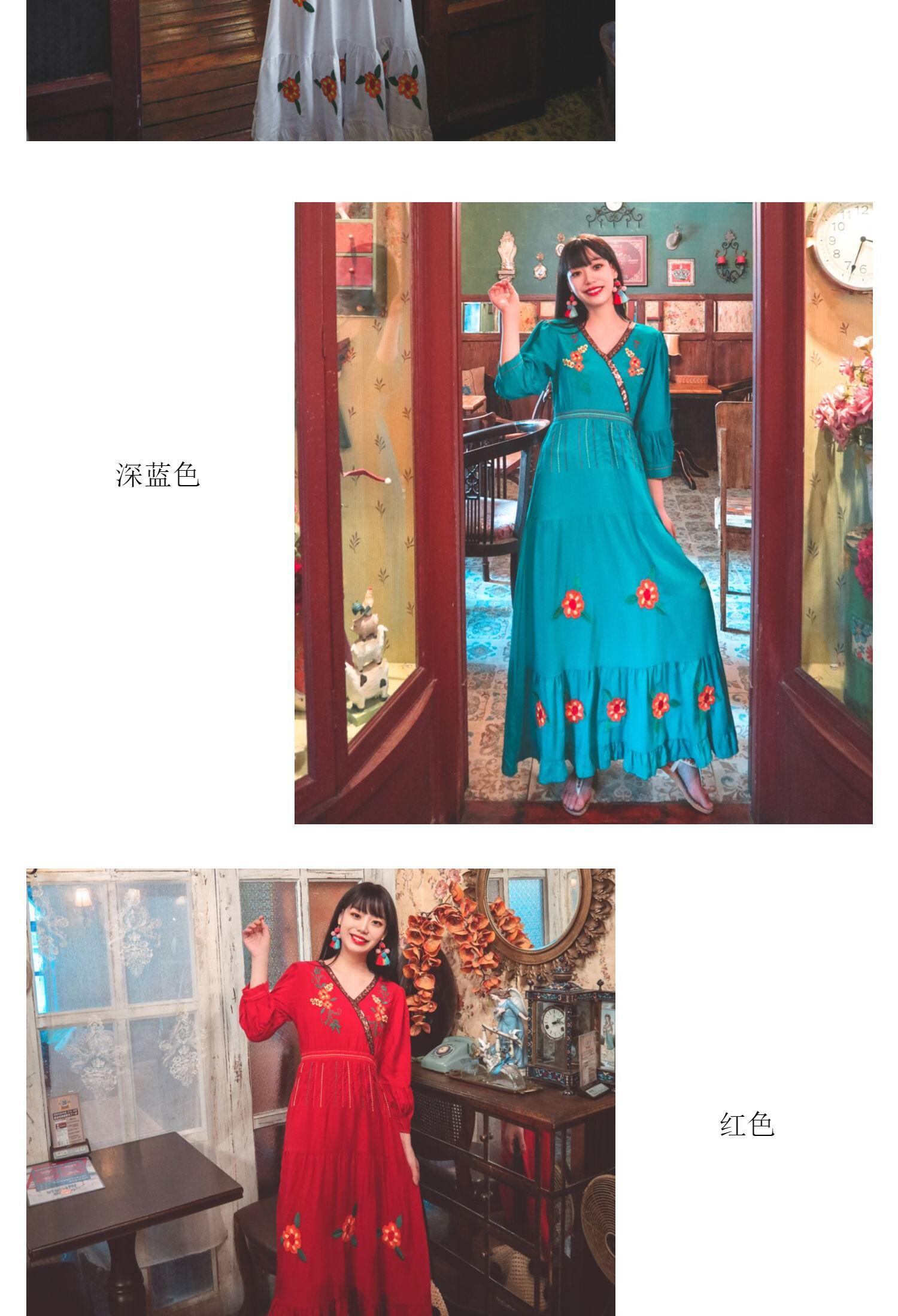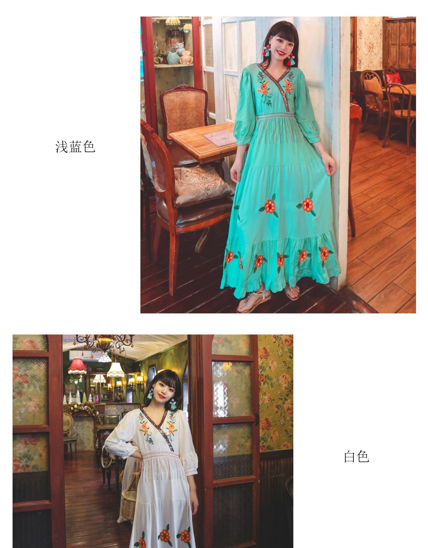 インターネットの有名人ブロガーは旅行や休暇でレトロなドレス、重い刺繡の刺繍、エスニックスタイルのハイウエストの大きなドレスを着ています 延命家ファッション61046954196