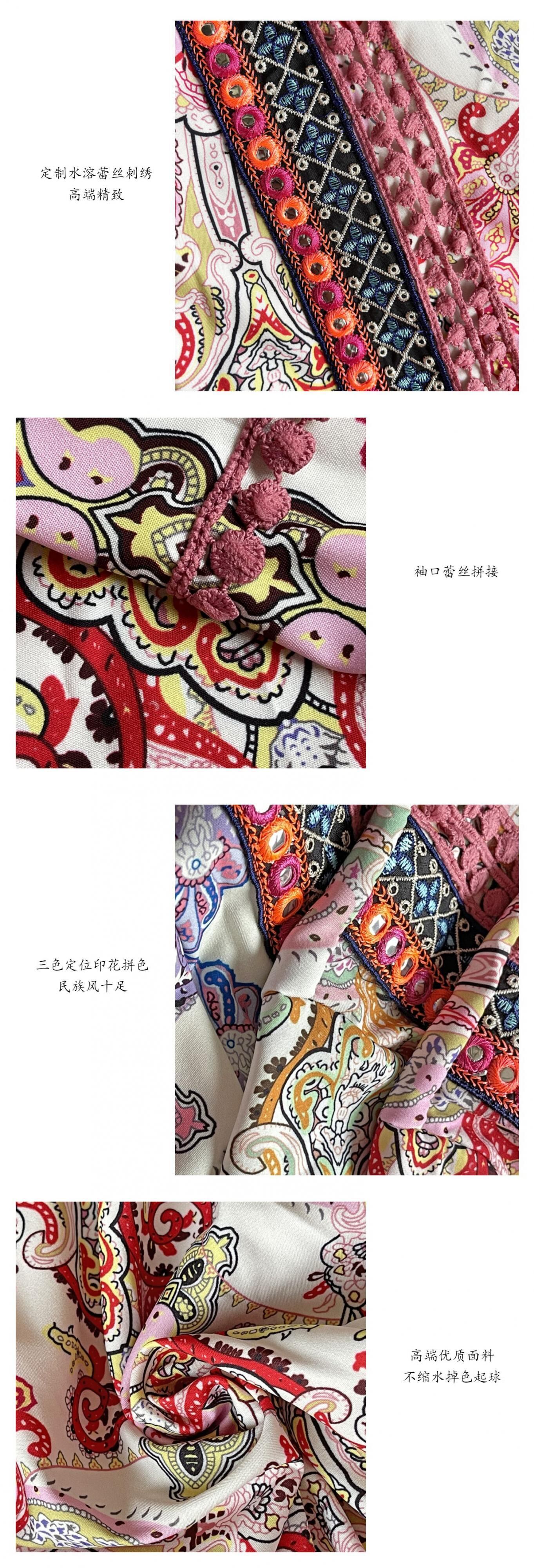 サマースタイルエスニックドレス ボヘミアンスタンダードプリント柄 レッド レトロ 刺繍 夏物 延命家ファッション54506404845