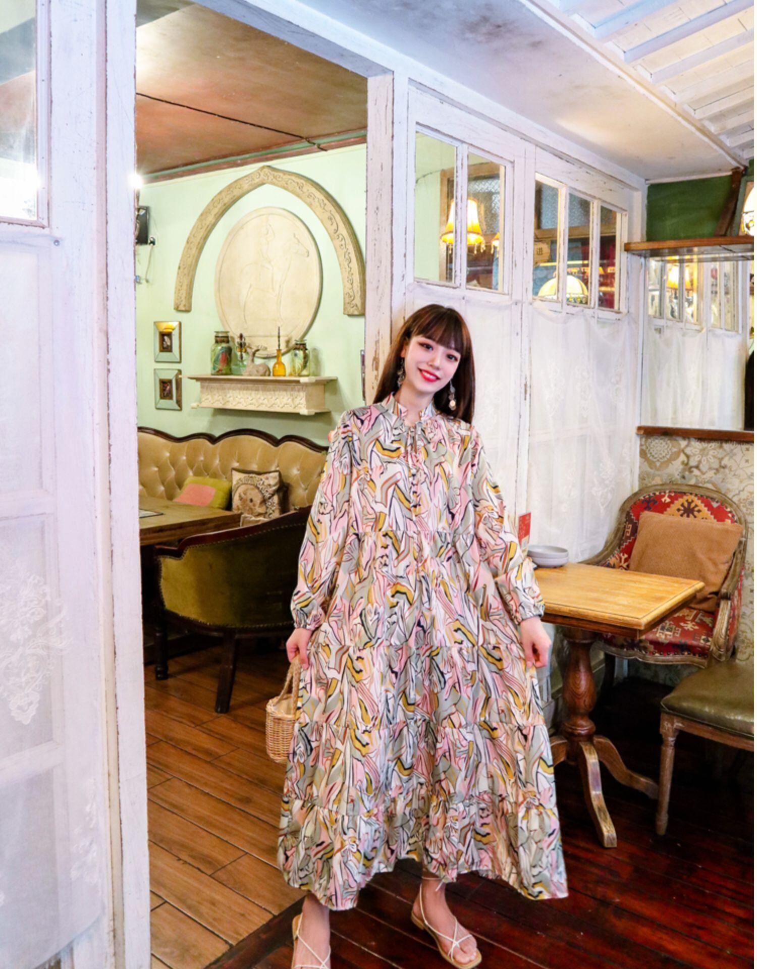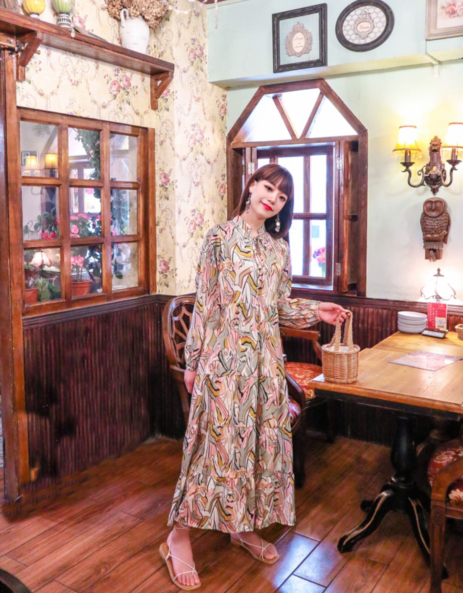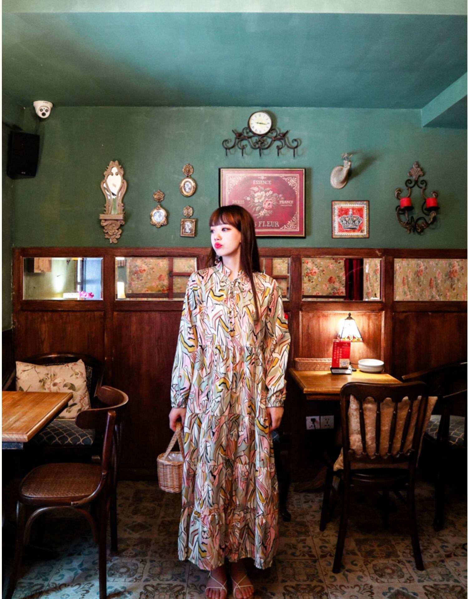 スプリングスタイルロングルーズドレス レトロ 長袖 春物 スカート 延命家ファッション56567510329