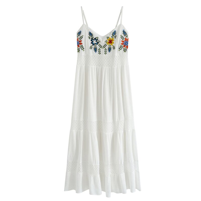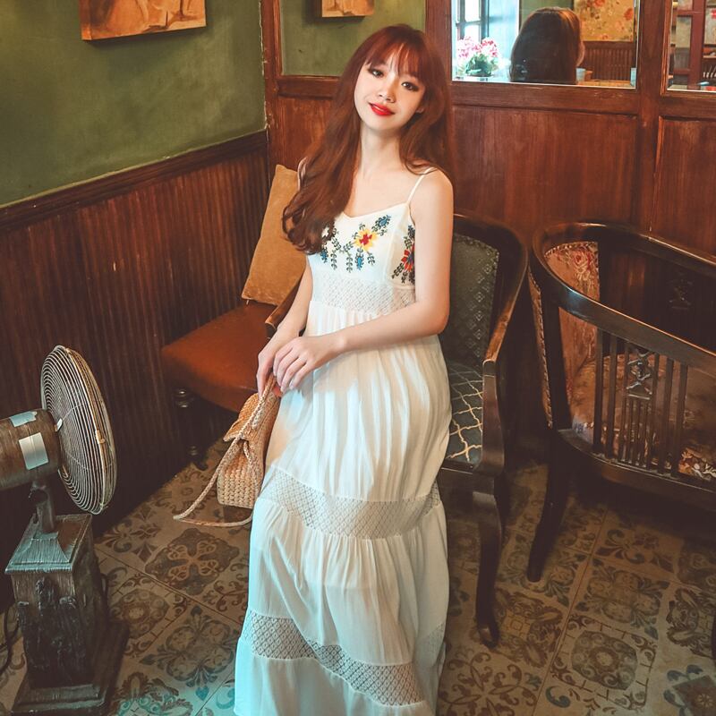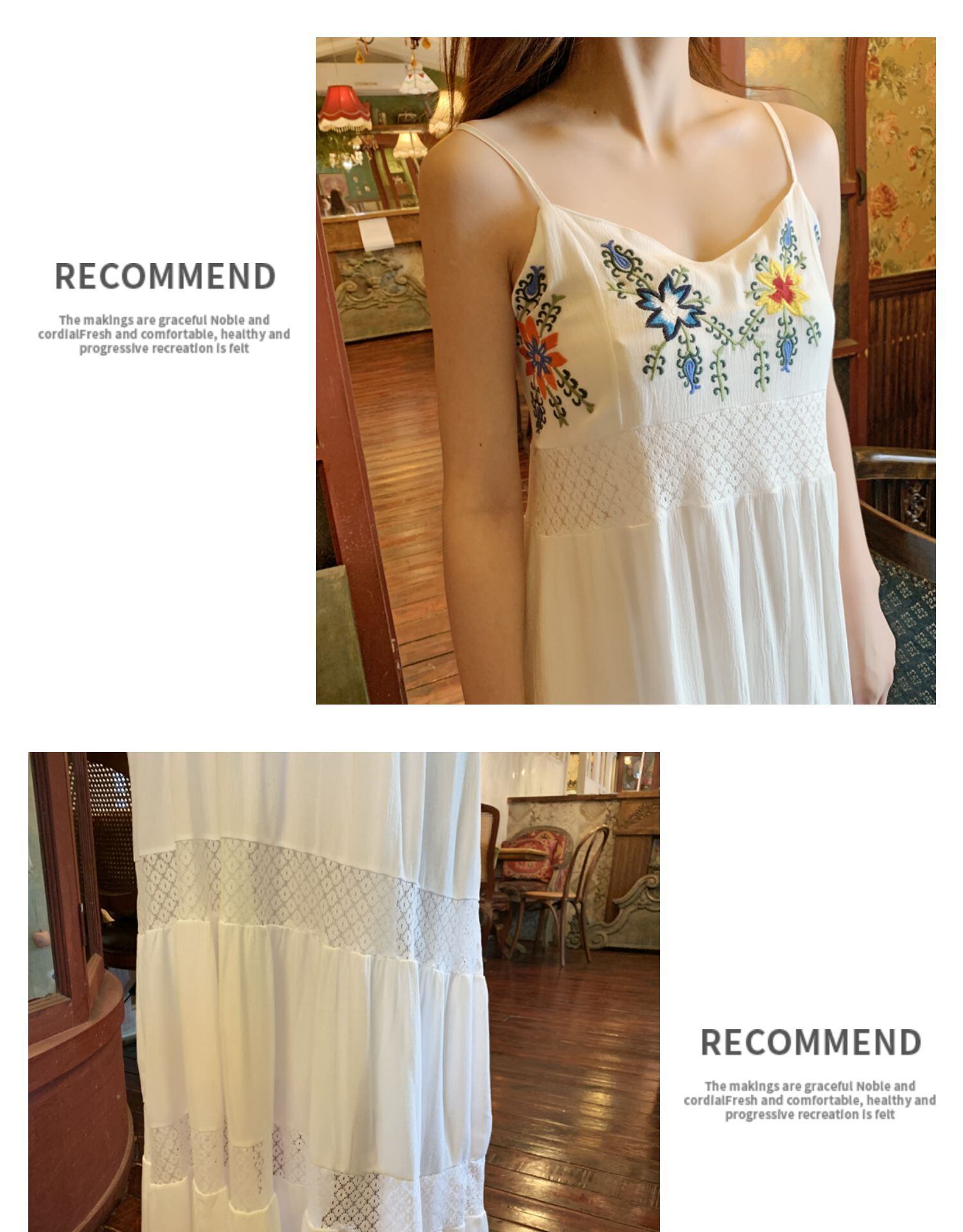 サマーホワイトロングスカート 刺繍エスニックスタイルドレス 夏物 ビーチ 延命家ファッション35915420469