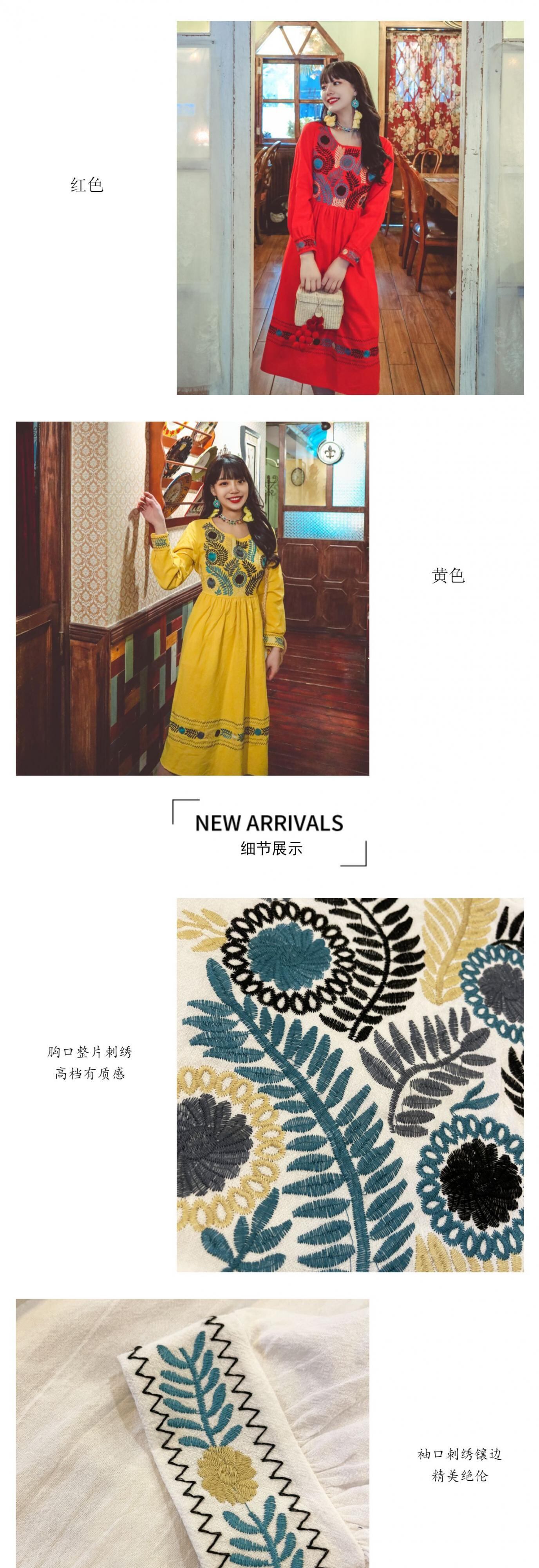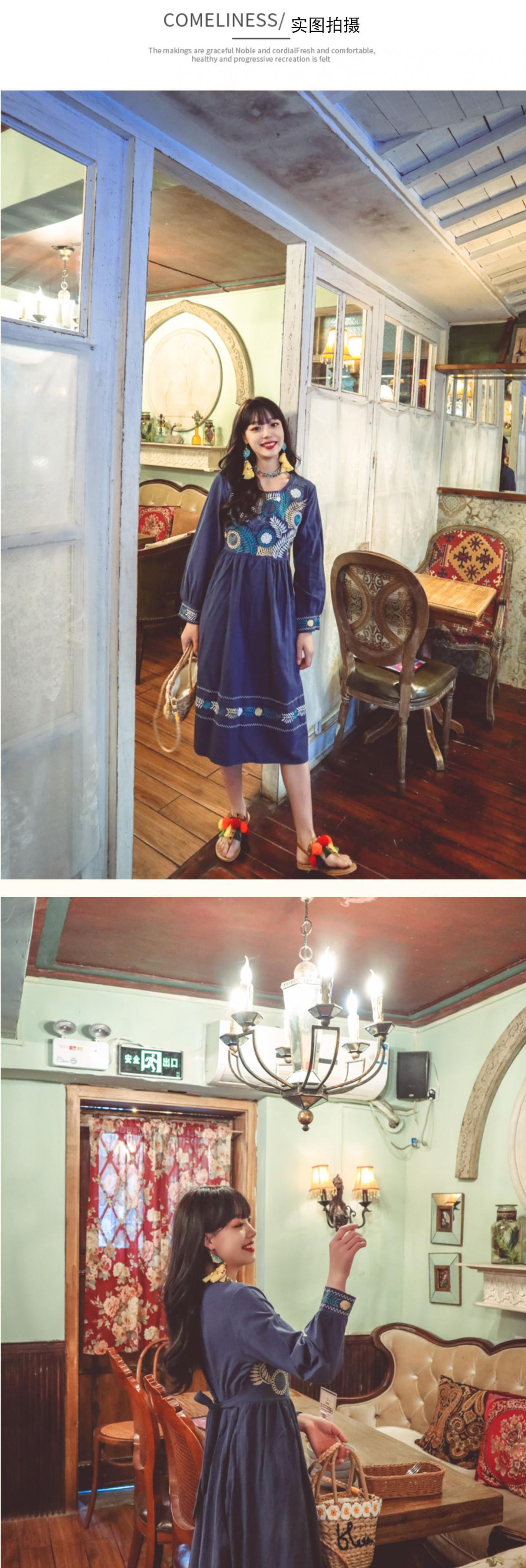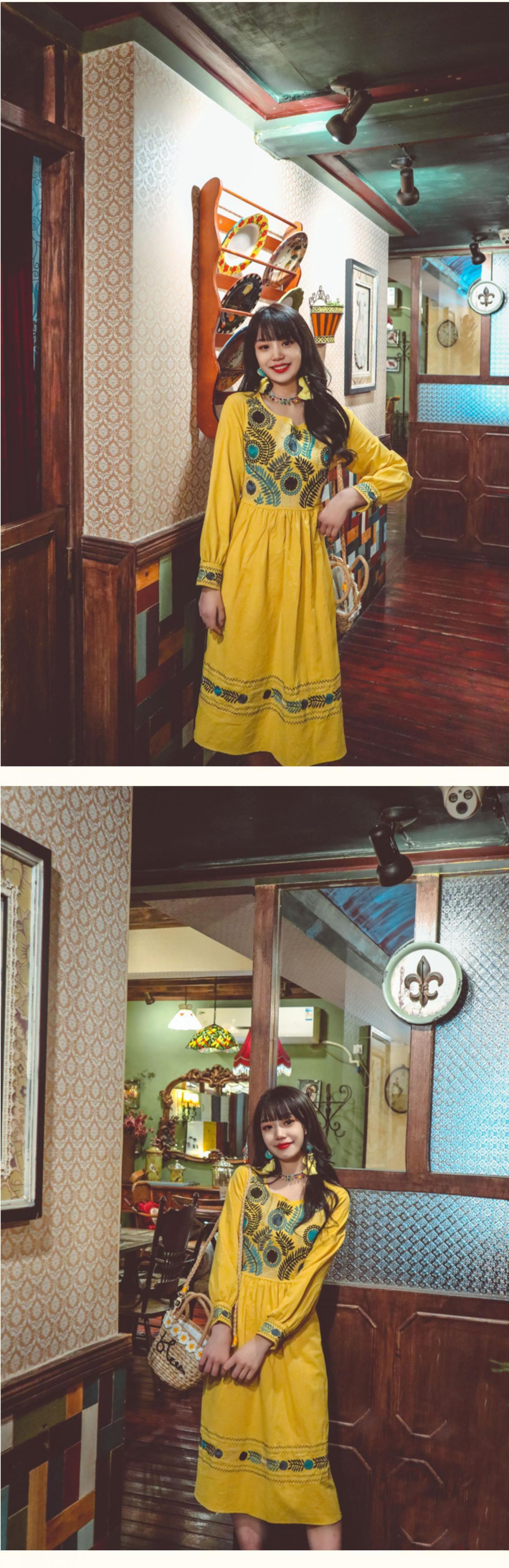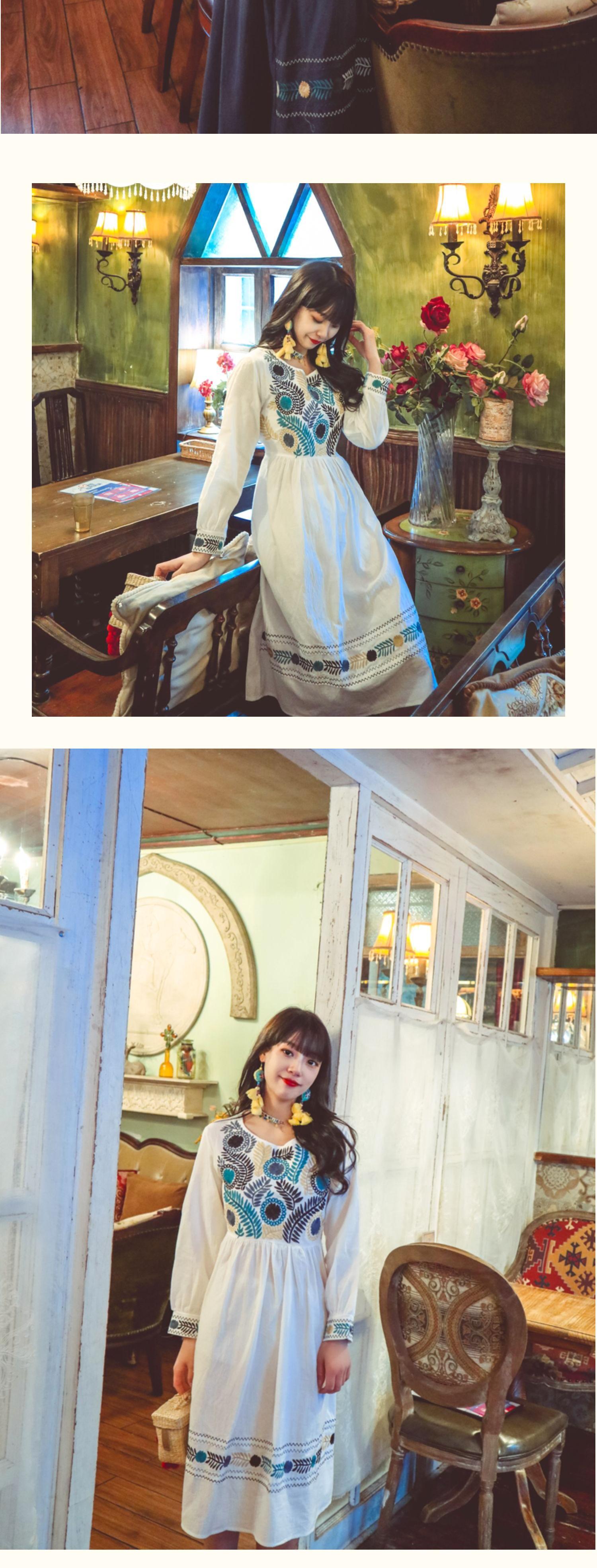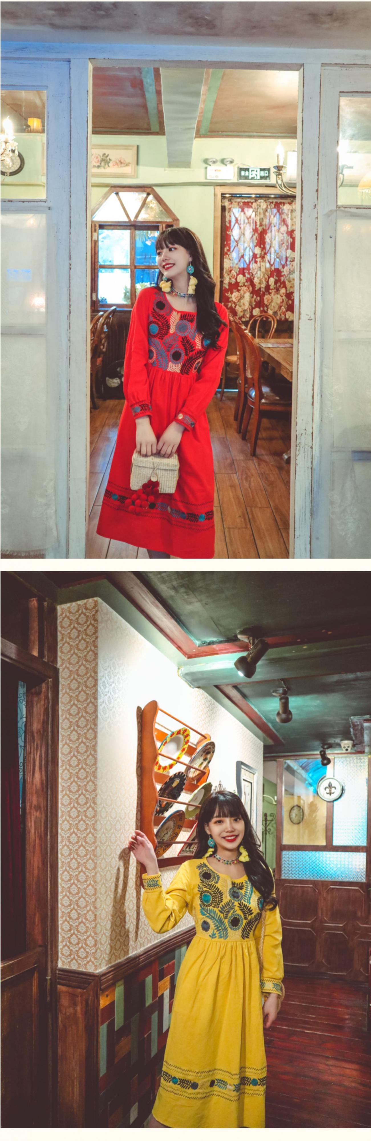 スプリングサマーボヘミアンエスニック刺繍スカート ウェストルーズドレス コットン 春物 夏物 延命家ファッション8407905867