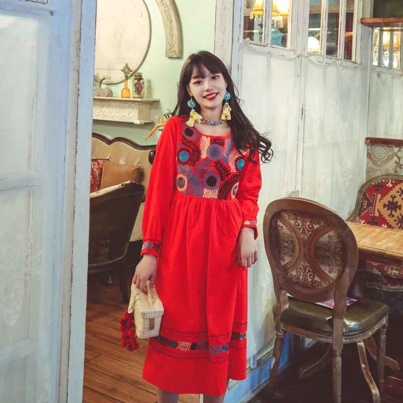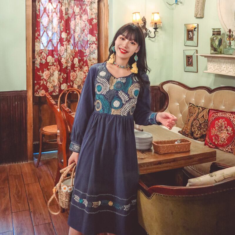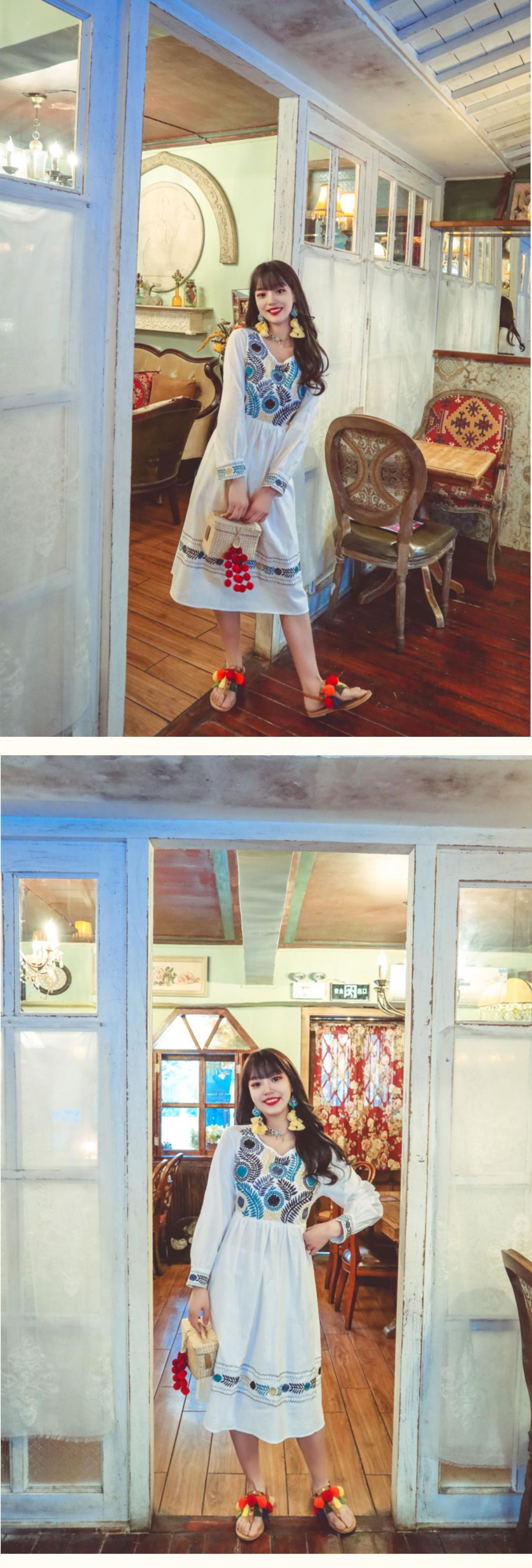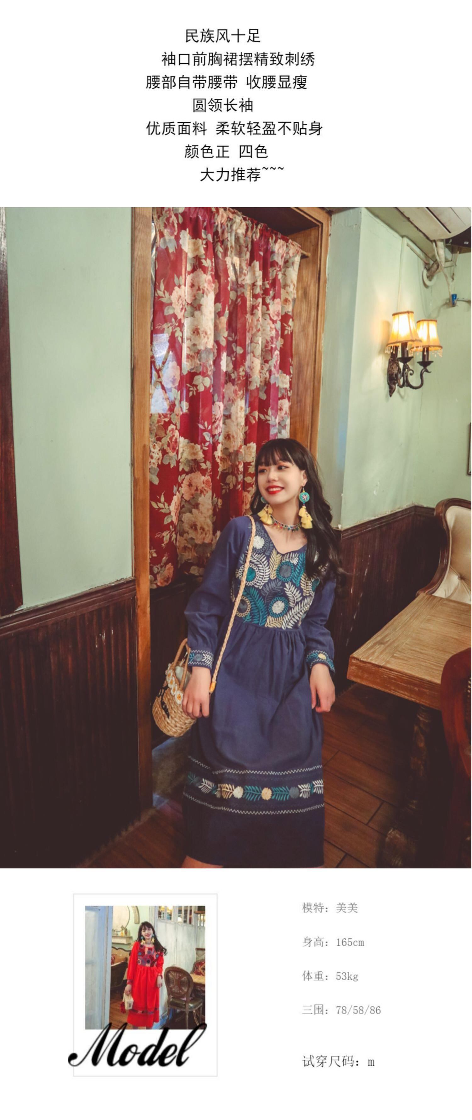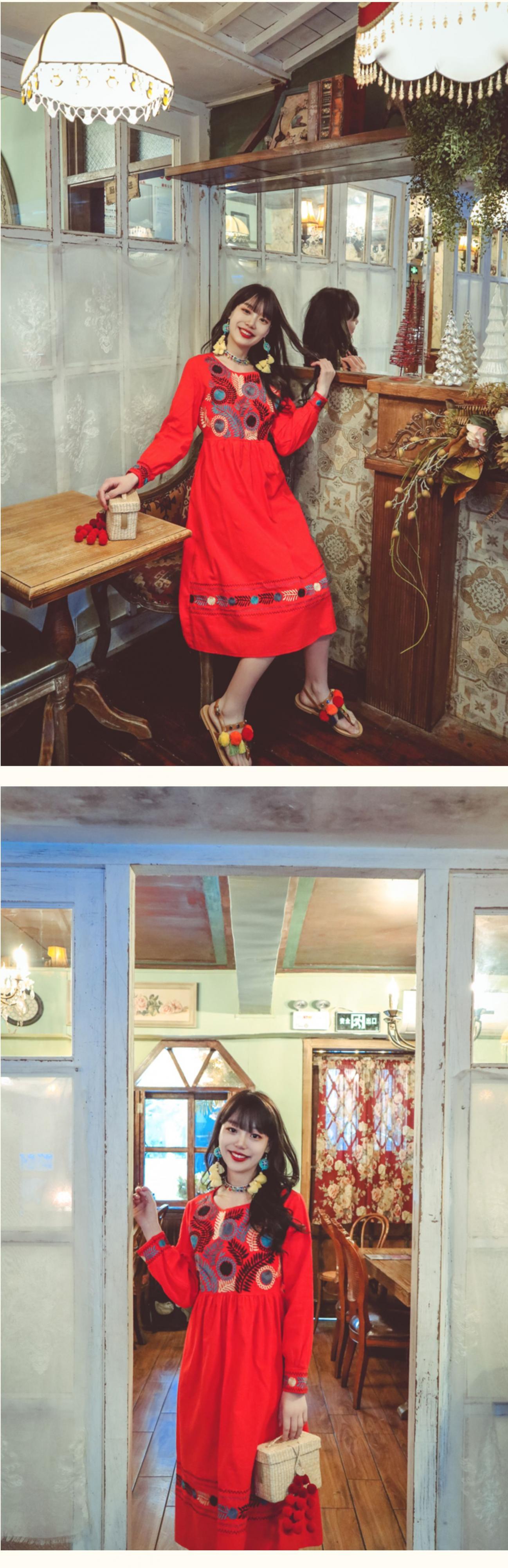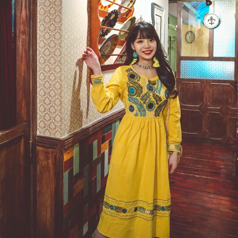 スプリングサマーボヘミアンエスニック刺繍スカート ウェストルーズドレス コットン 春物 夏物 延命家ファッション8407905867